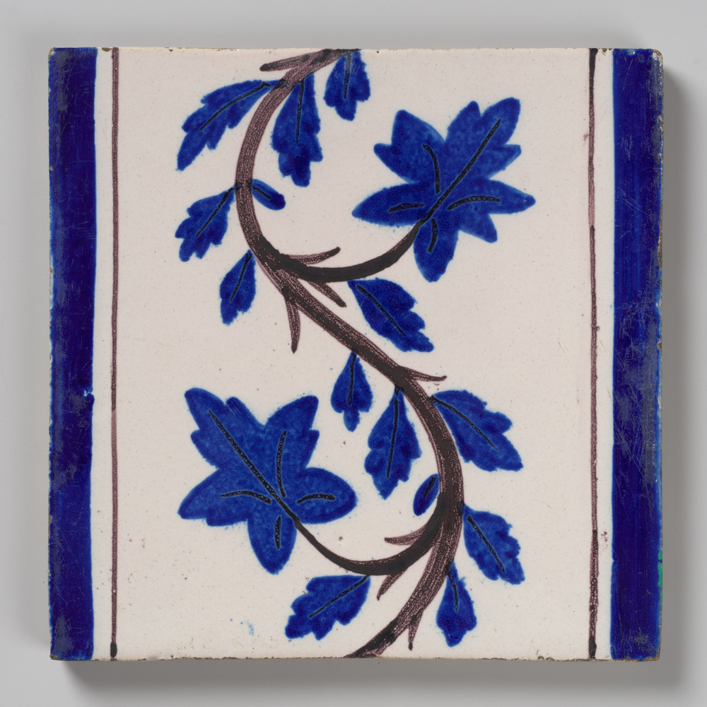 tegel van aardewerk, gesjabloneerd*, voorstellende: ...