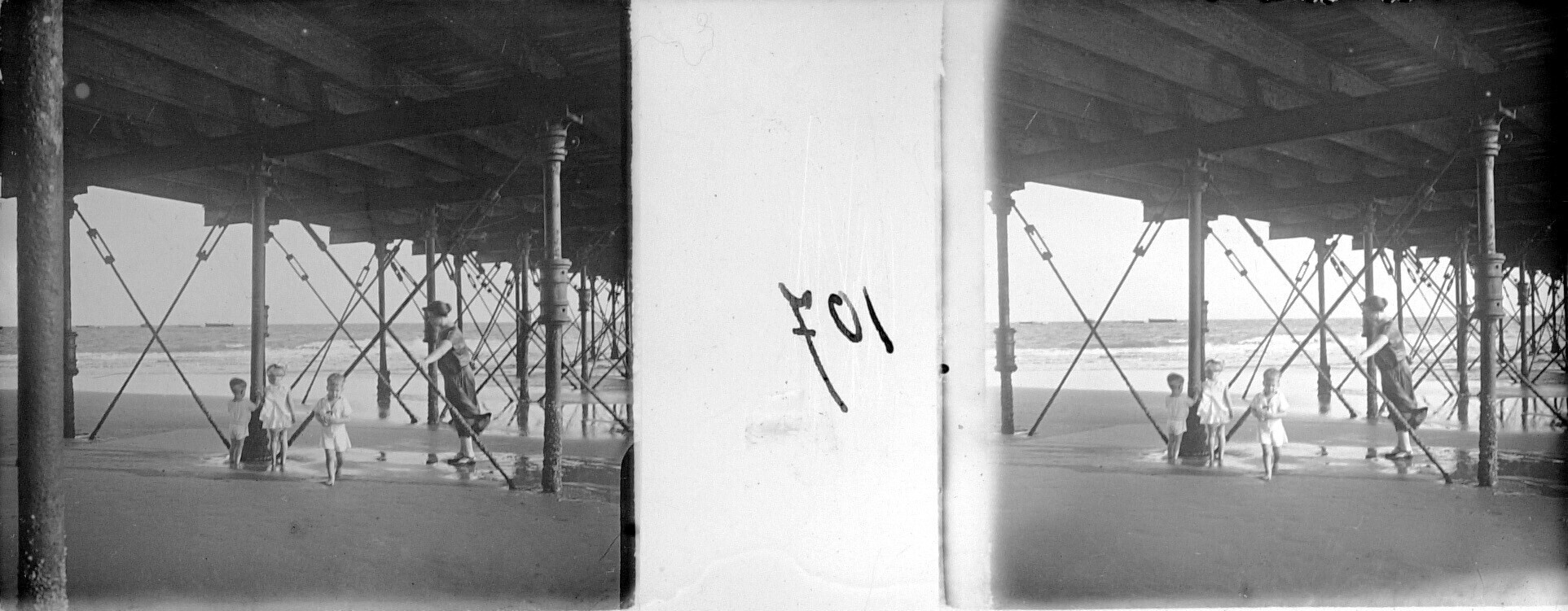 Gretchen Japing met kinderen onder de steiger tijden...