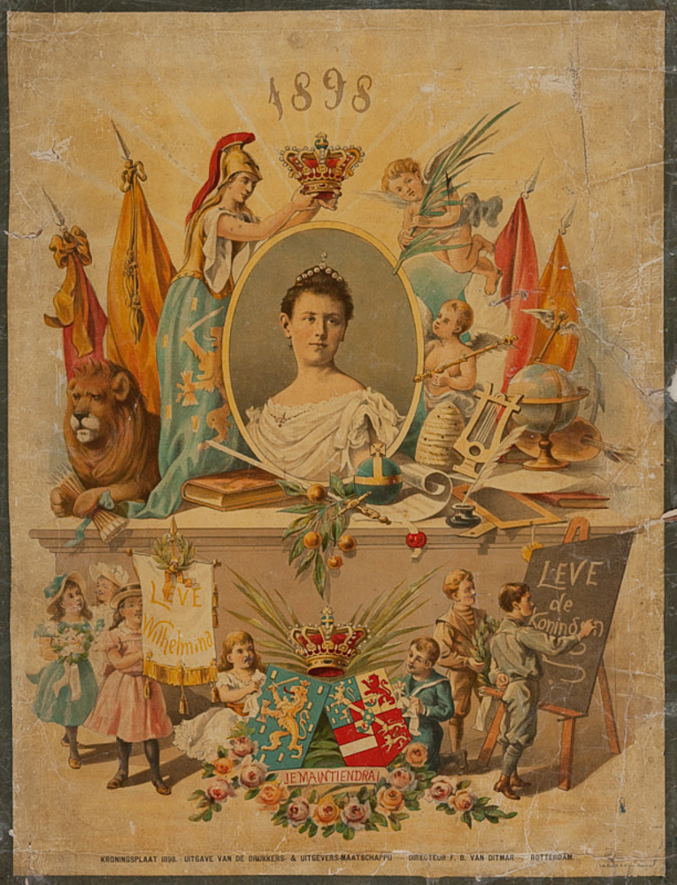 Affiche in kleurendruk ter gelegenheid van de kronin...