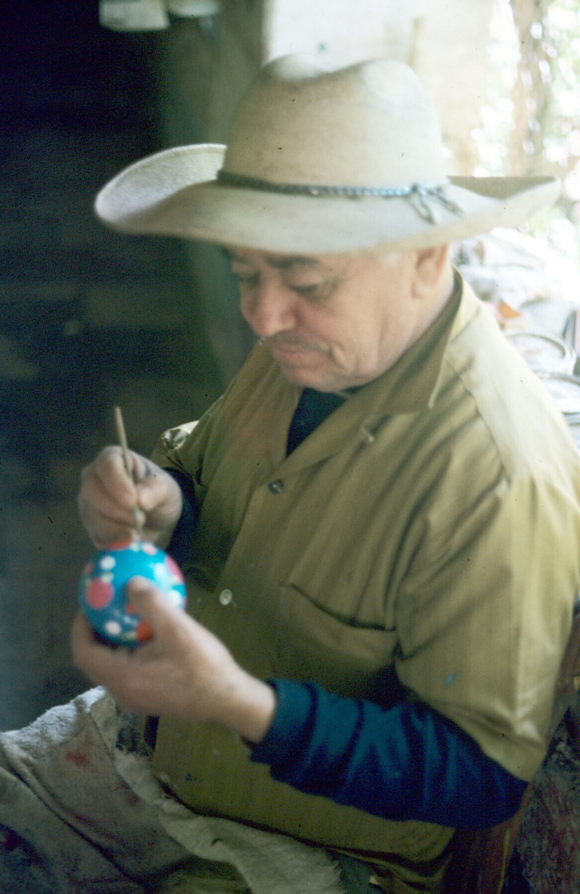 Savás Rendón y Ayala, lakwerk doos beschilderend