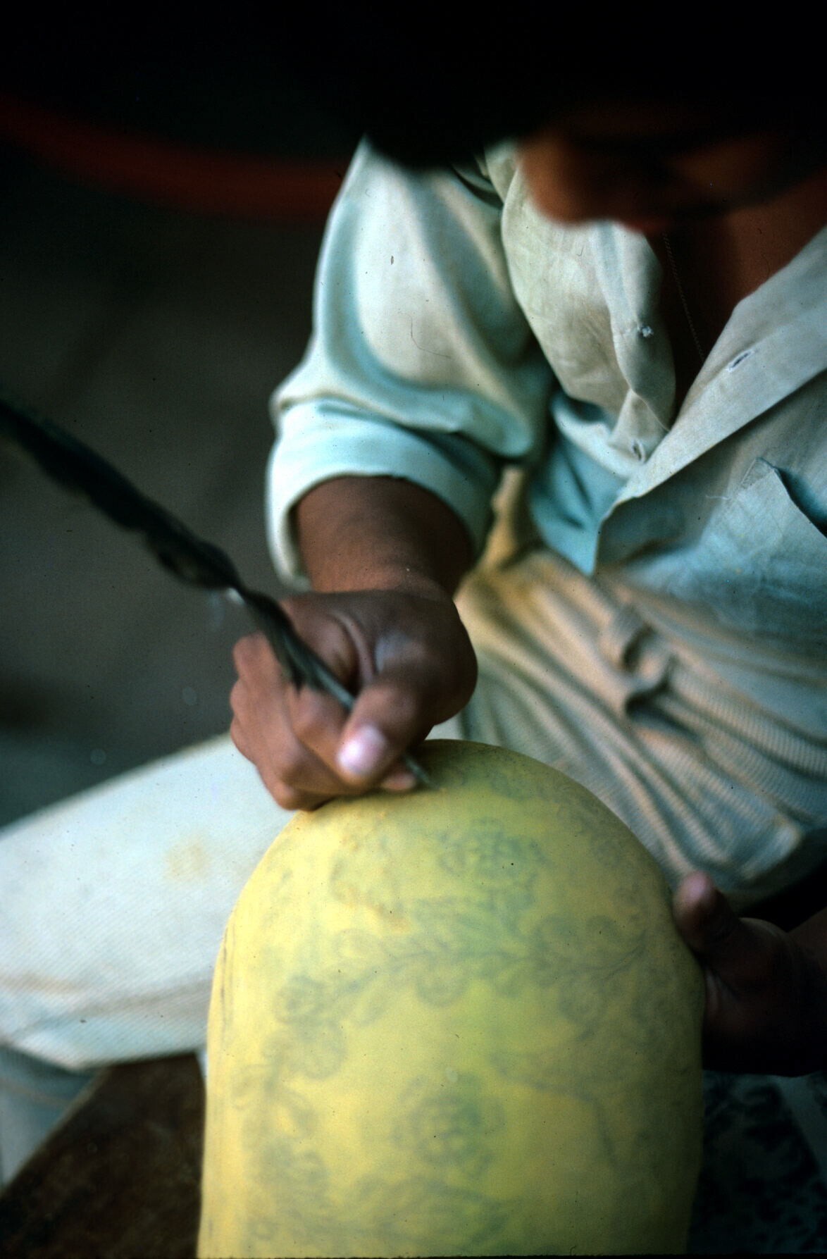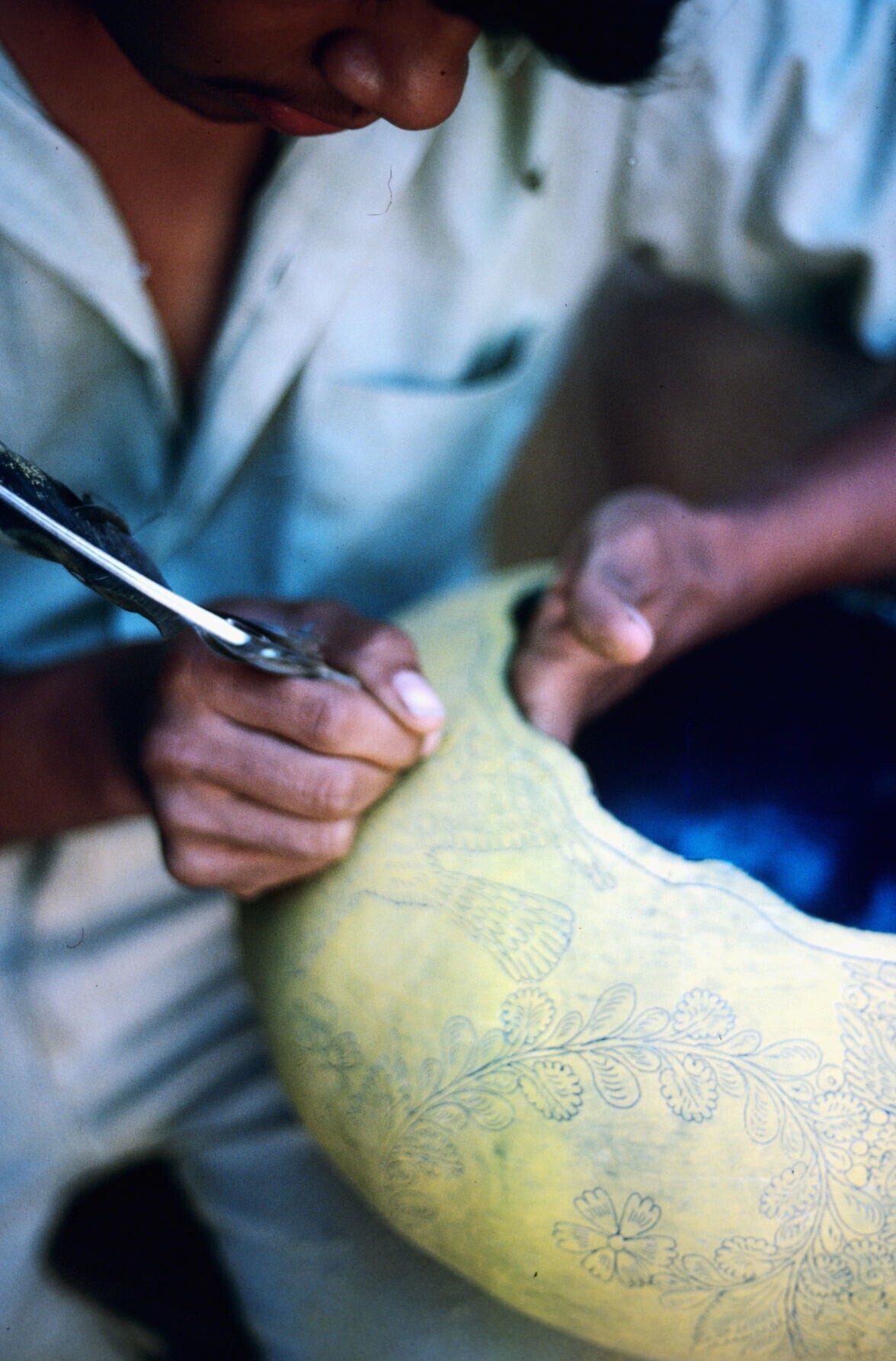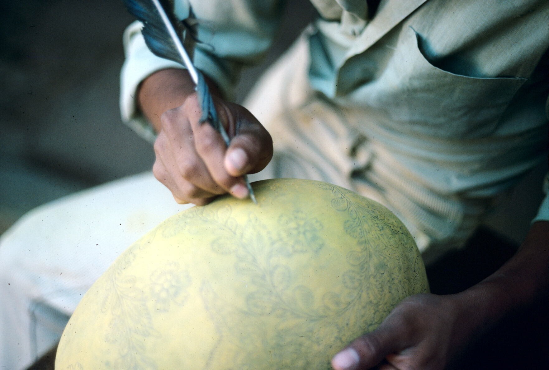 Savás Rendón y Ayala, lakwerk kist beschilderend