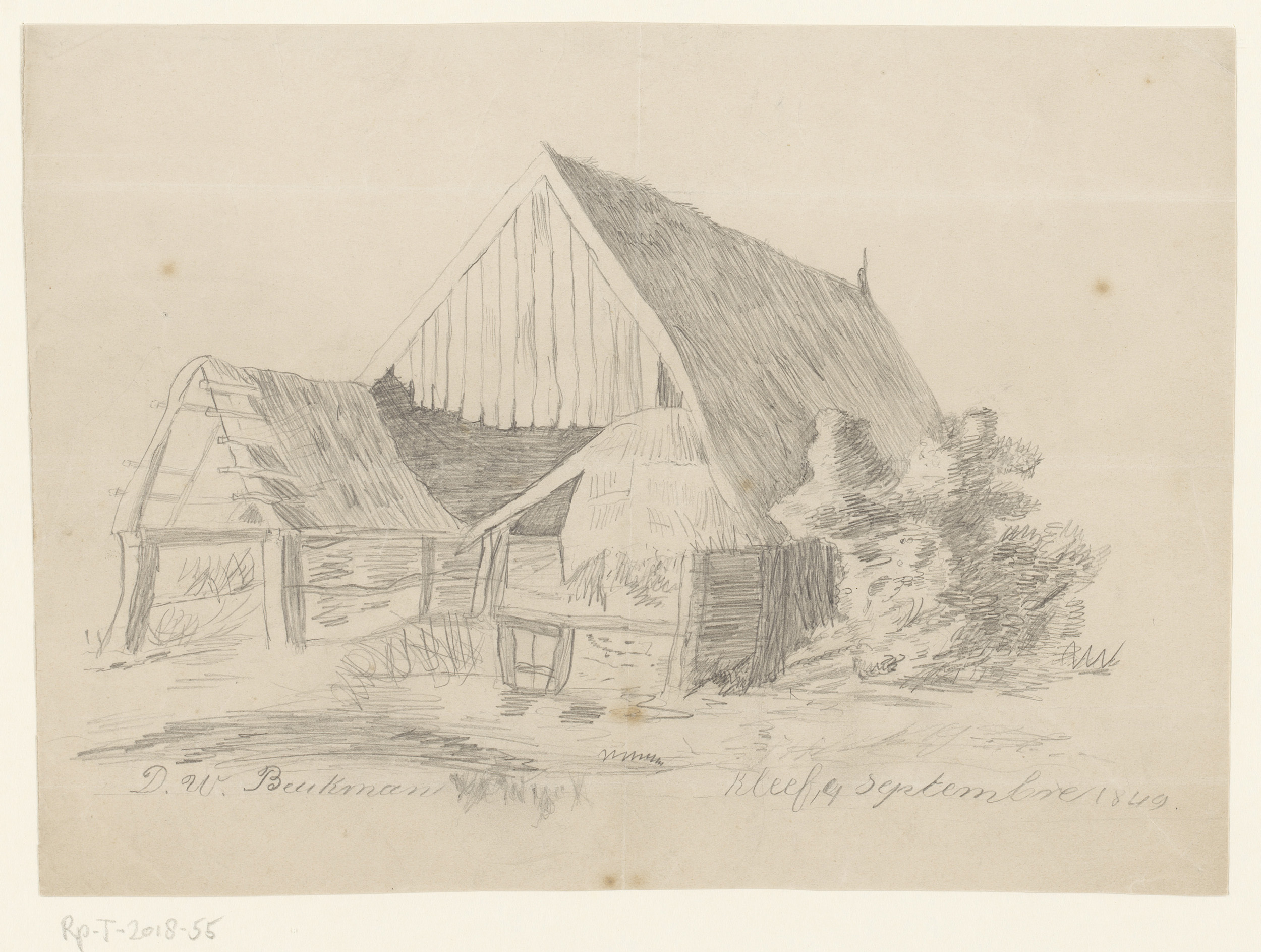 Gezicht op een schuur, bij Kleef