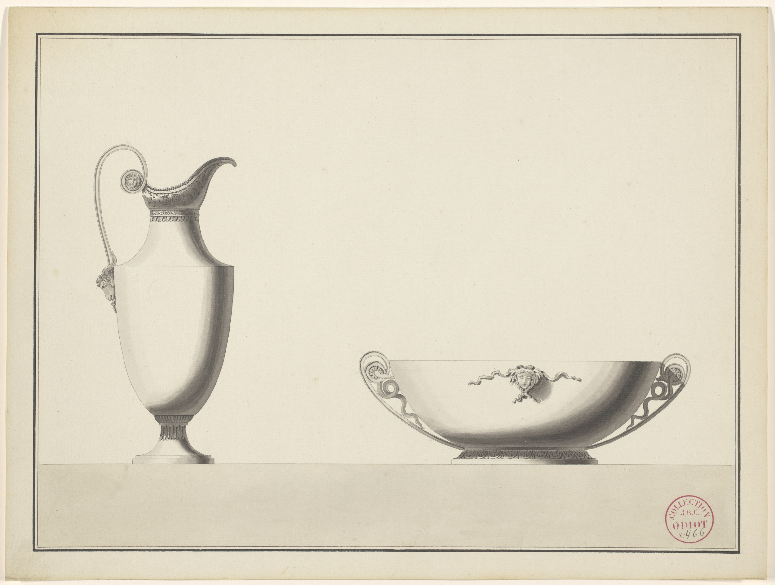 Ontwerp voor een kan met een ramskop en een schaal m...