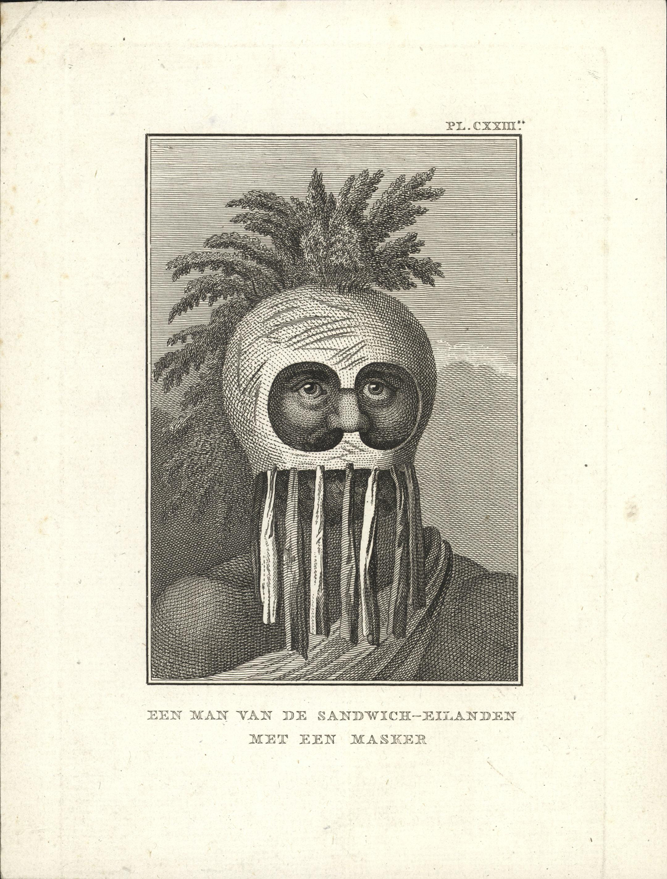 Een man van de Sandwich-Eilanden met een masker