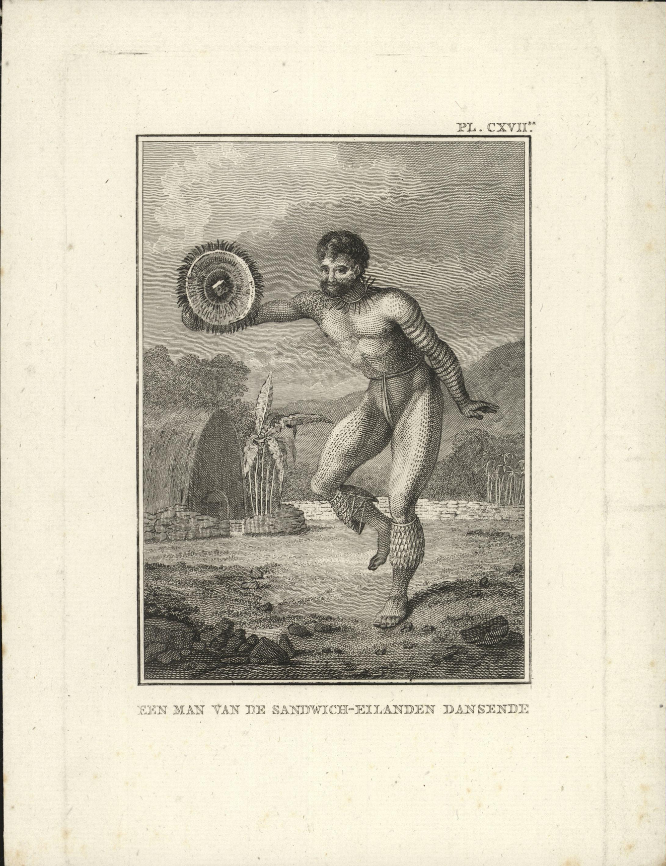 Een man van de Sandwich-Eilanden dansende