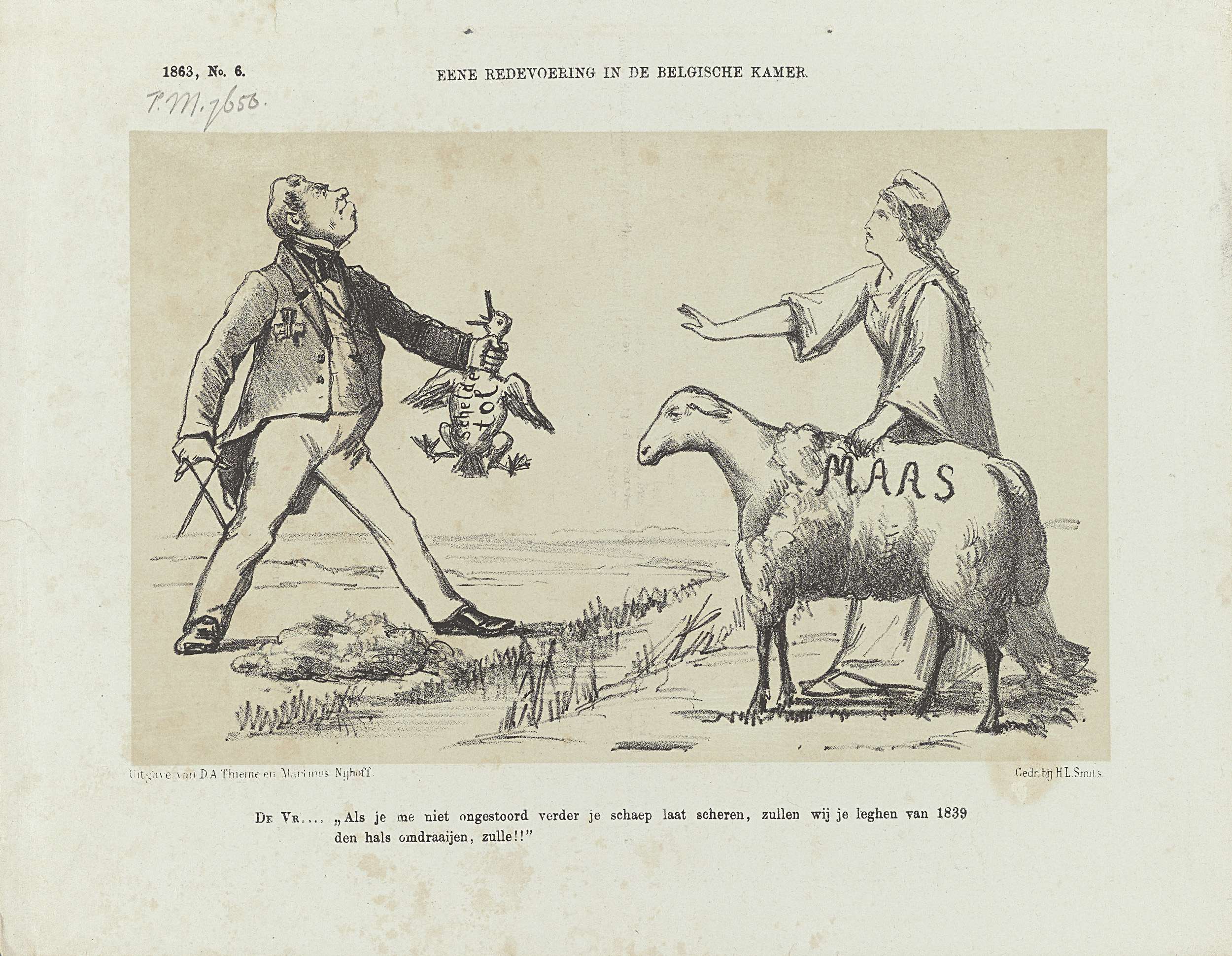 Spotprent op de Belgische politiek over de Schelde e...