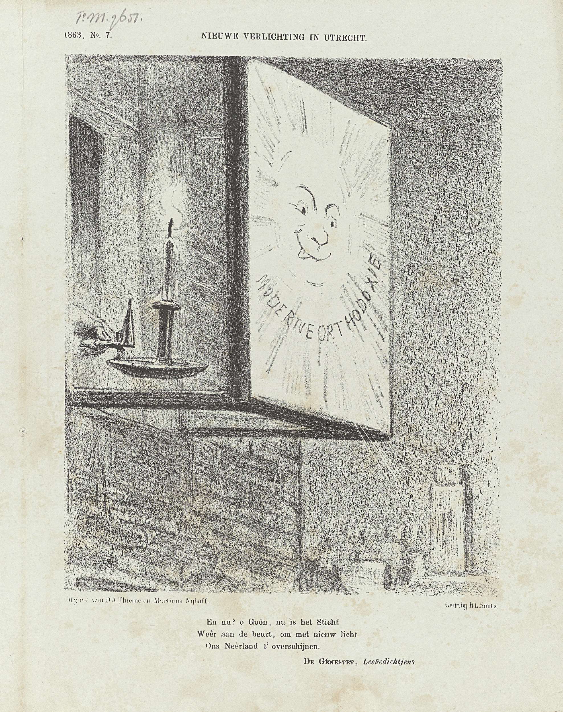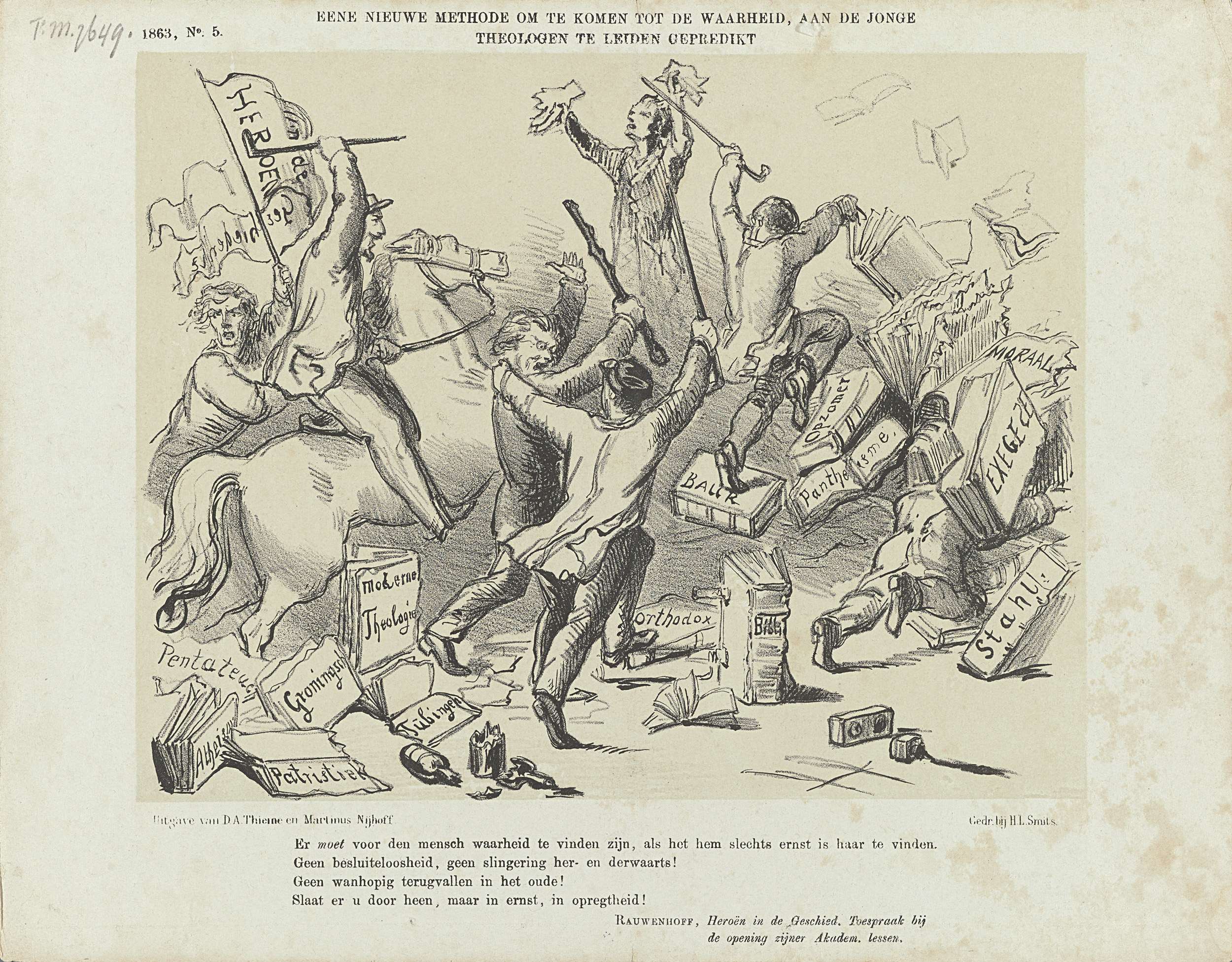 Spotprent op de theologie te Leiden, 1863