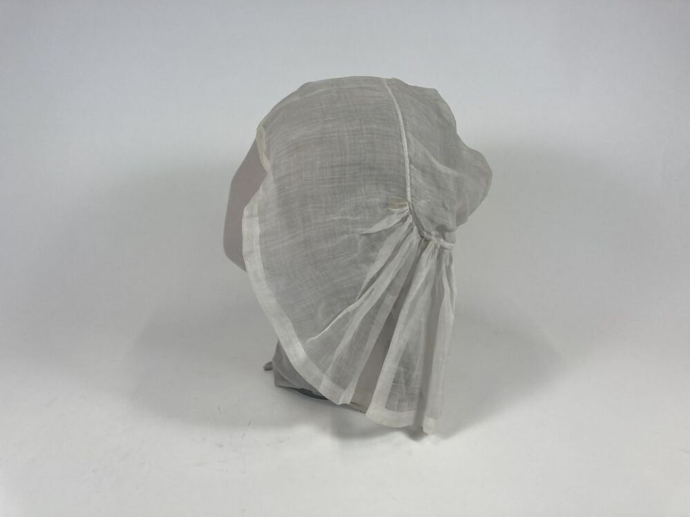 Rouwmuts van wit neteldoek of linnen, met zwart trek...