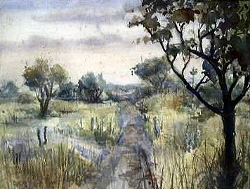 Aquarel van duinlandschap bij Tussenwijk