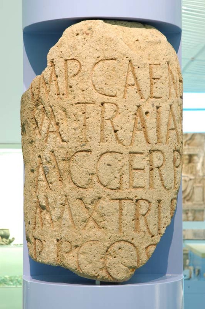 Mijlpaalfragment van natuursteen uit de Romeinse tijd
