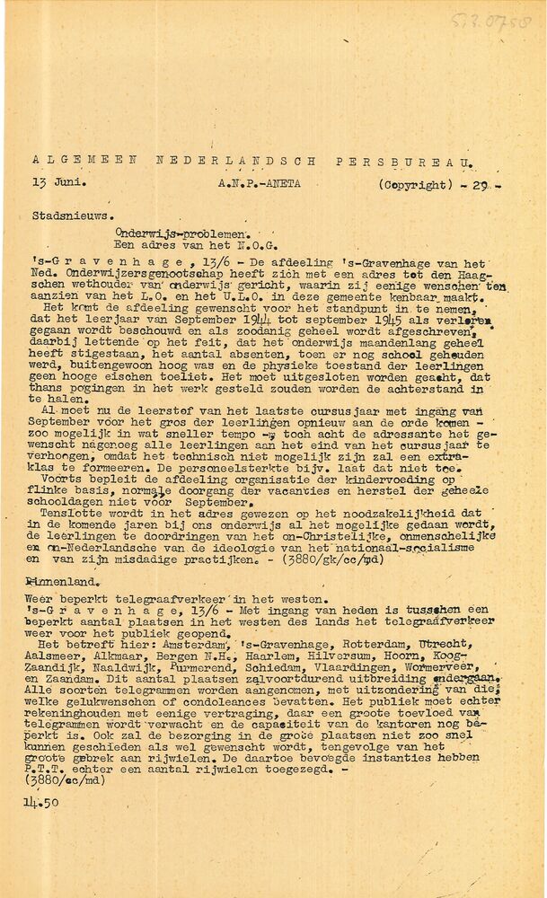 Vel: Algemeen Nederlandsch Persbureau, mededelingen,...