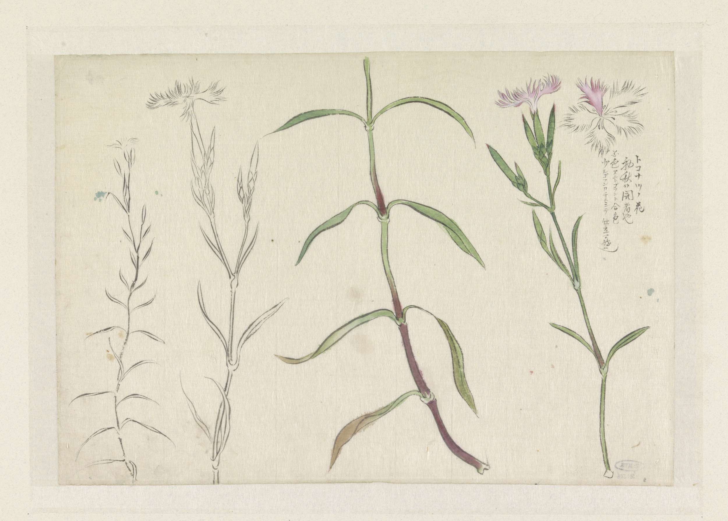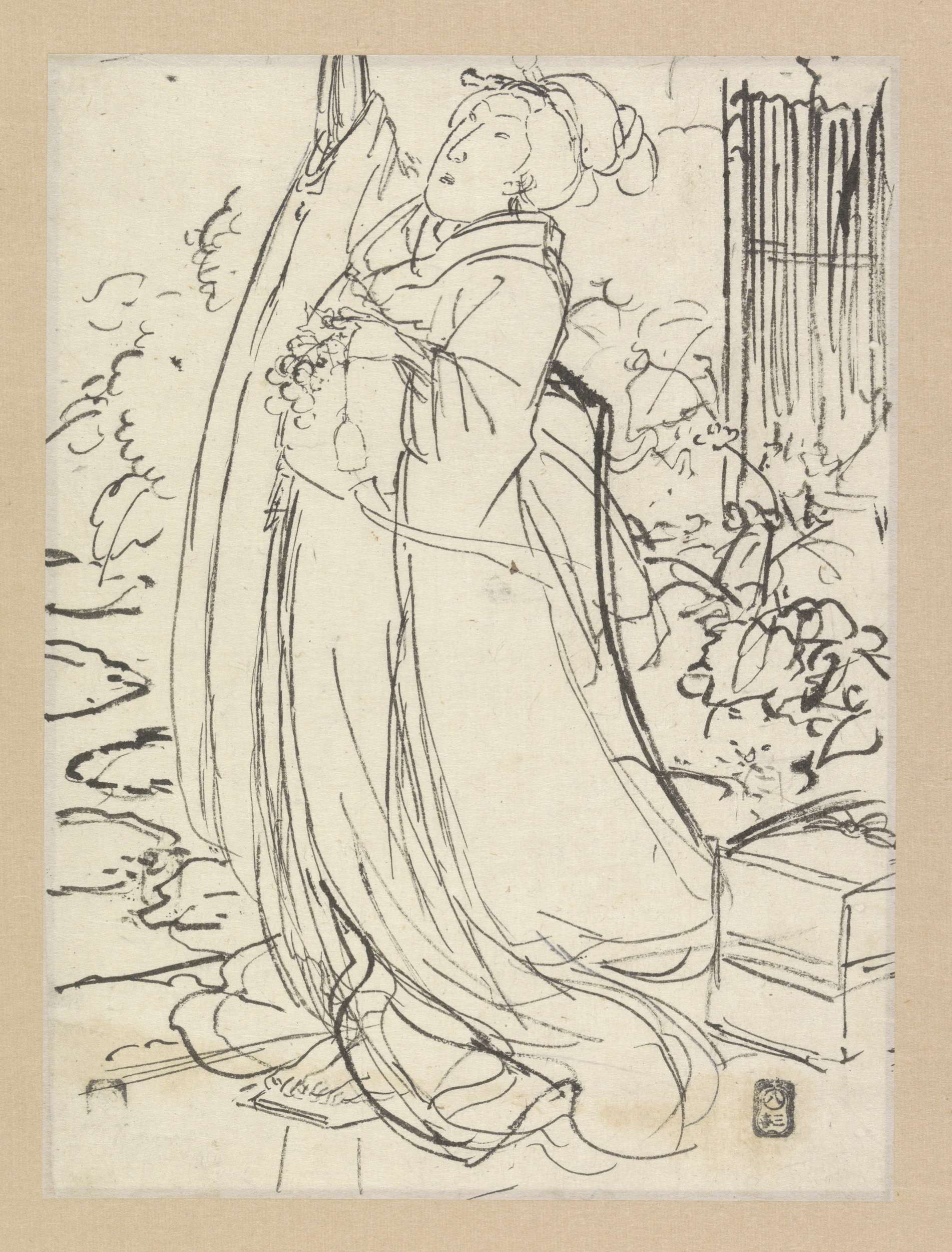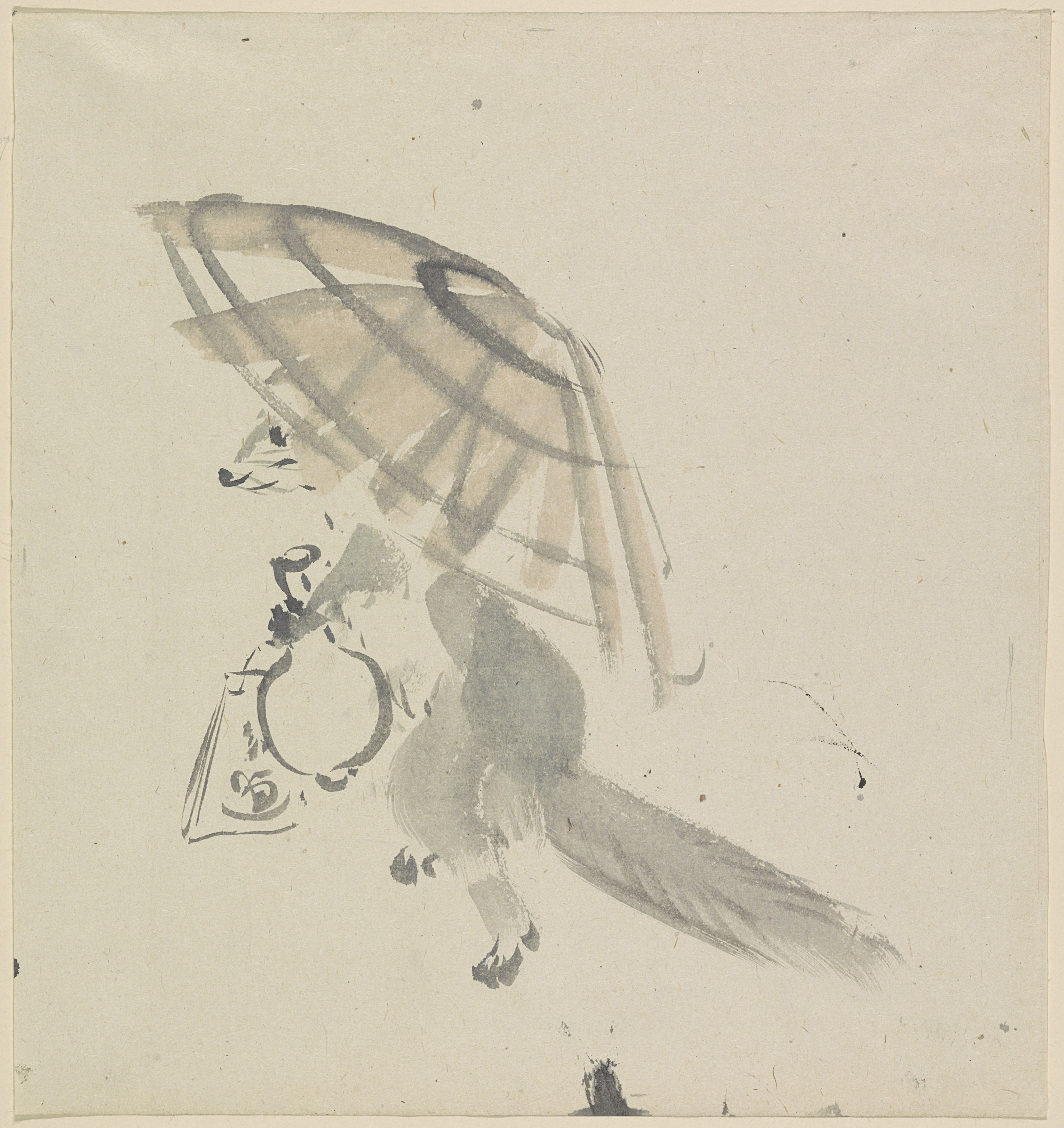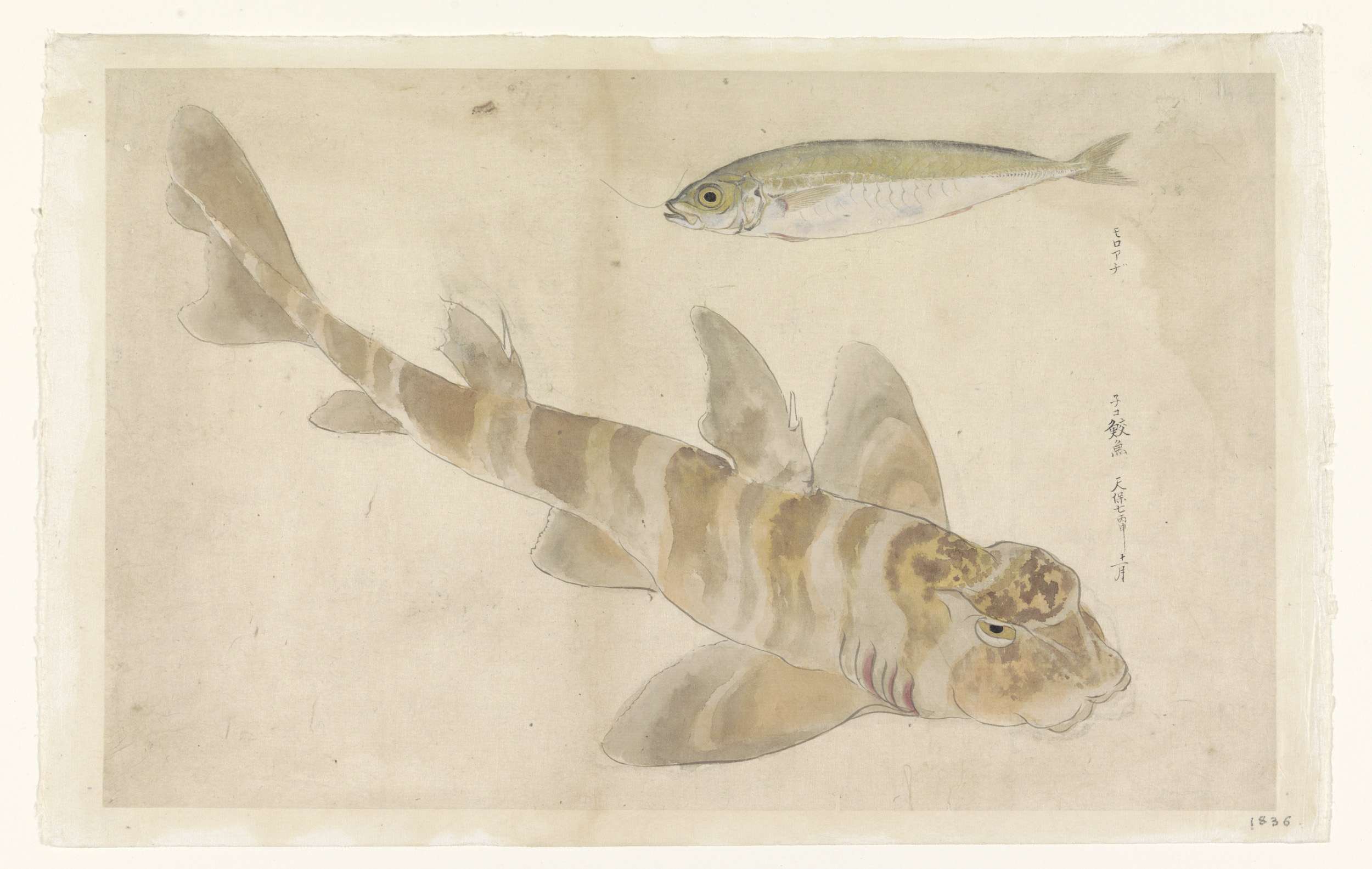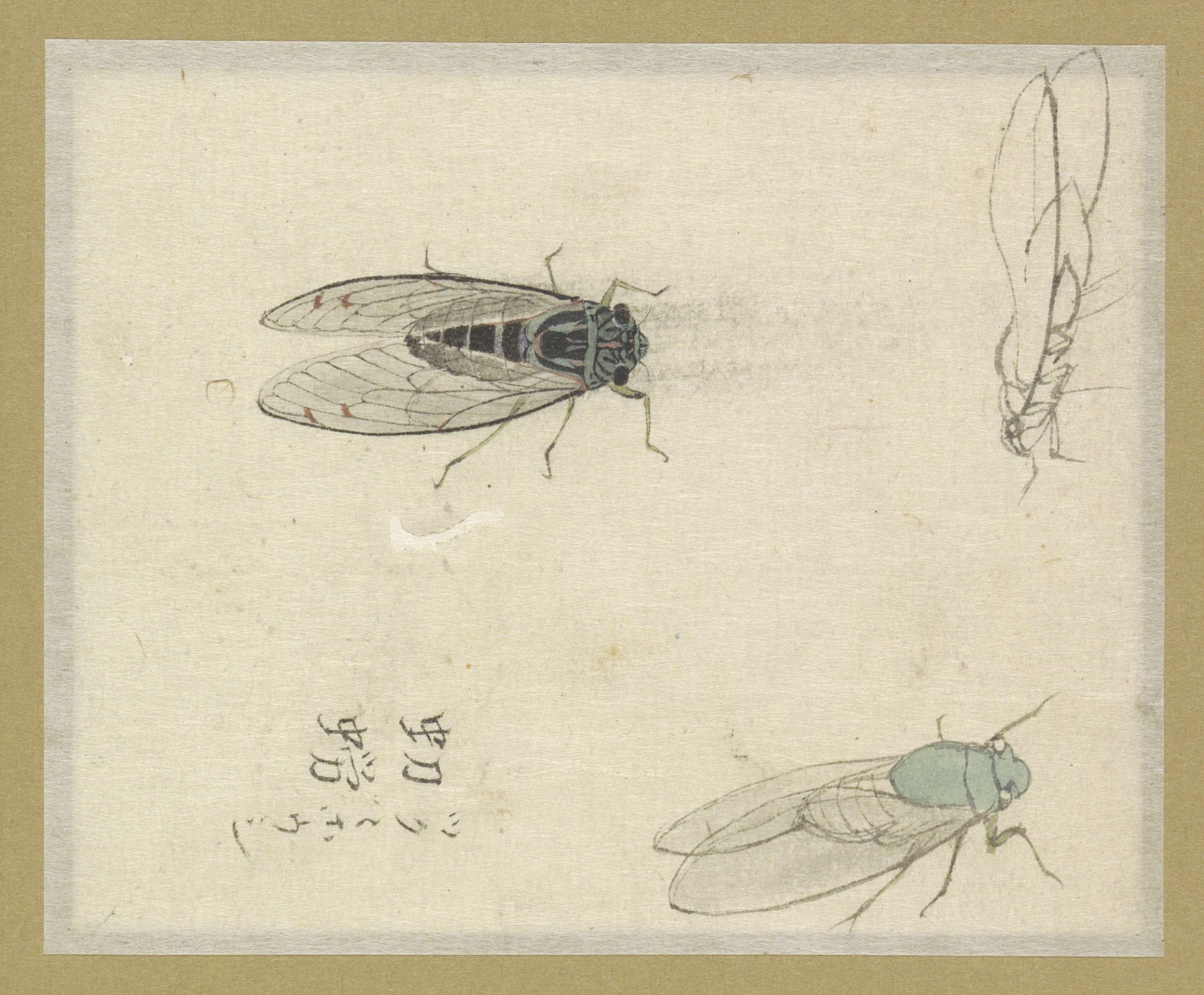 Schetsblad met reebok in struikgewas en twee haviksk...
