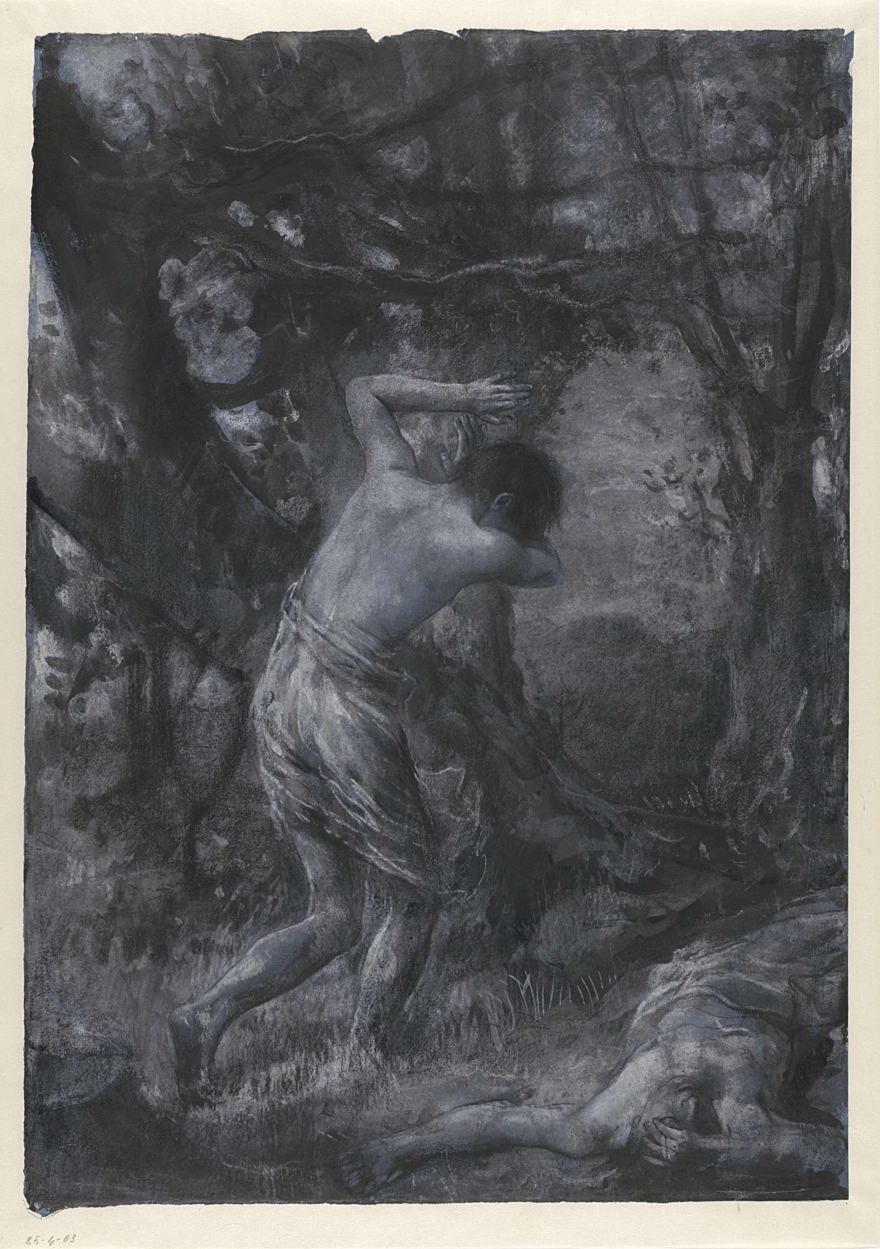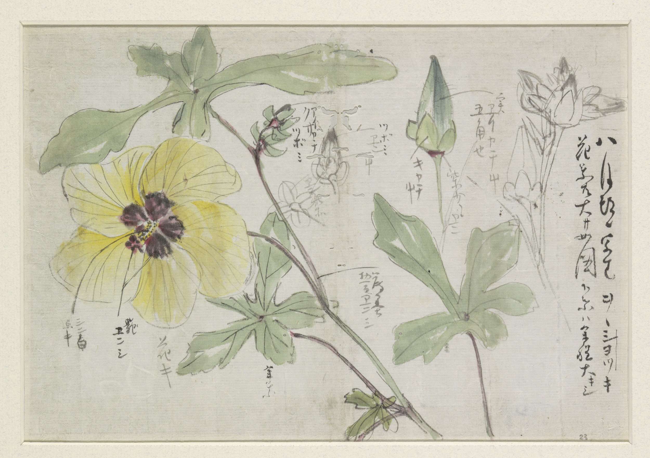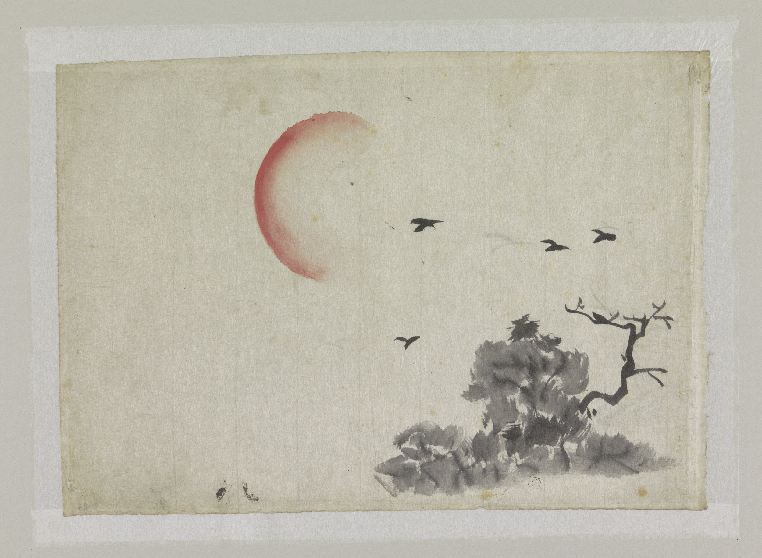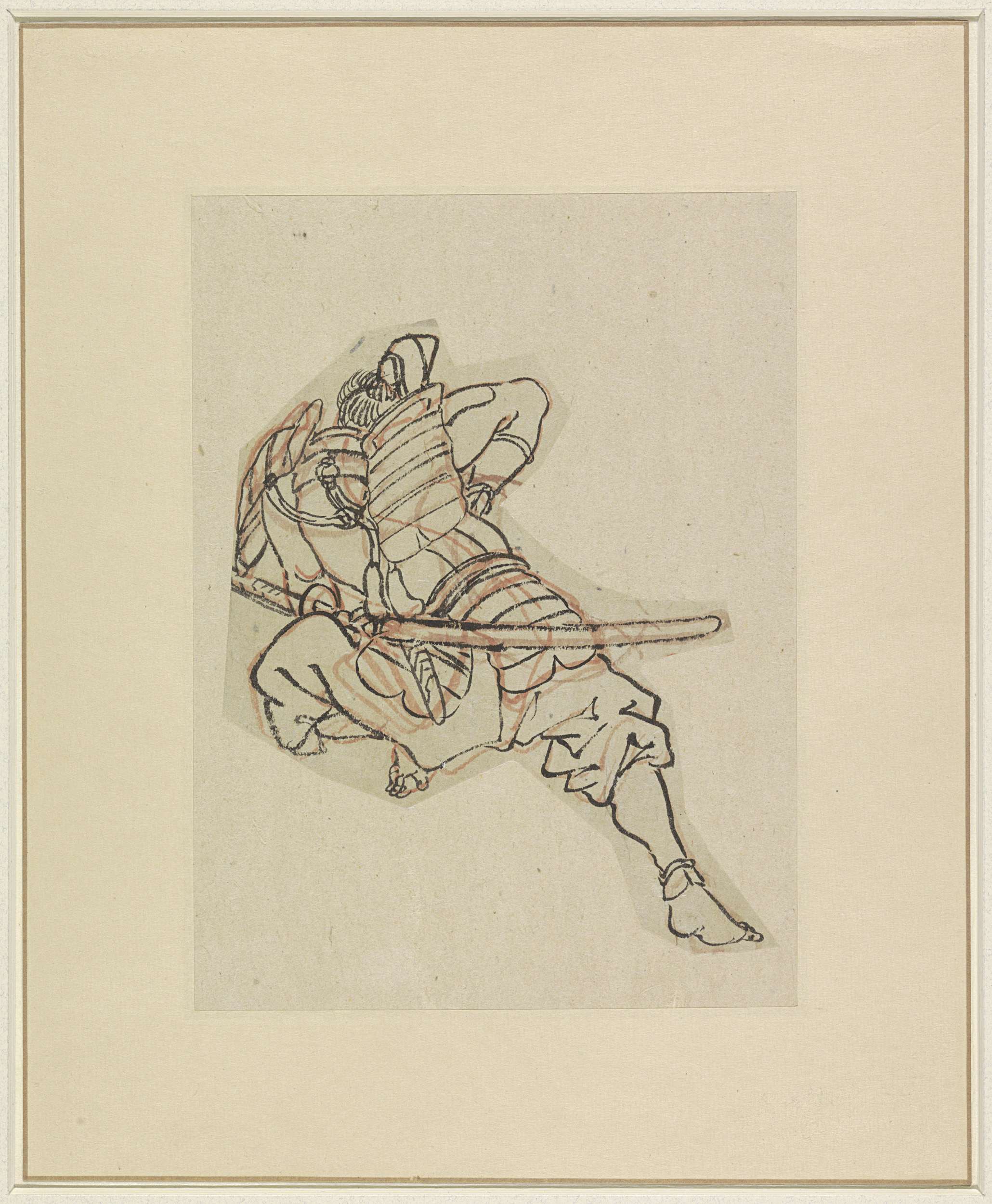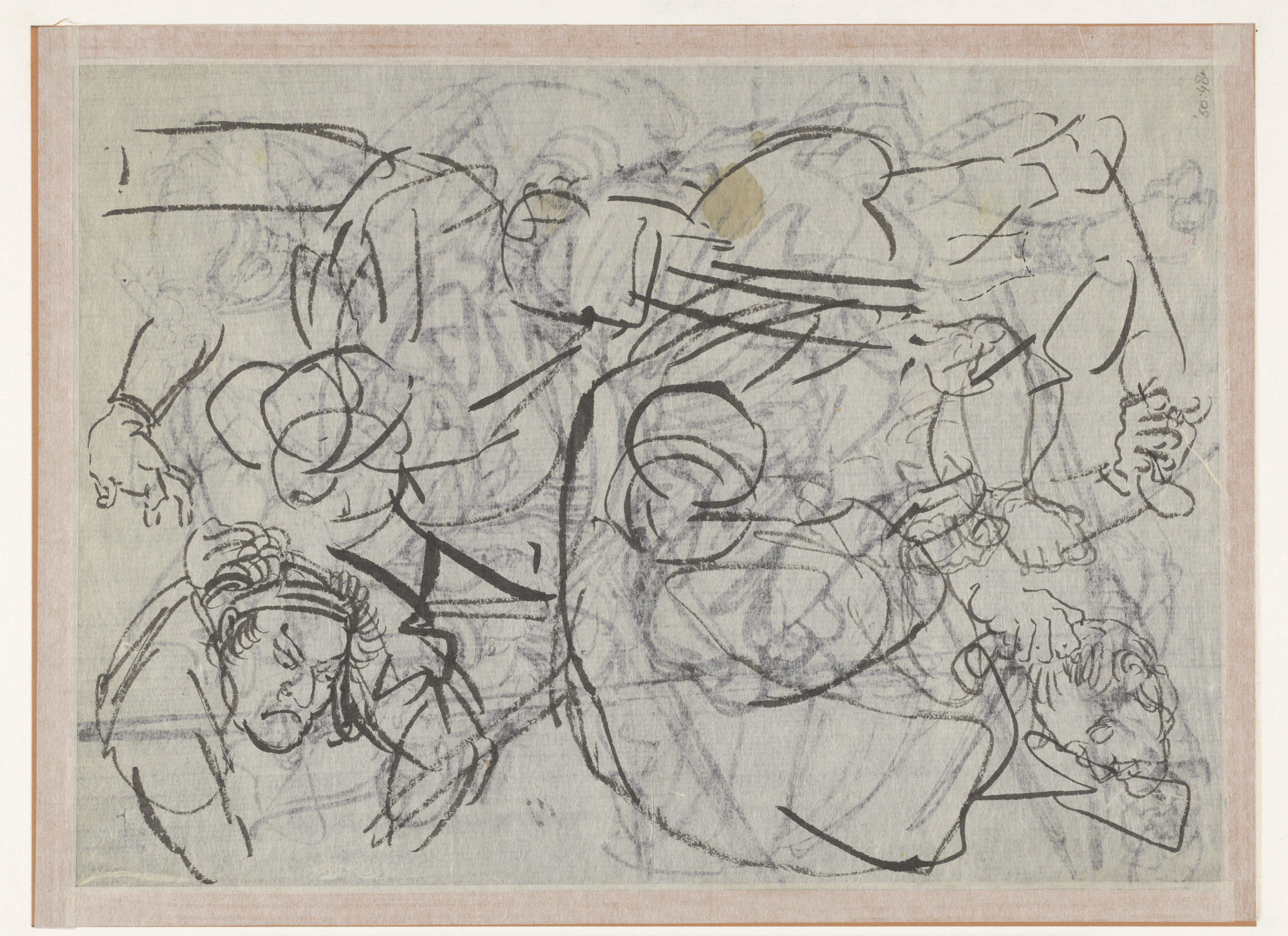 Schetsblad met reebok in struikgewas en twee haviksk...
