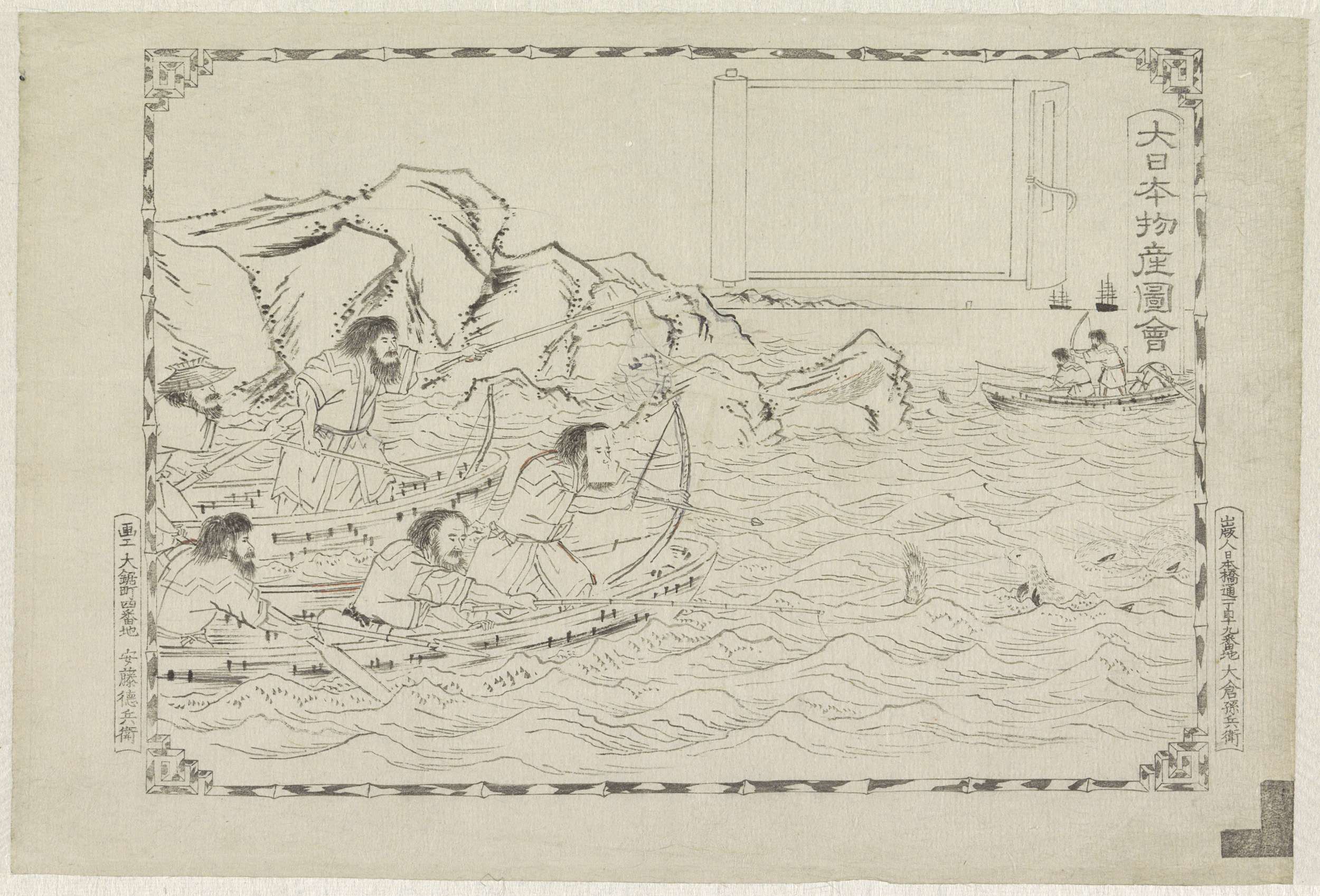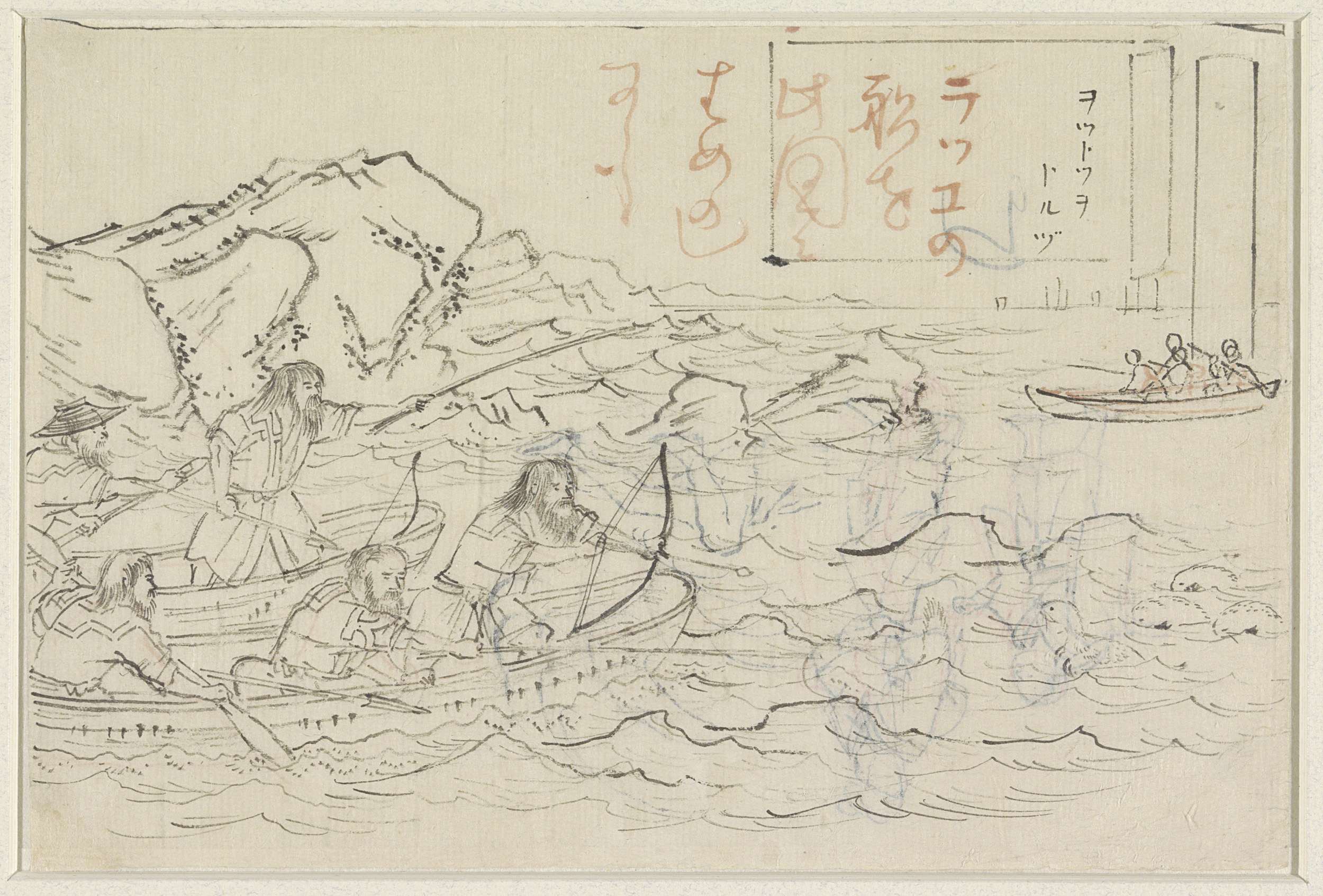 Robbenjacht vanuit een roeibootje in imitatiebamboe ...