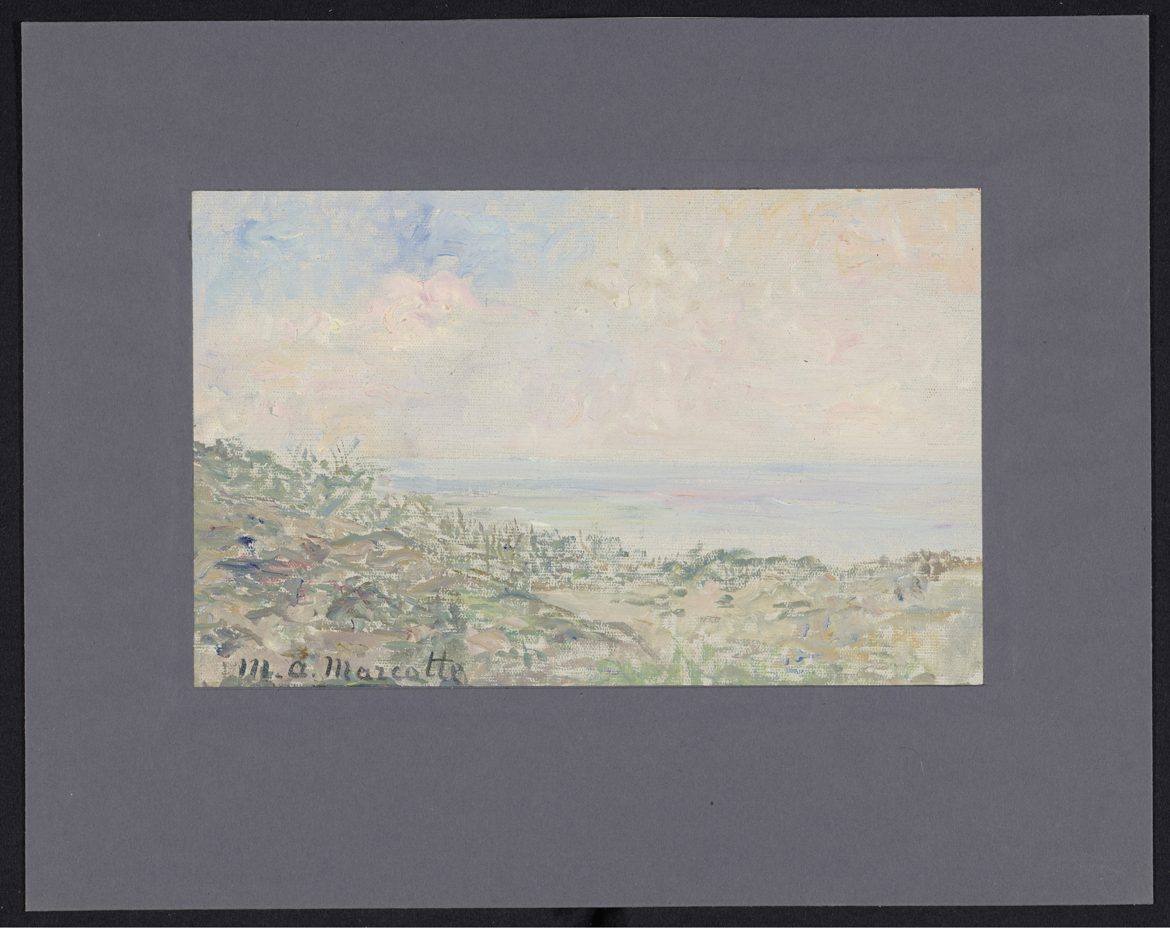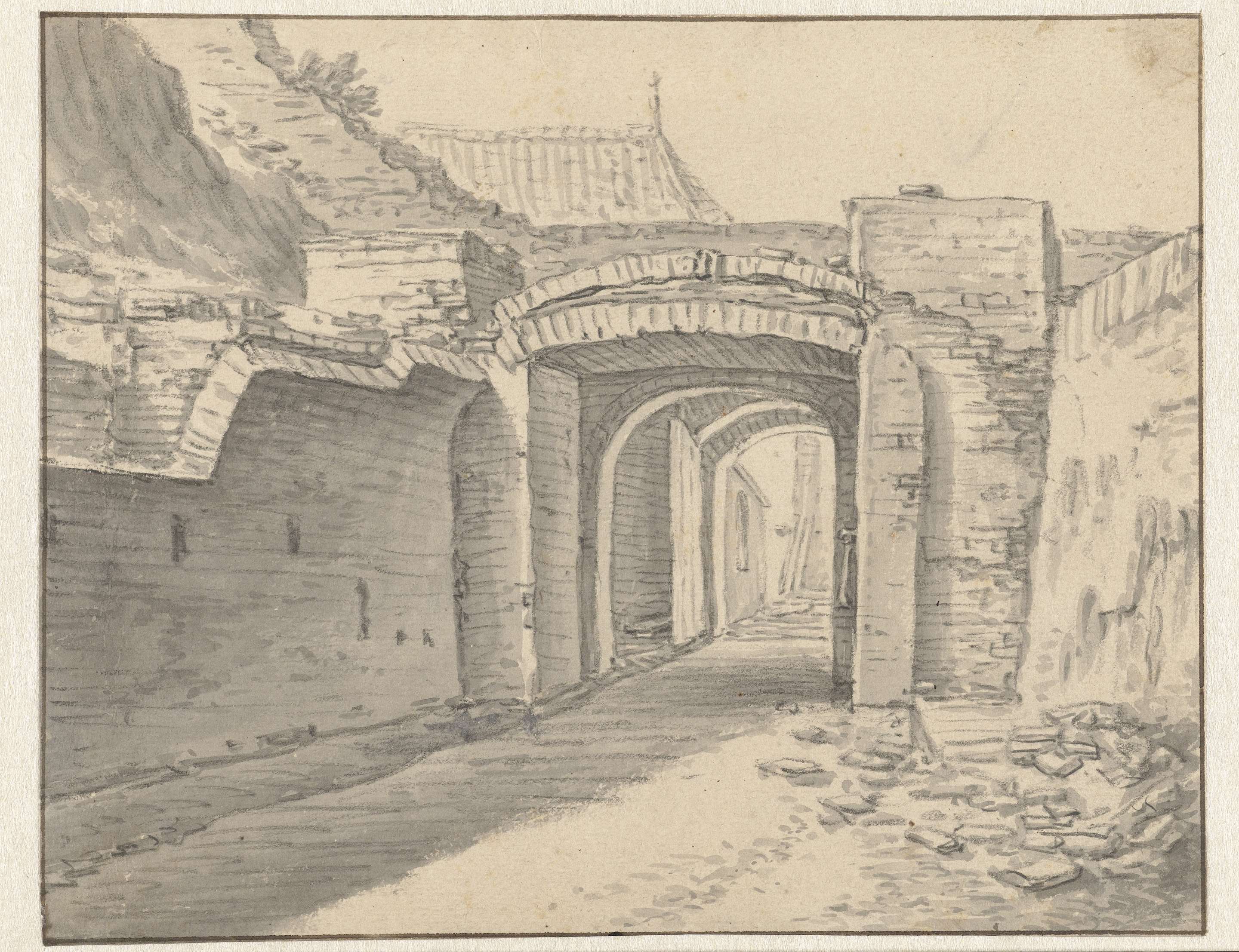 Landschapsvignet met gezicht vanuit een grot op een ...