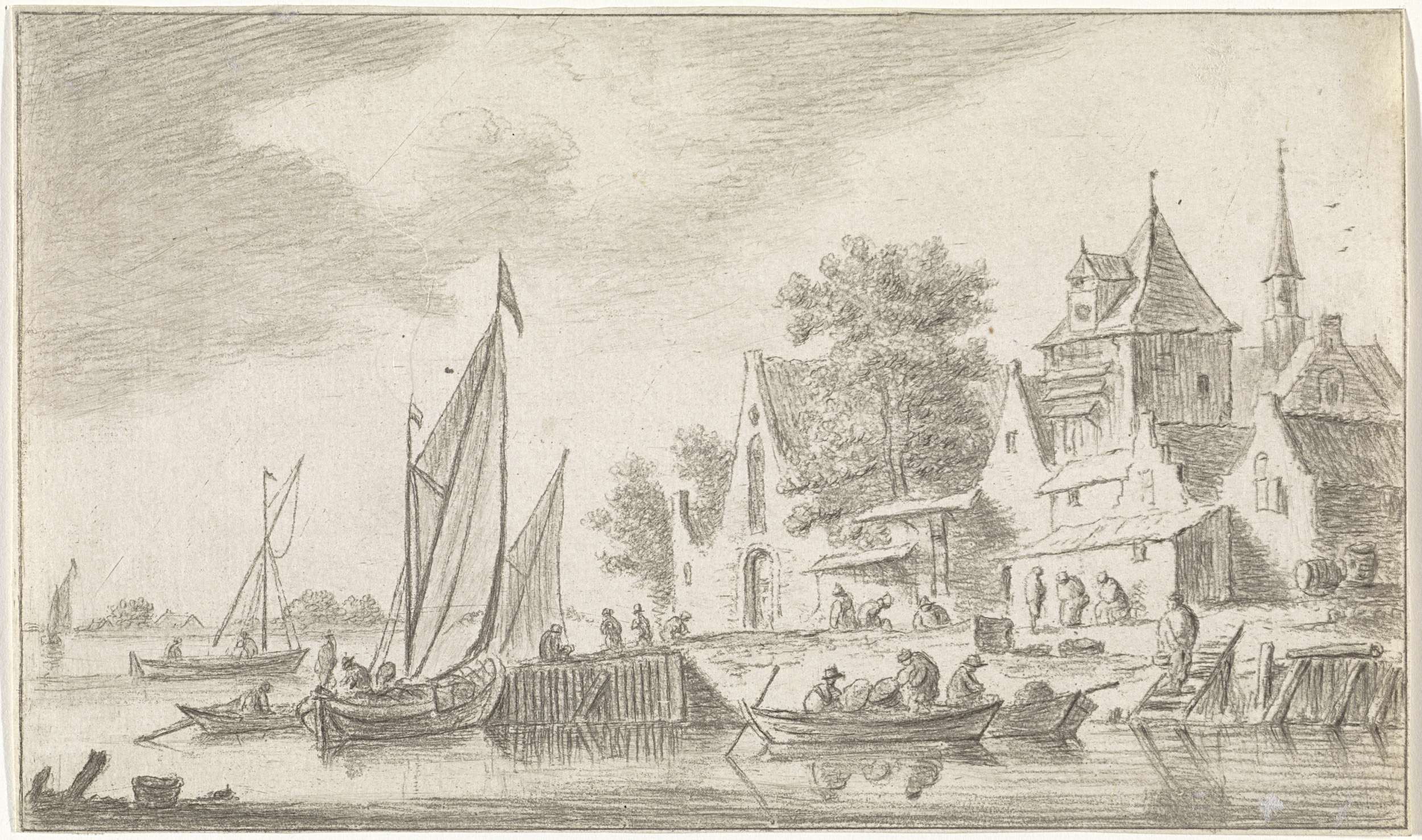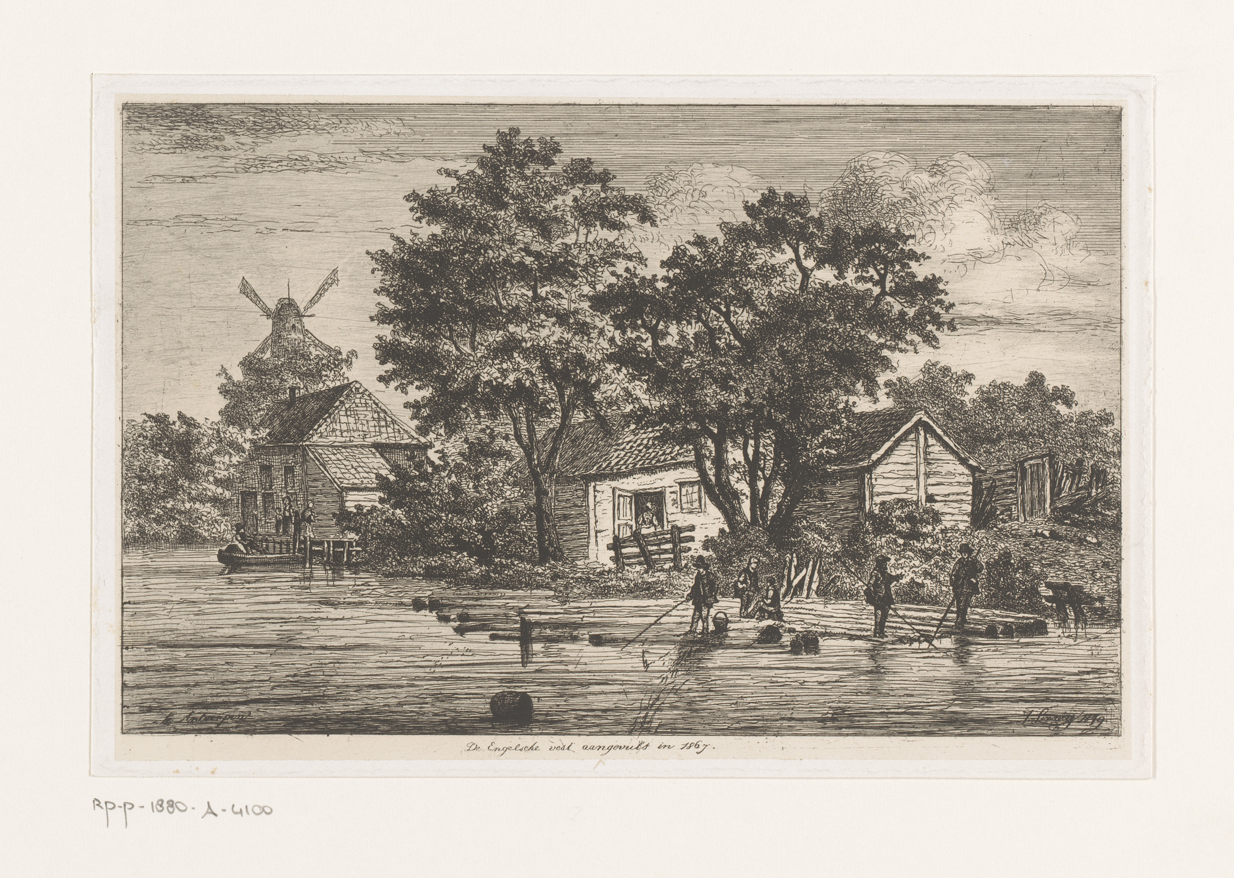 Gezicht op de Engelse vest in Antwerpen waarop booms...