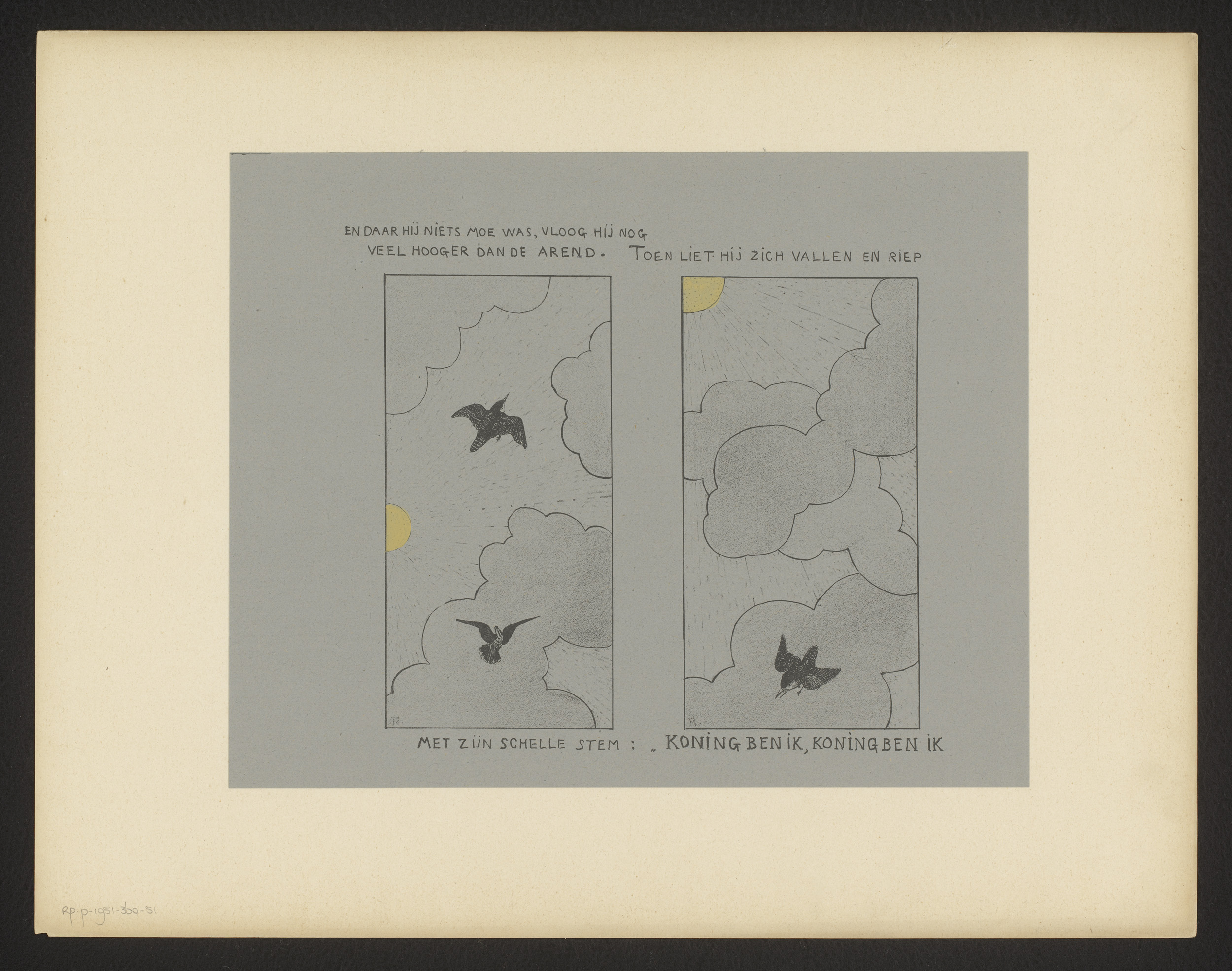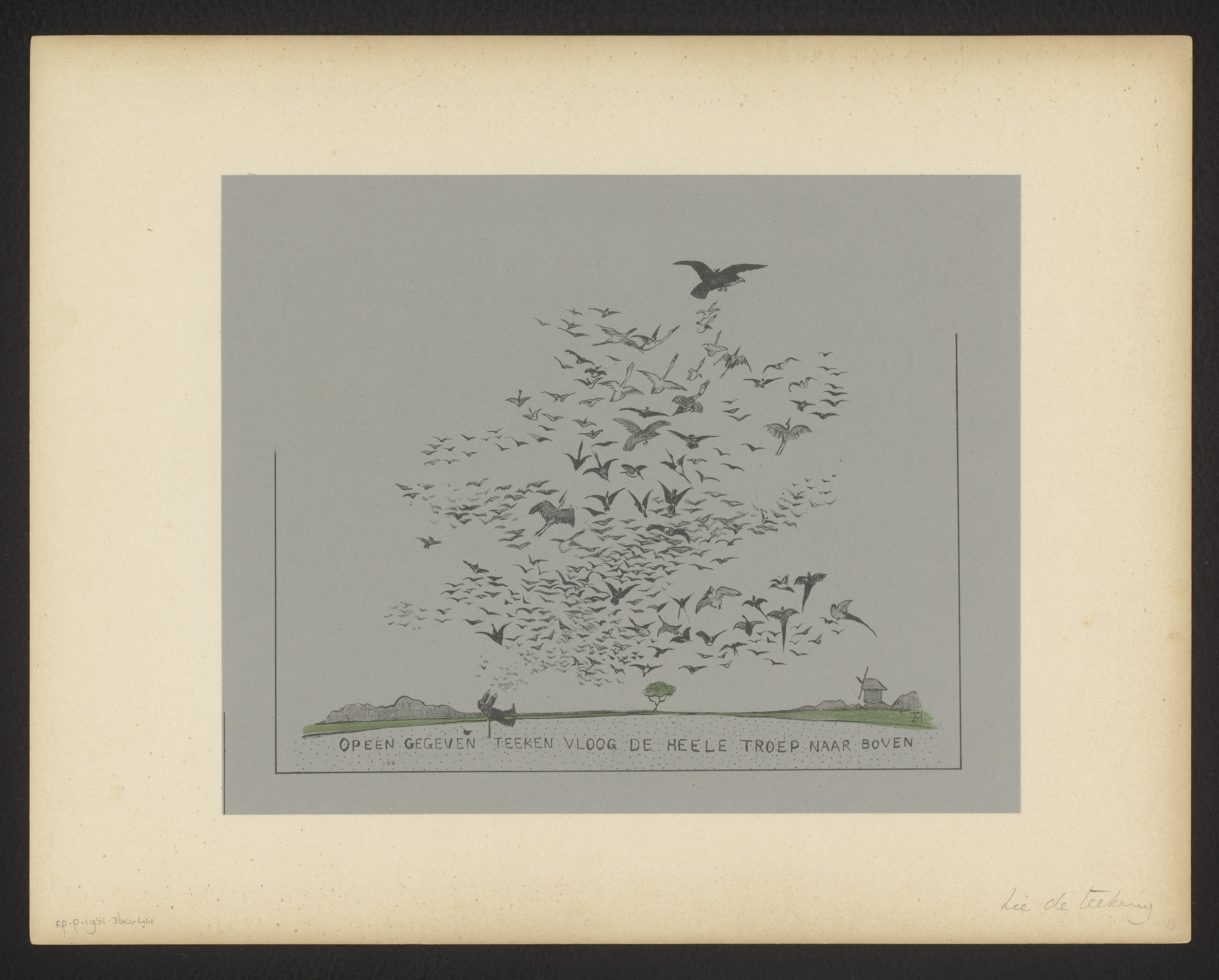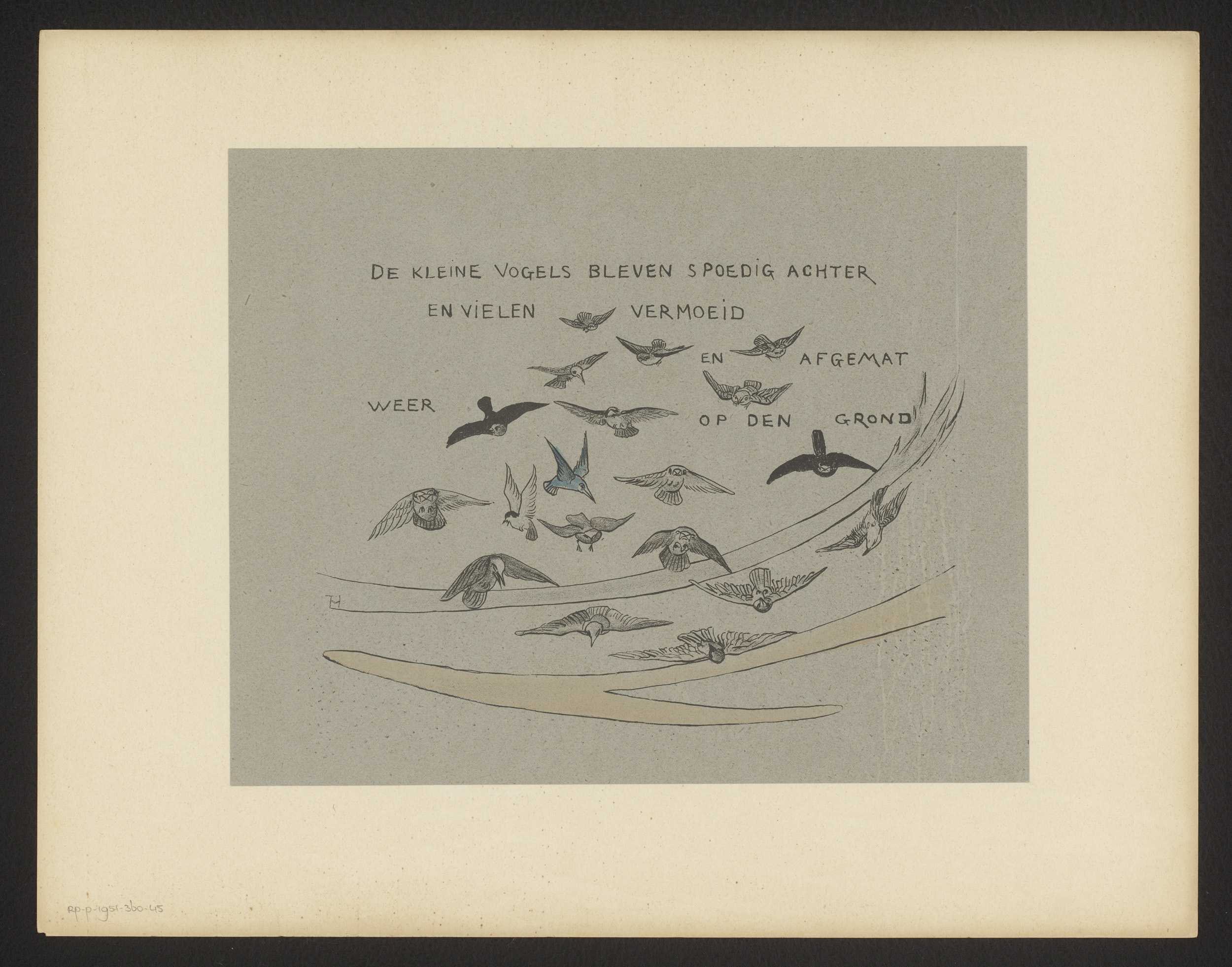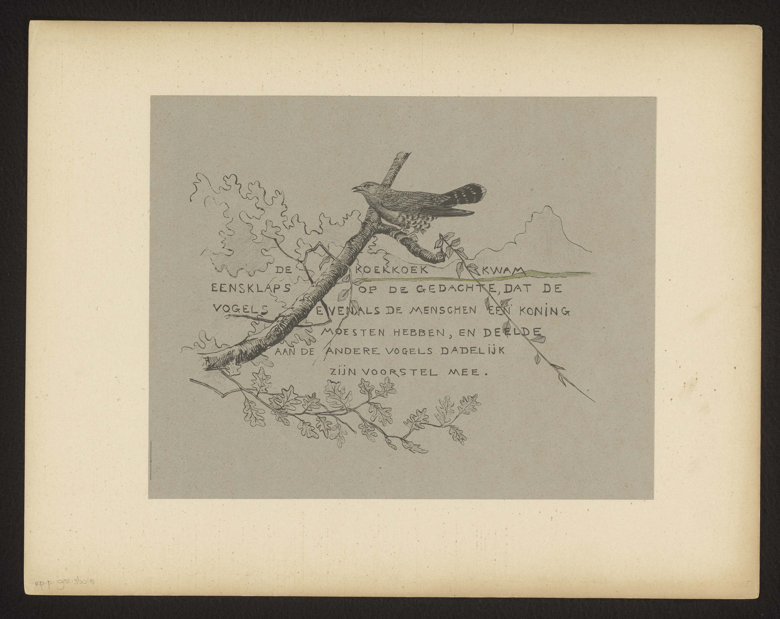 Tekstblad met onder andere pauw, uilen, reiger en ro...