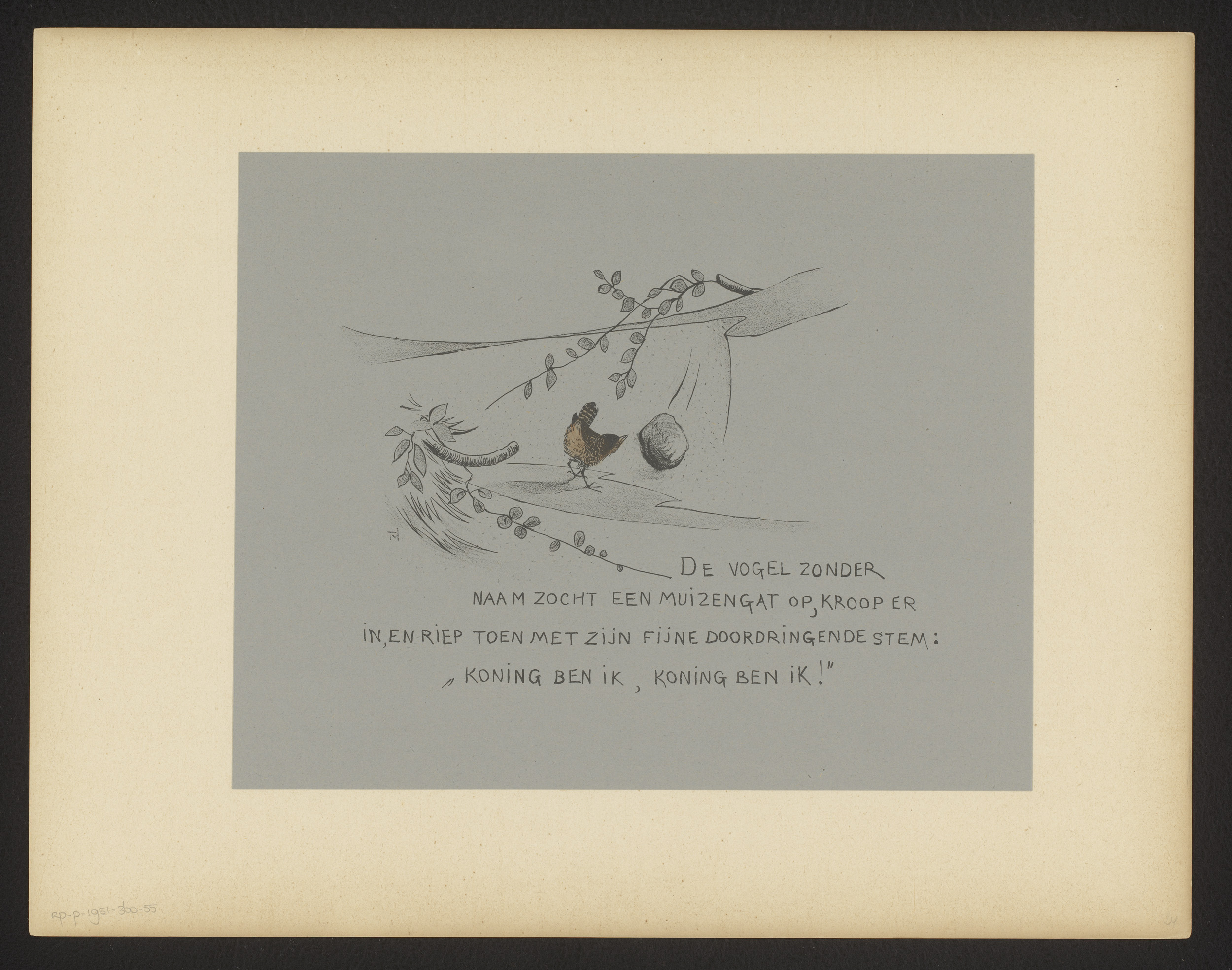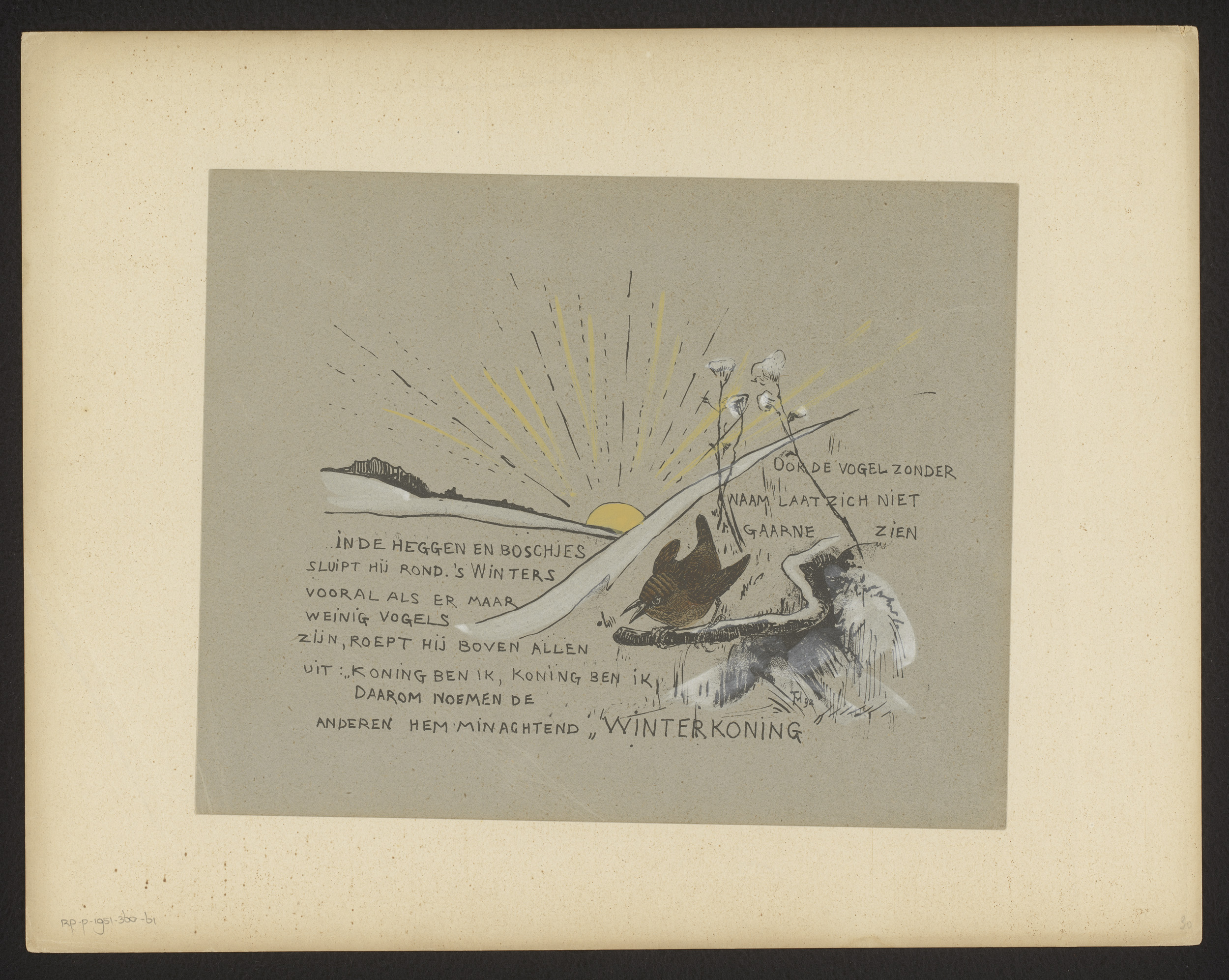 Tekstblad met winterkoning die ontsnapt als de uil i...
