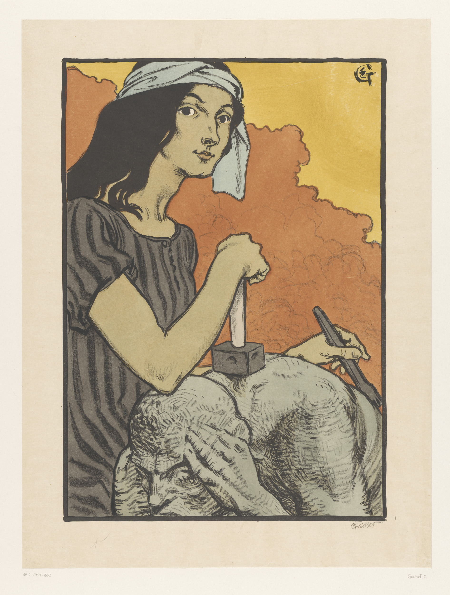 Beeldhouwster werkt met beitel en hamer aan een scul...