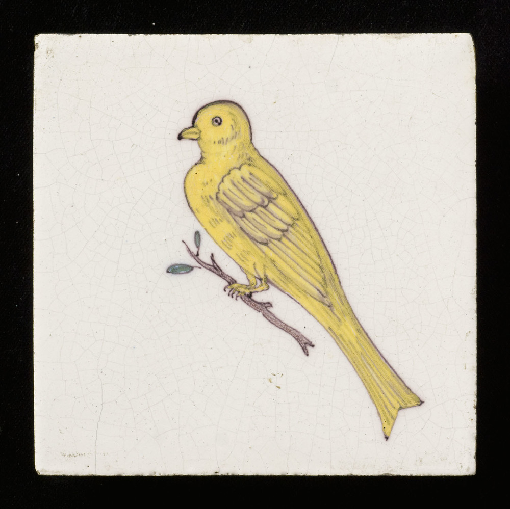 Tegel van keramiek, tinglazuur, voorstellende een vo...