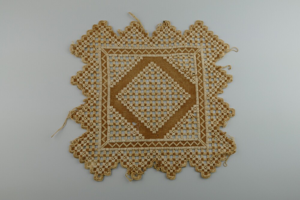 Kleedje van katoen, geborduurd door een huisvrouw; a...