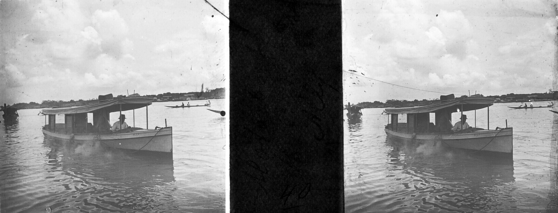 De motorsloep 'Ally' van het Boschwezen op de rivier...