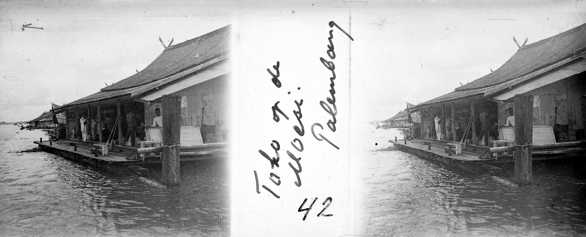 Winkel op een vlot in de rivier Musi, Palembang