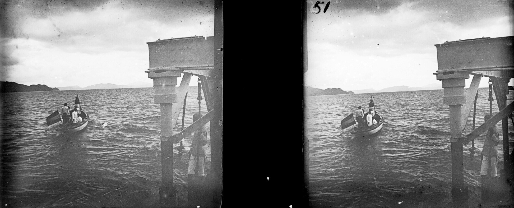 Het gouvernementsvaartuig 'Bellatrix' met sloep op d...