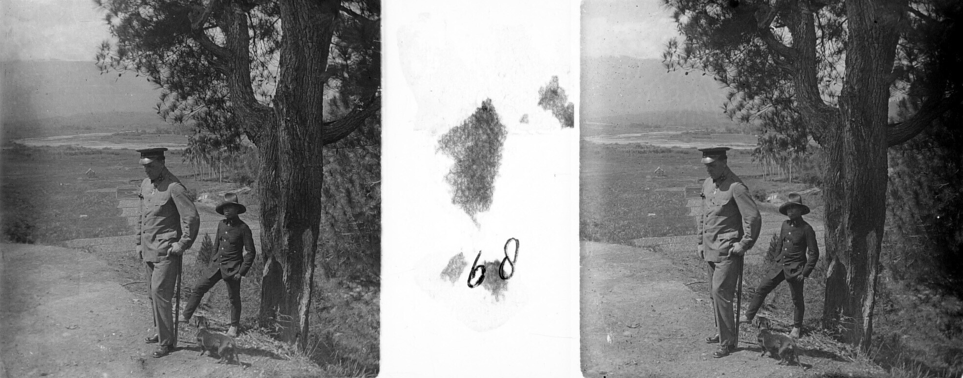 Kapitein P. Kaniess met teckel bij een rivierdal, Bl...