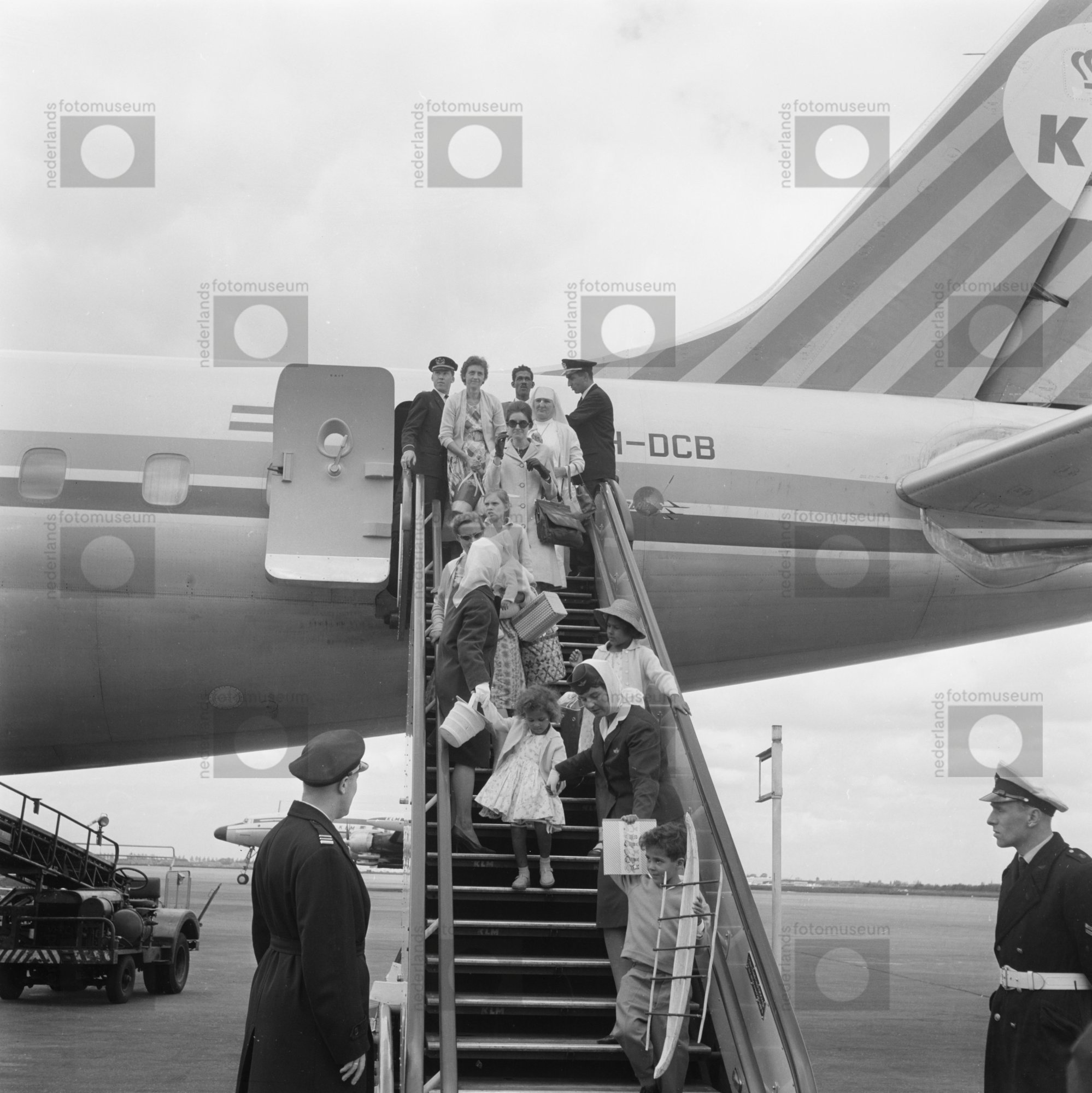 Evacués uit Nieuw-Guinea arriveren op Schiphol.