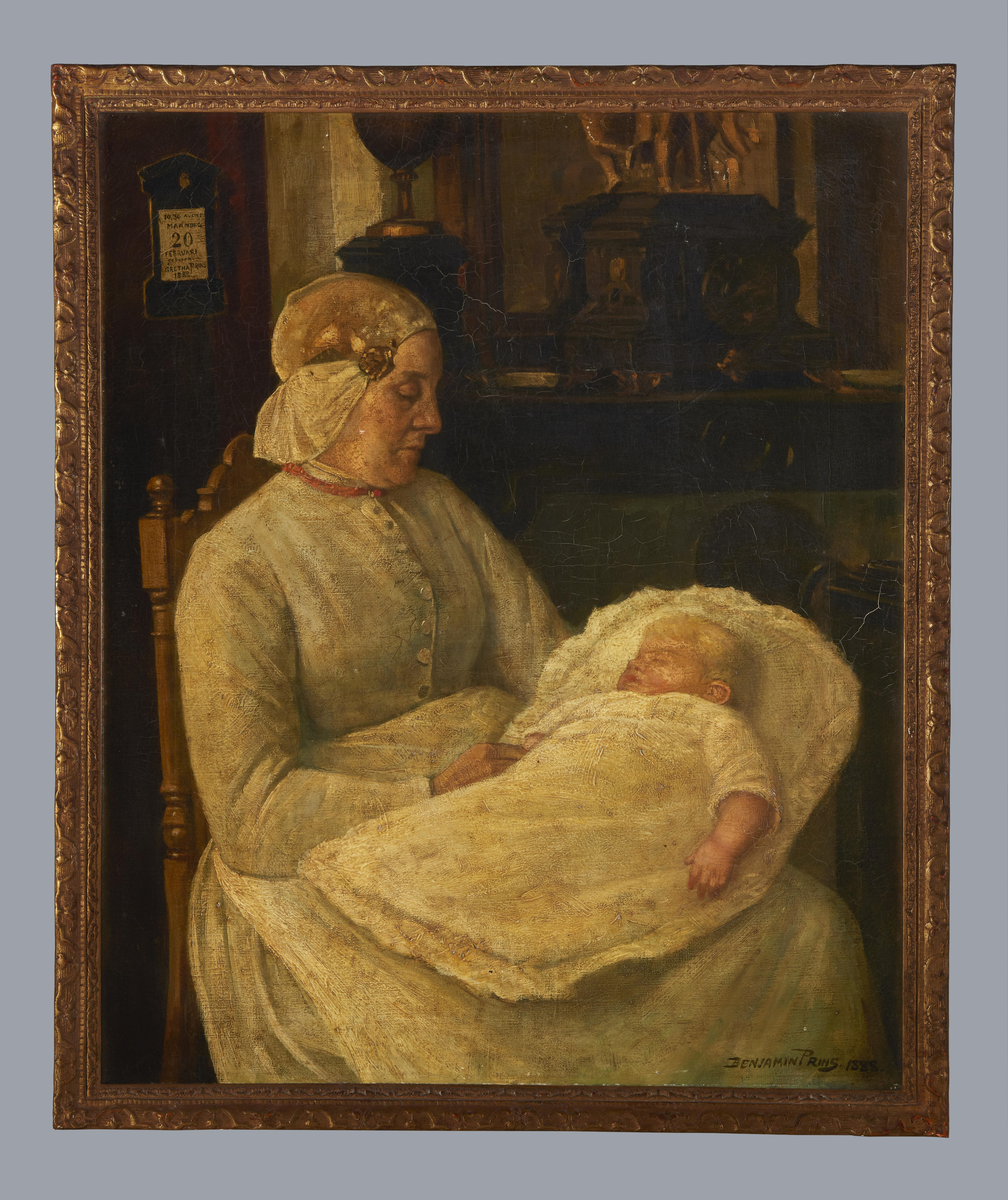 Baker in Friese dracht, met pasgeborene, 1888