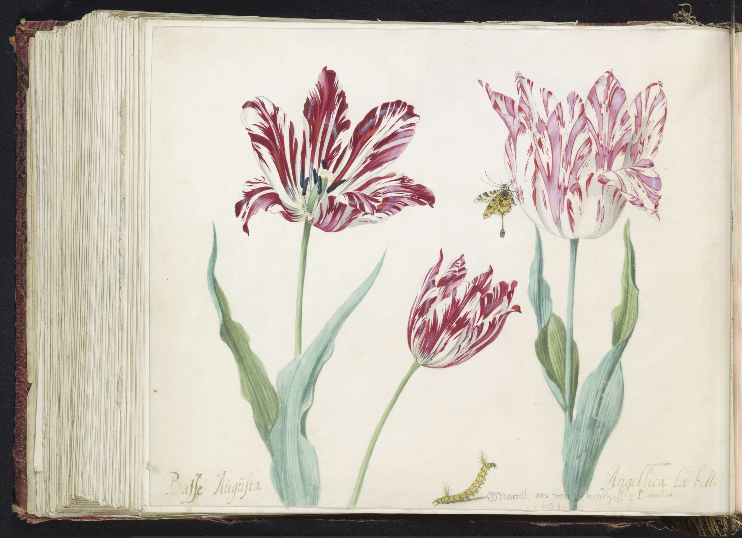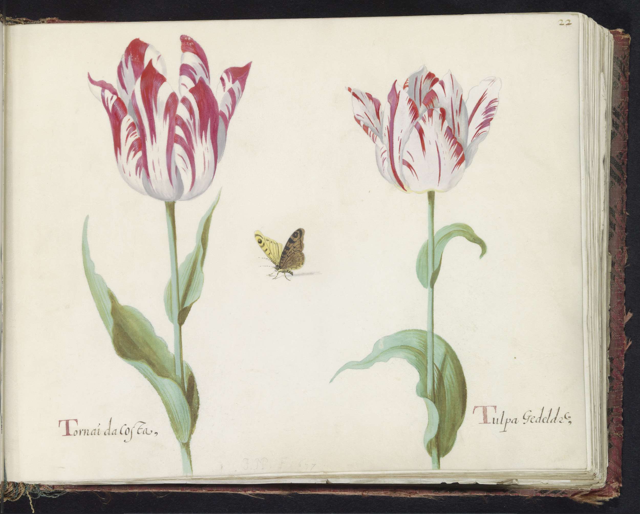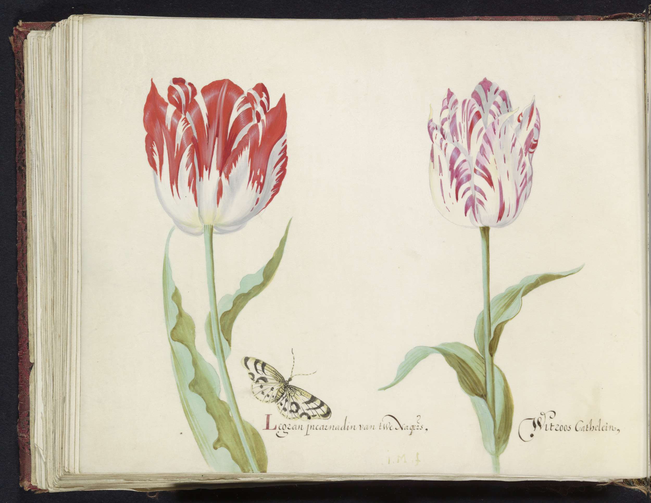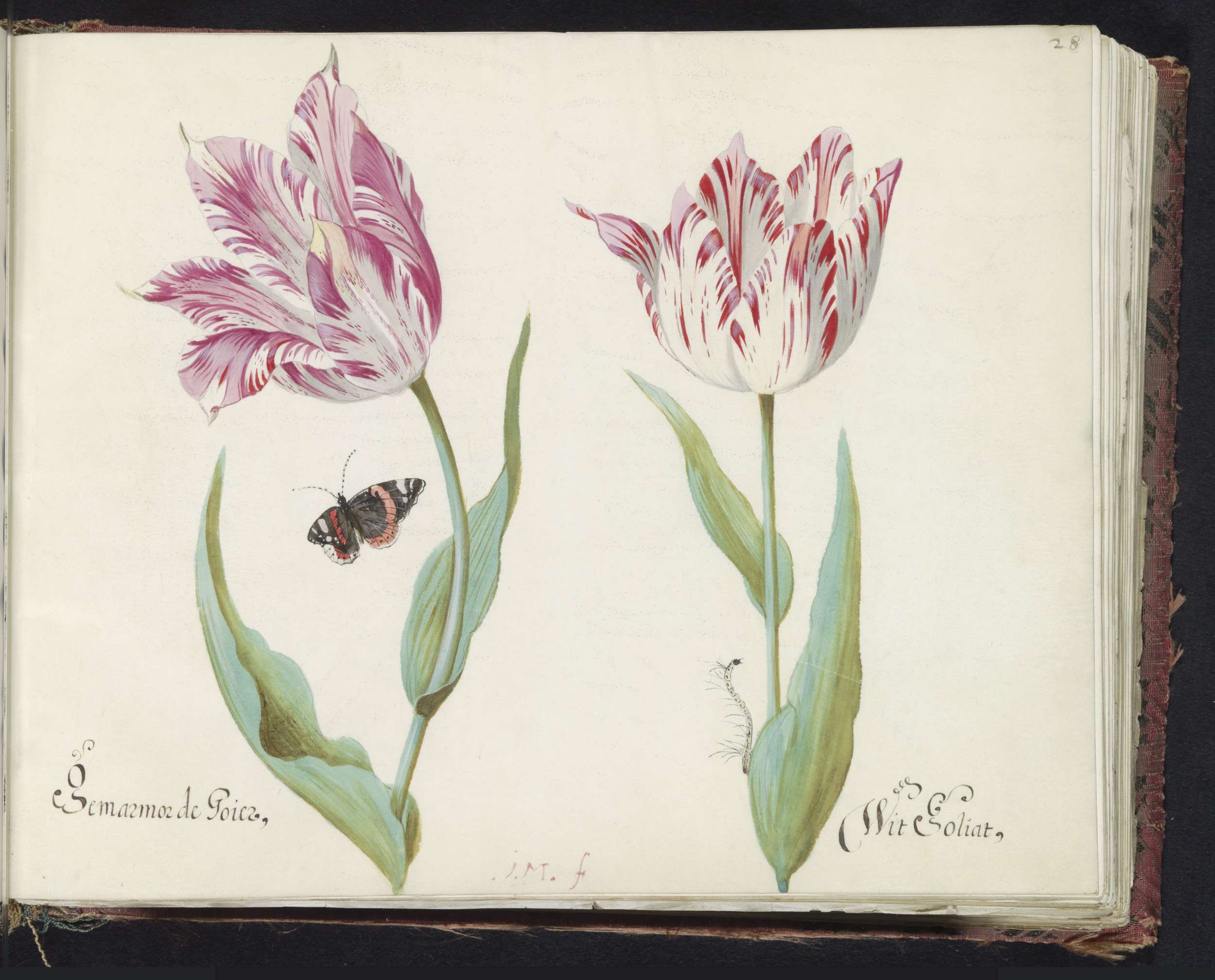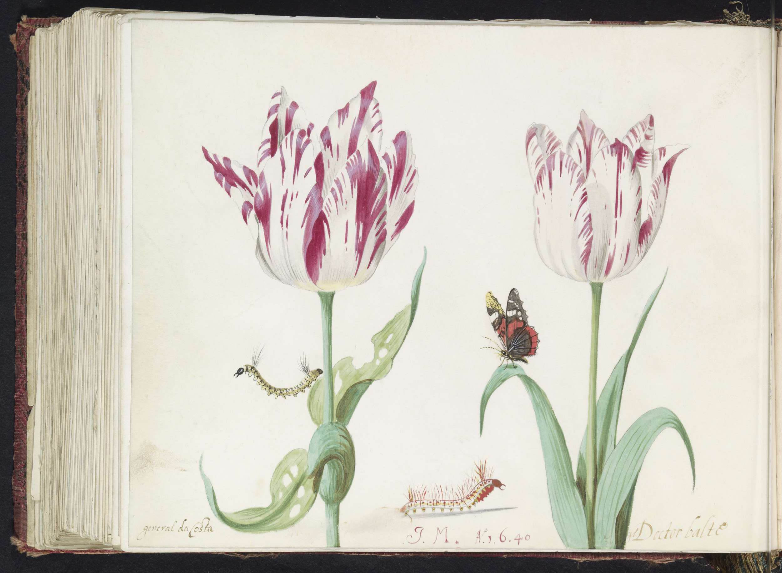 Twee tulpen met atalanta en rups