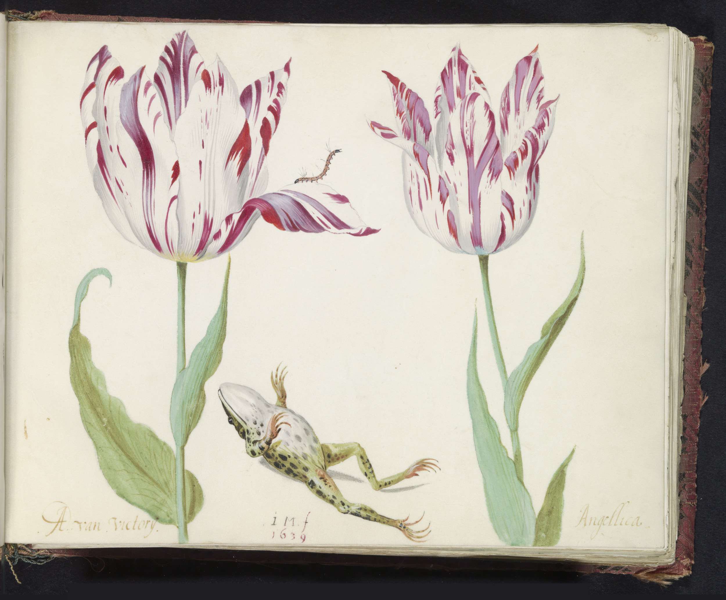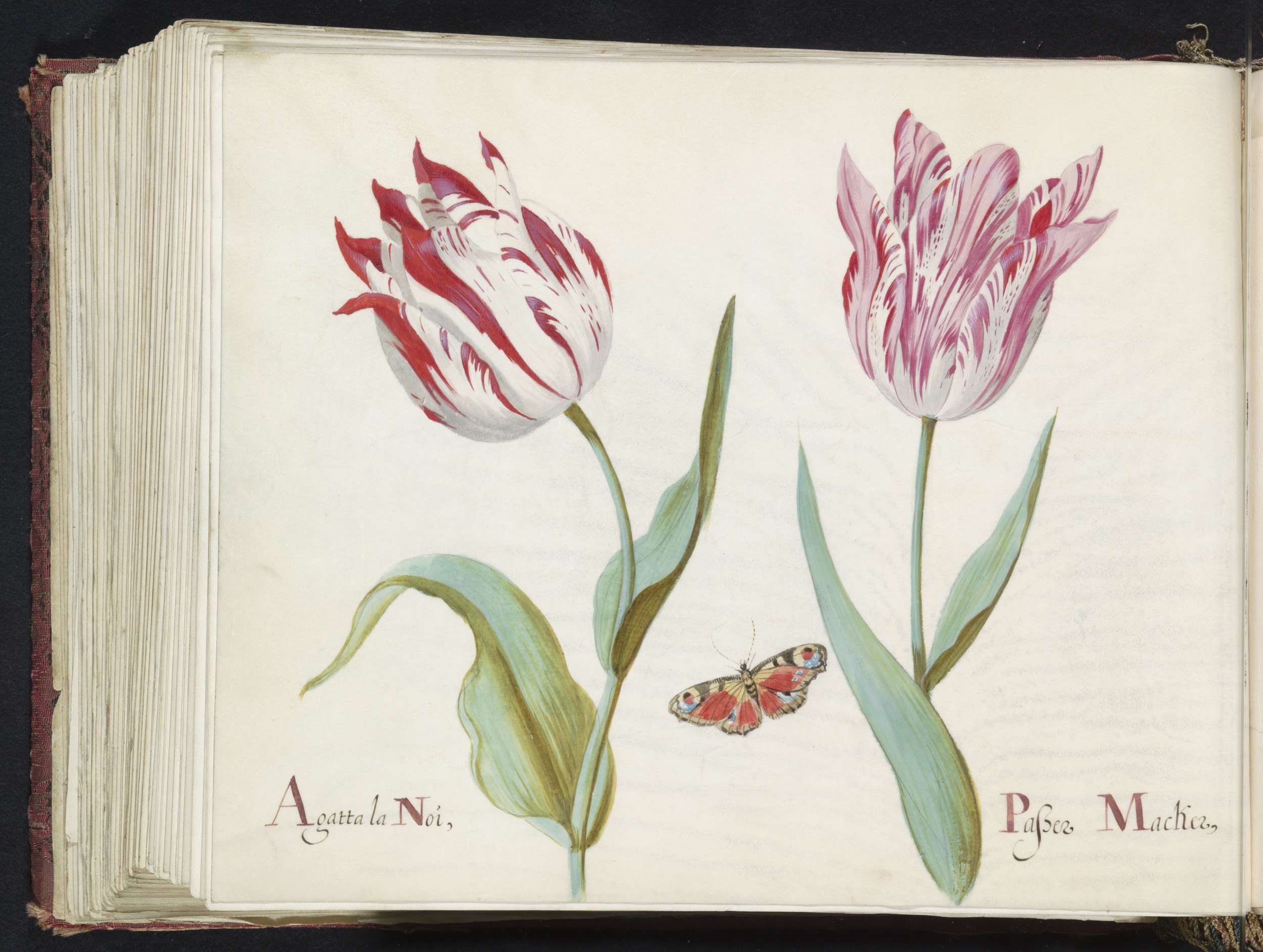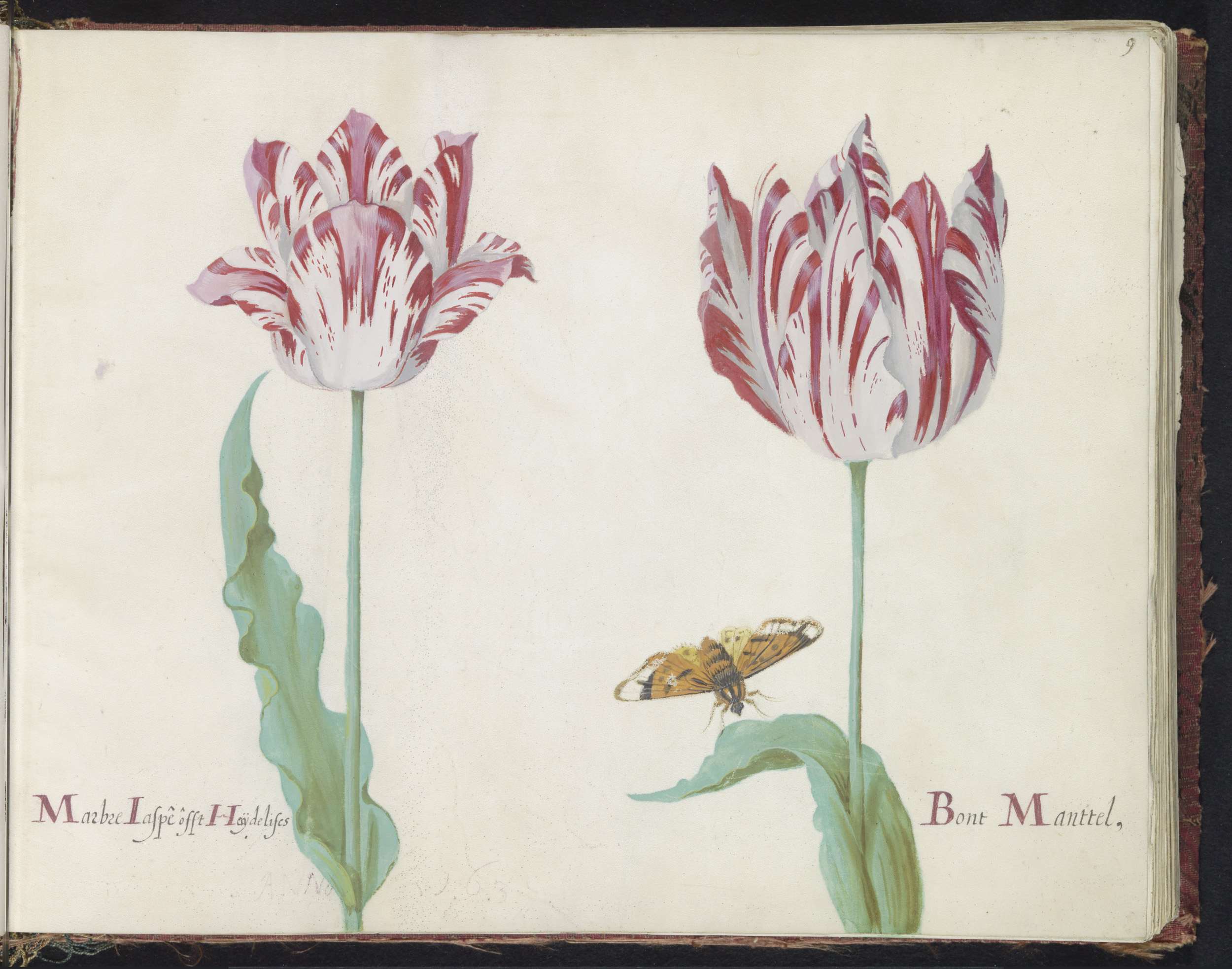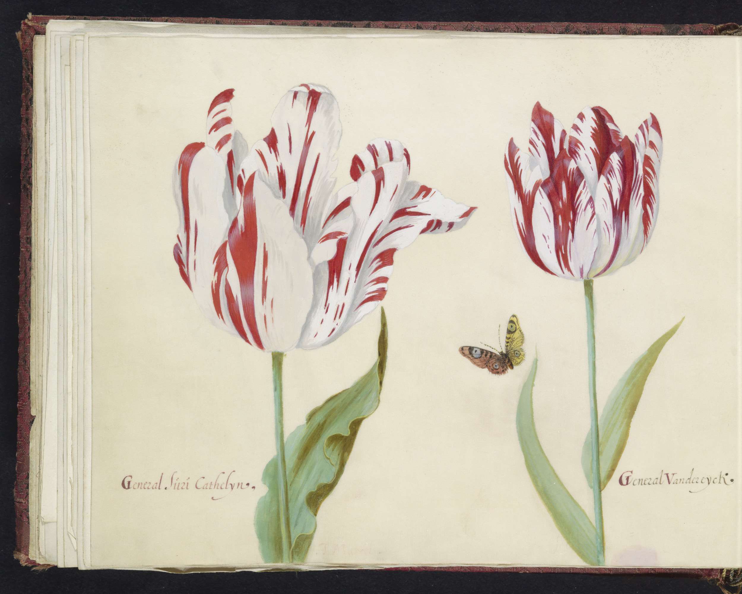 Twee tulpen met atalanta en rups