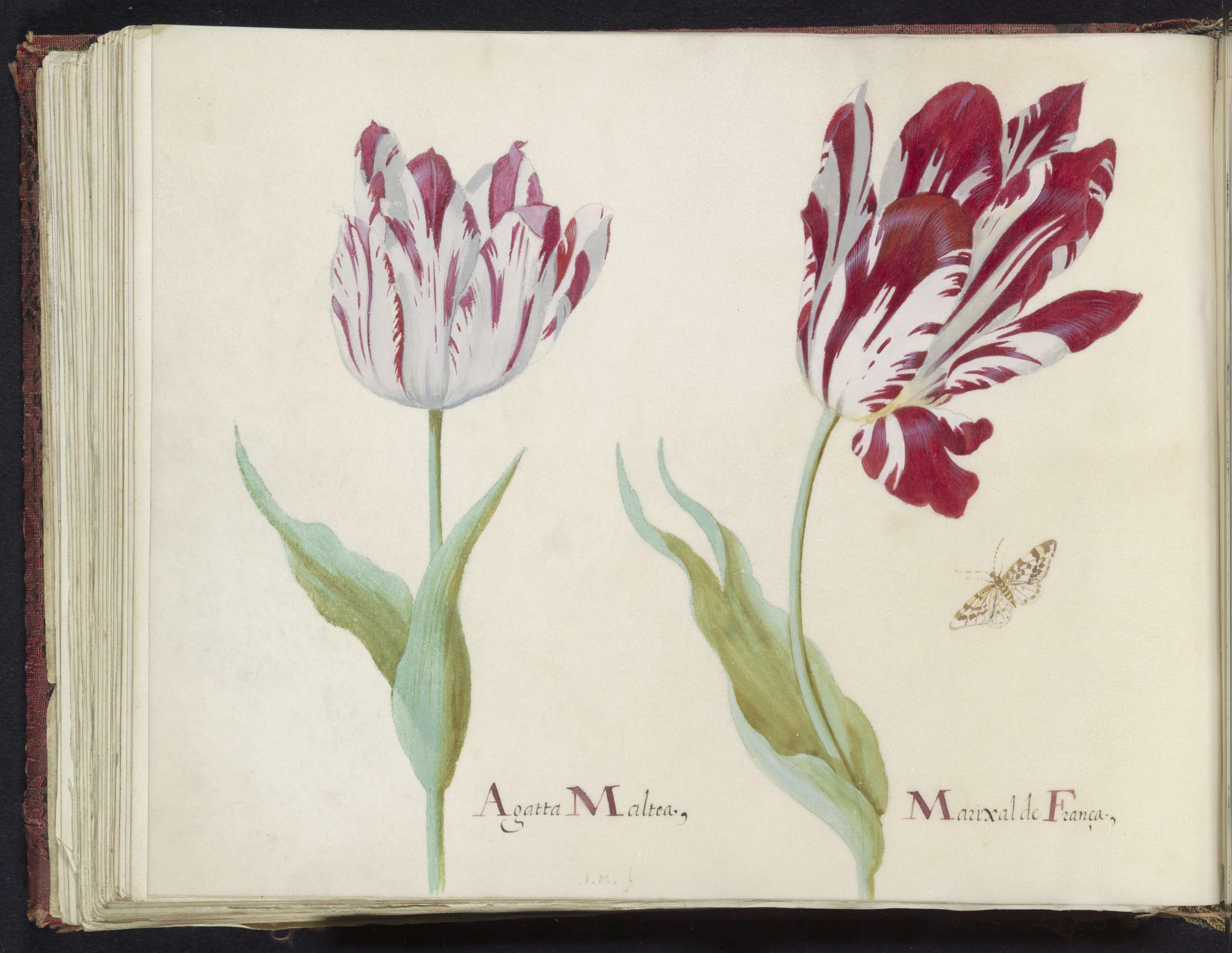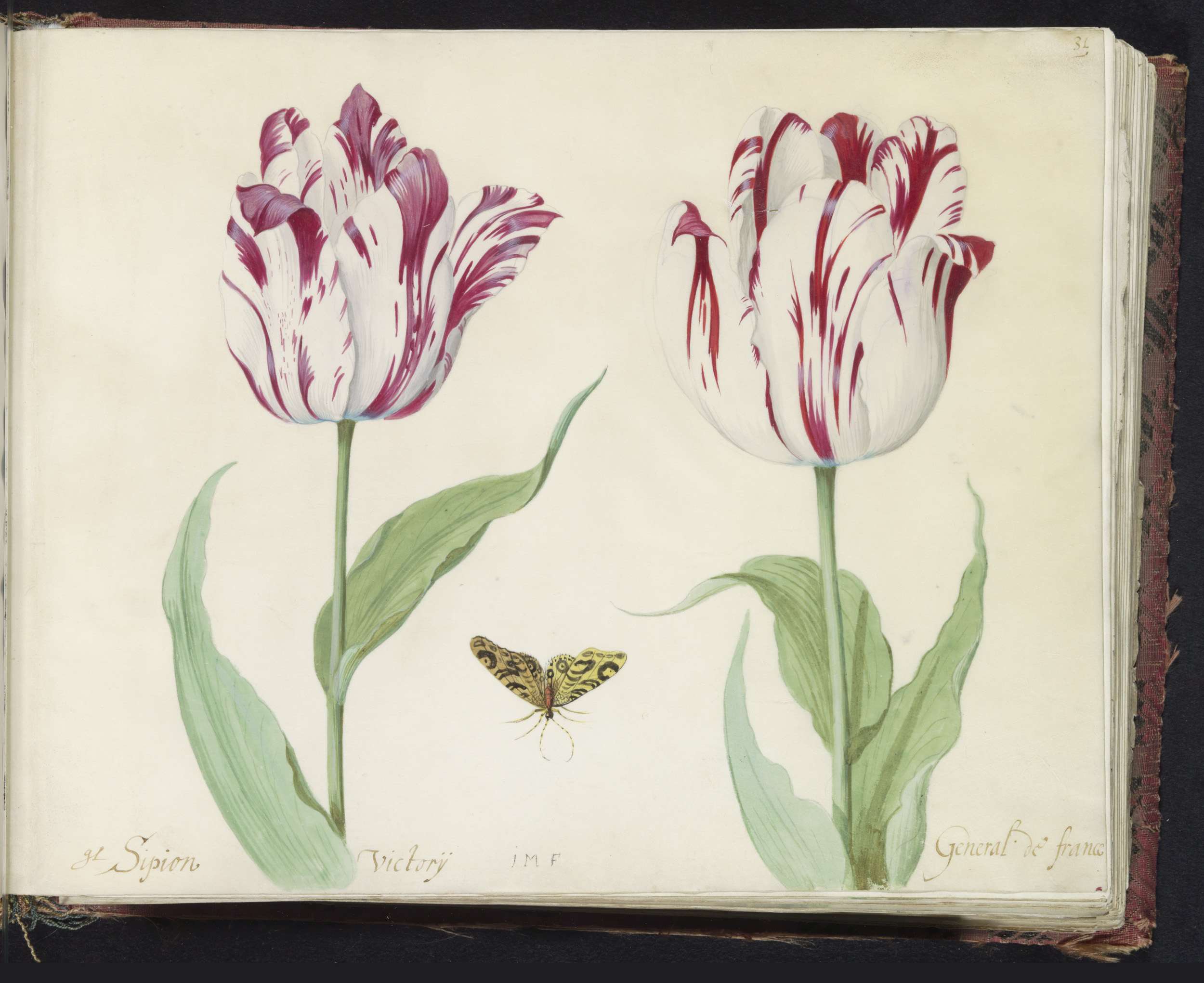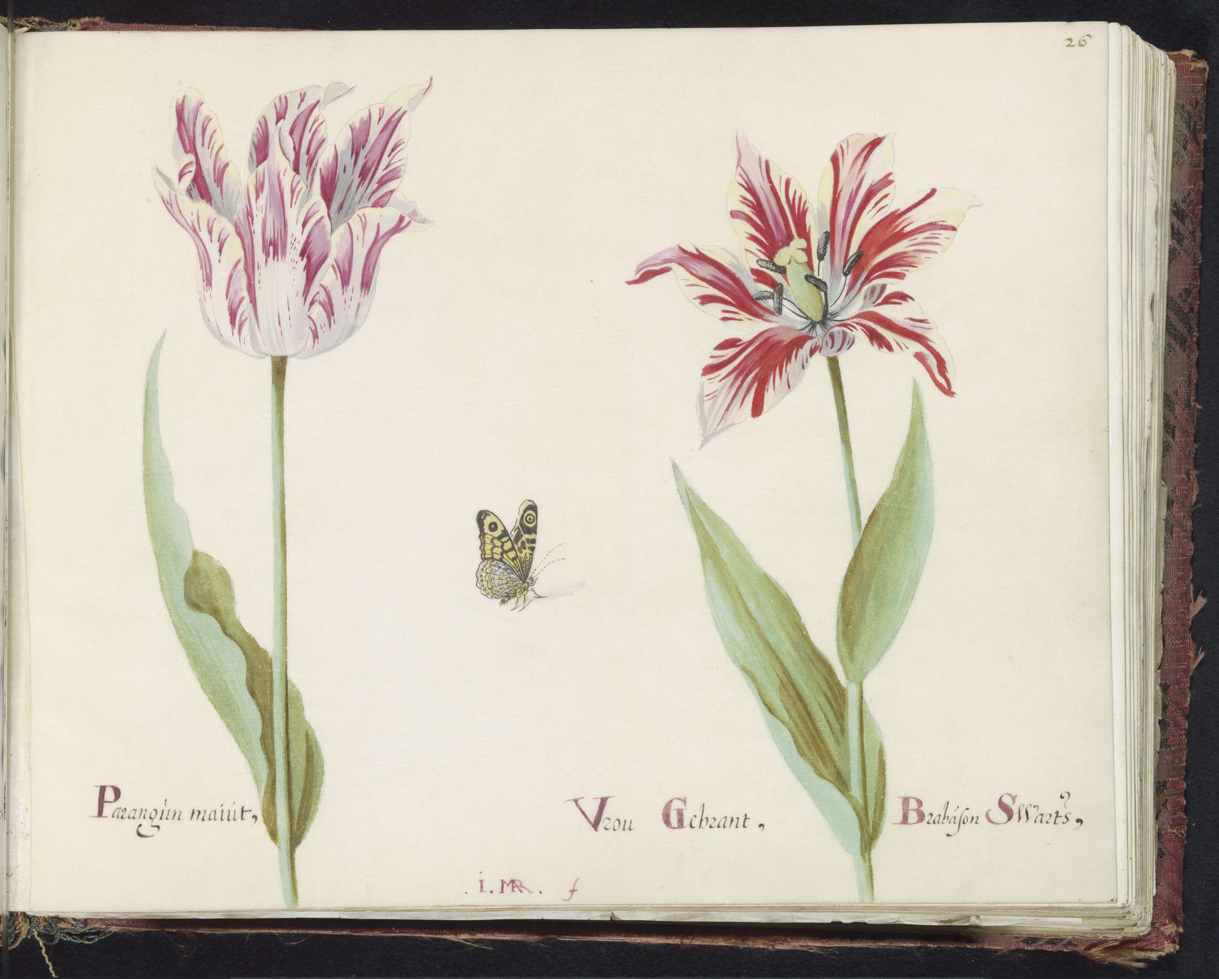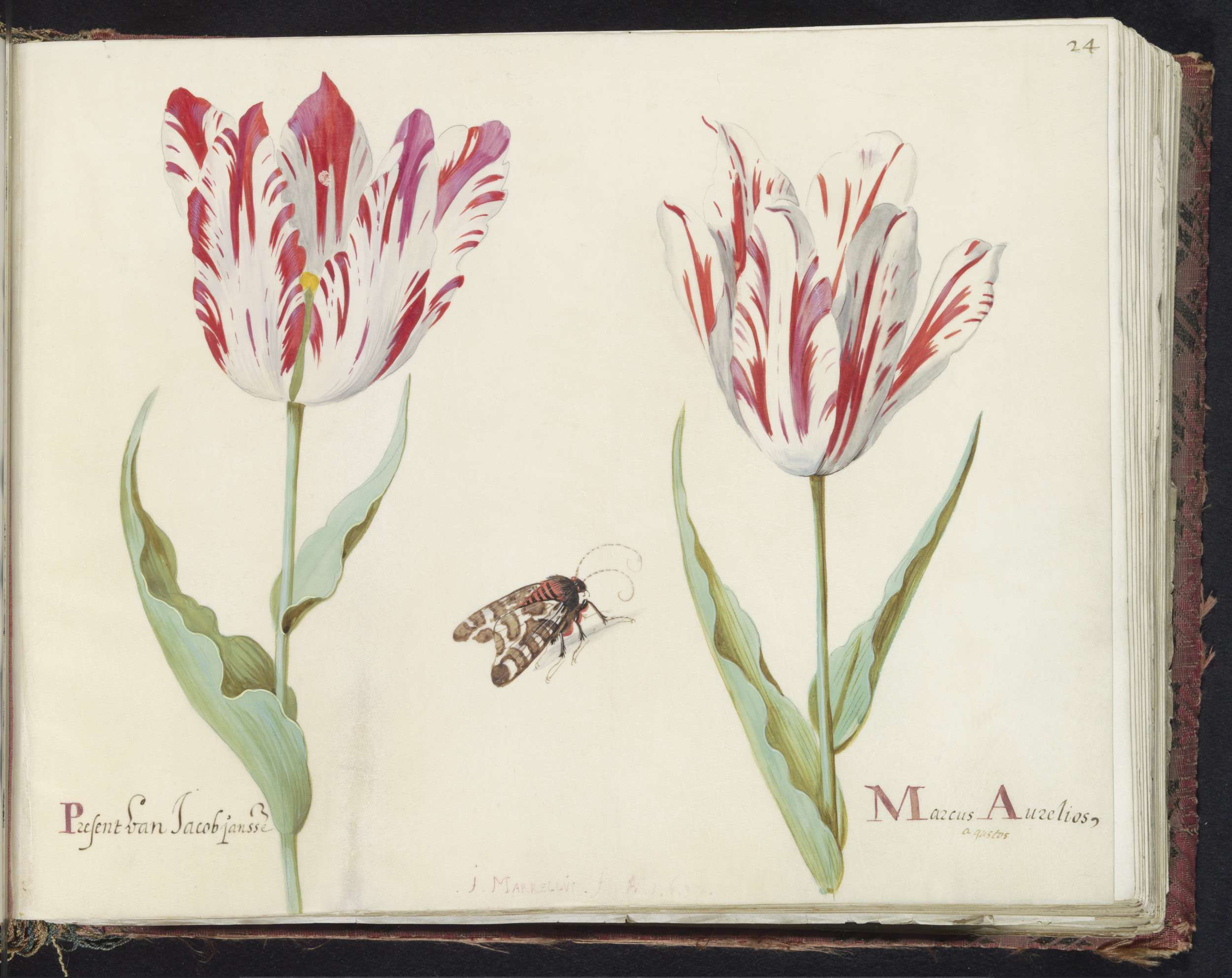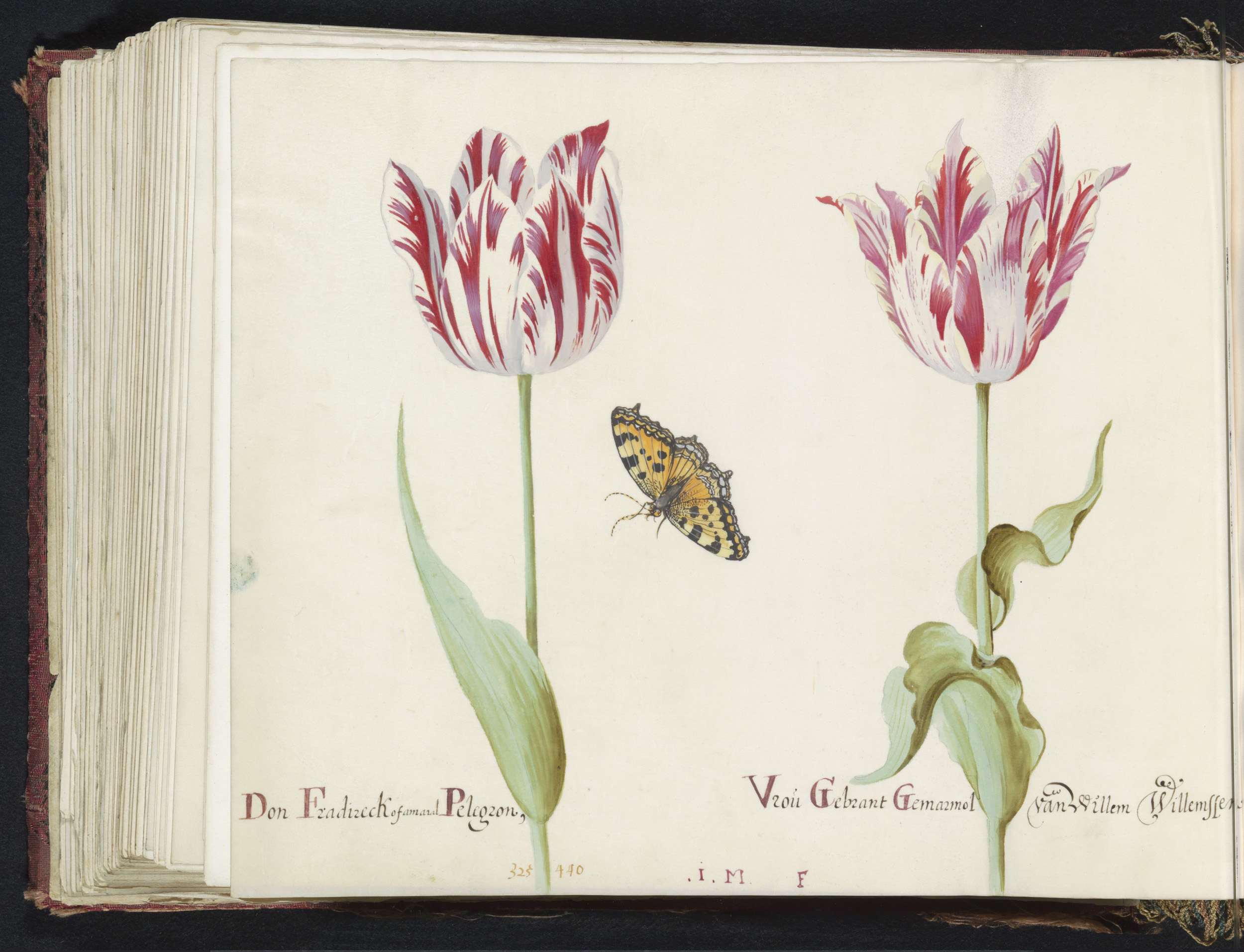 Twee tulpen met atalanta en rups