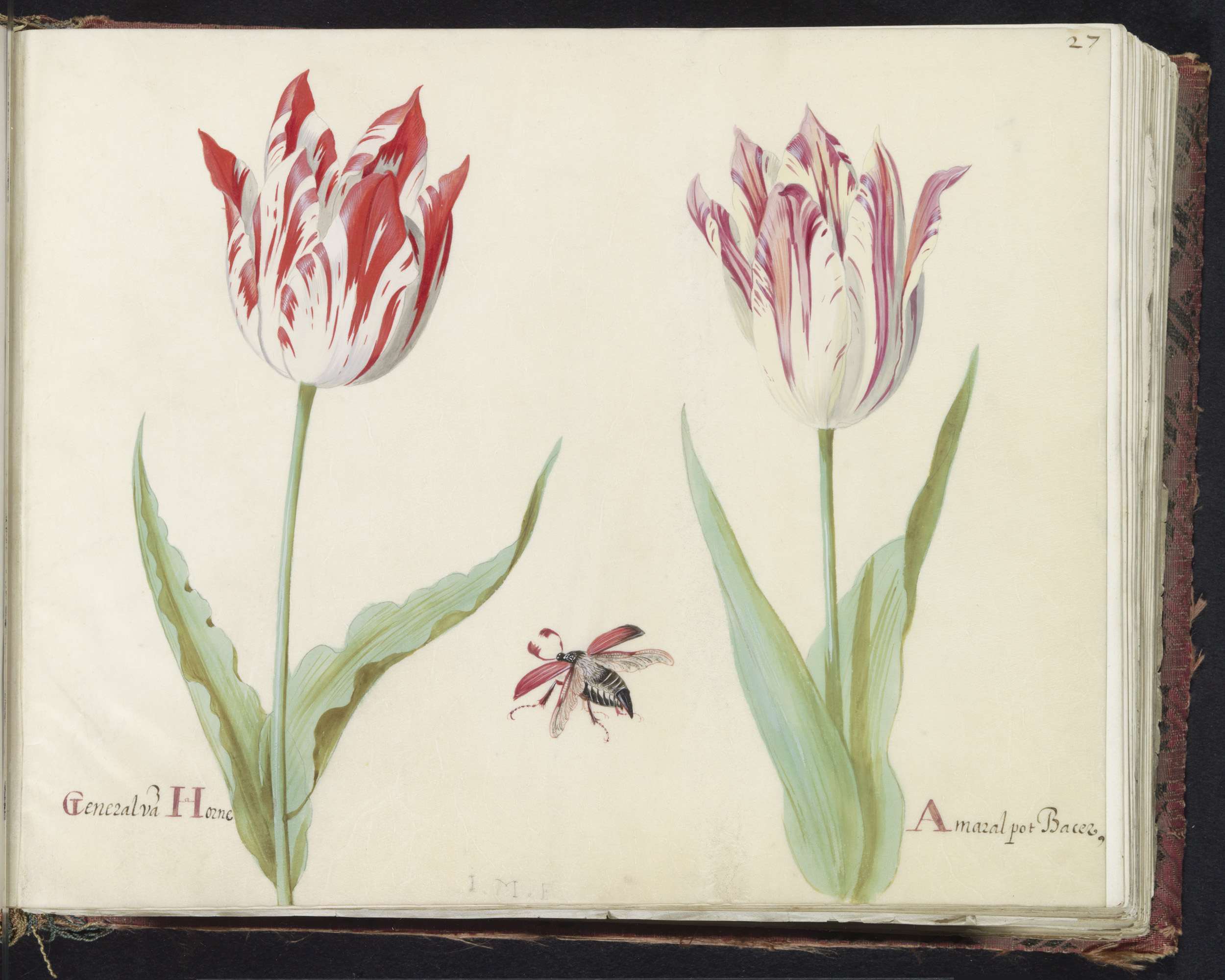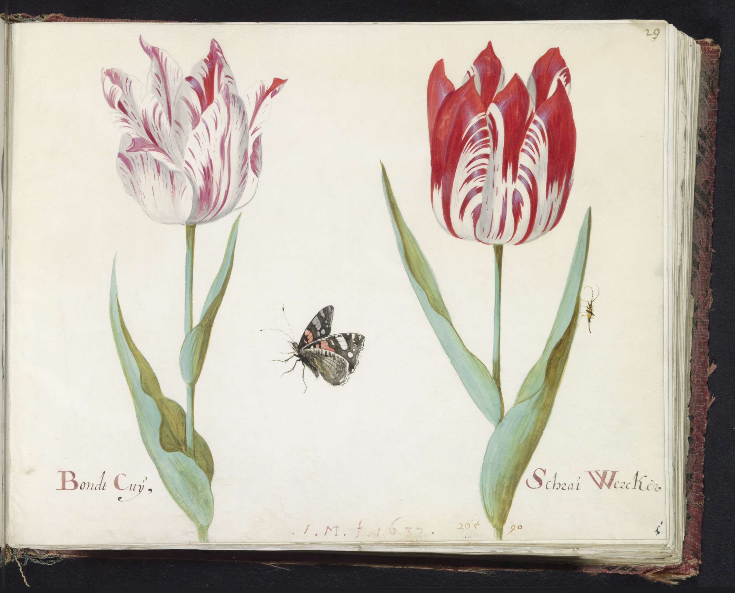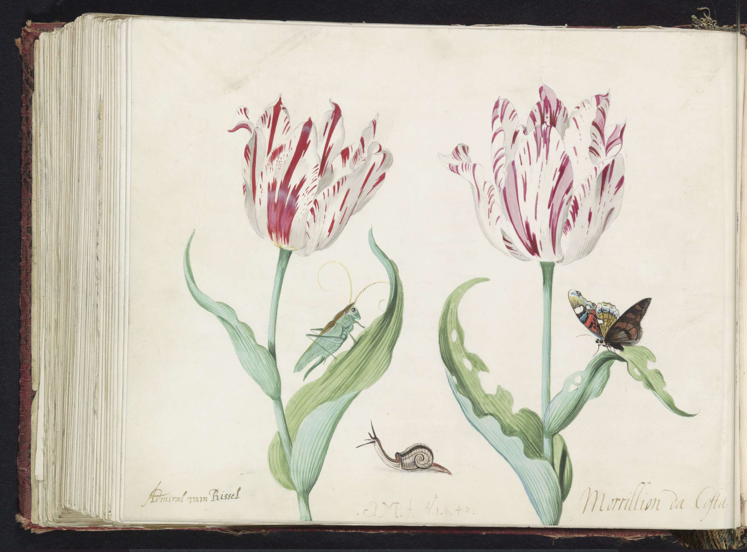Twee tulpen met atalanta en krekel