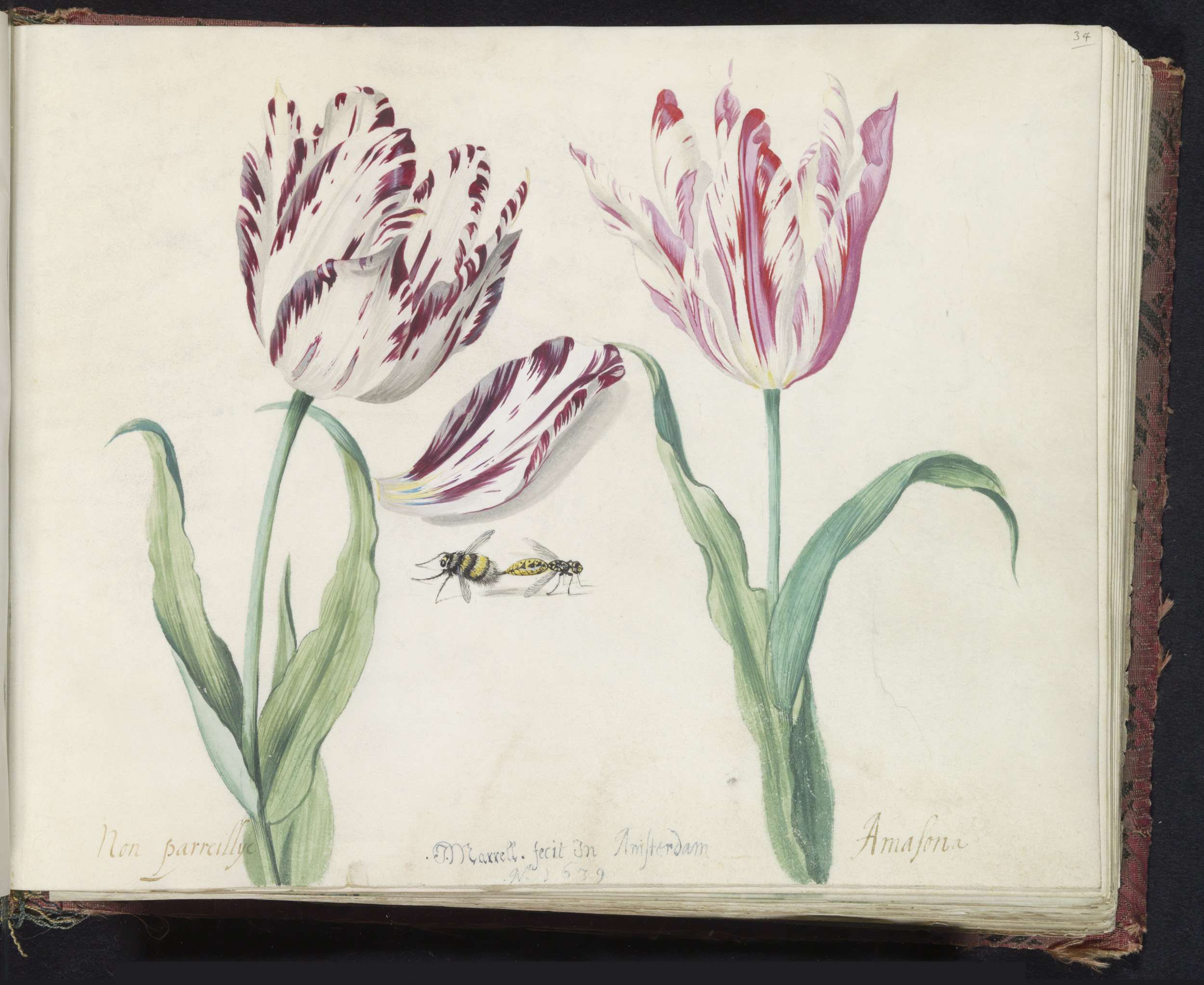 Twee tulpen met hommel en wesp