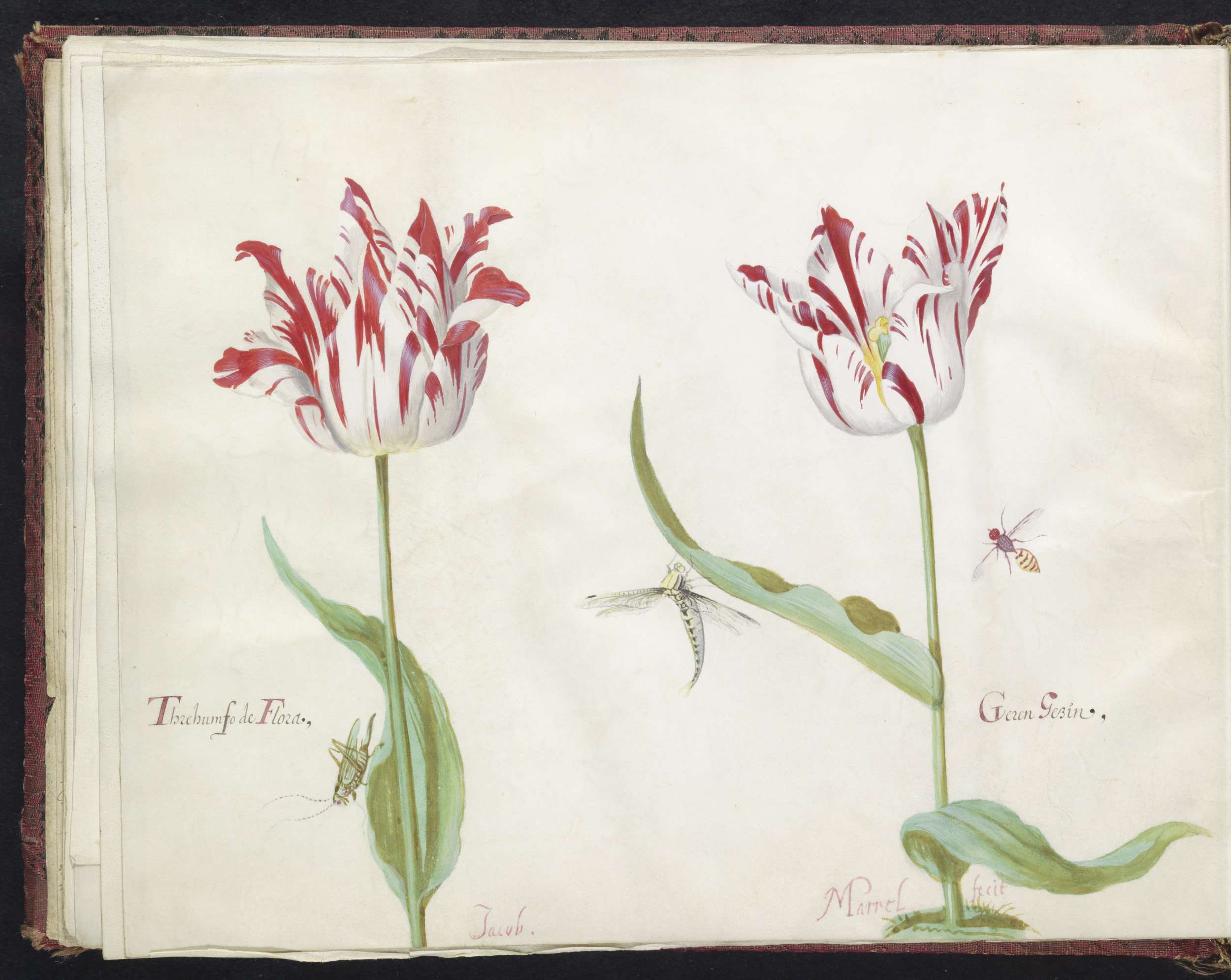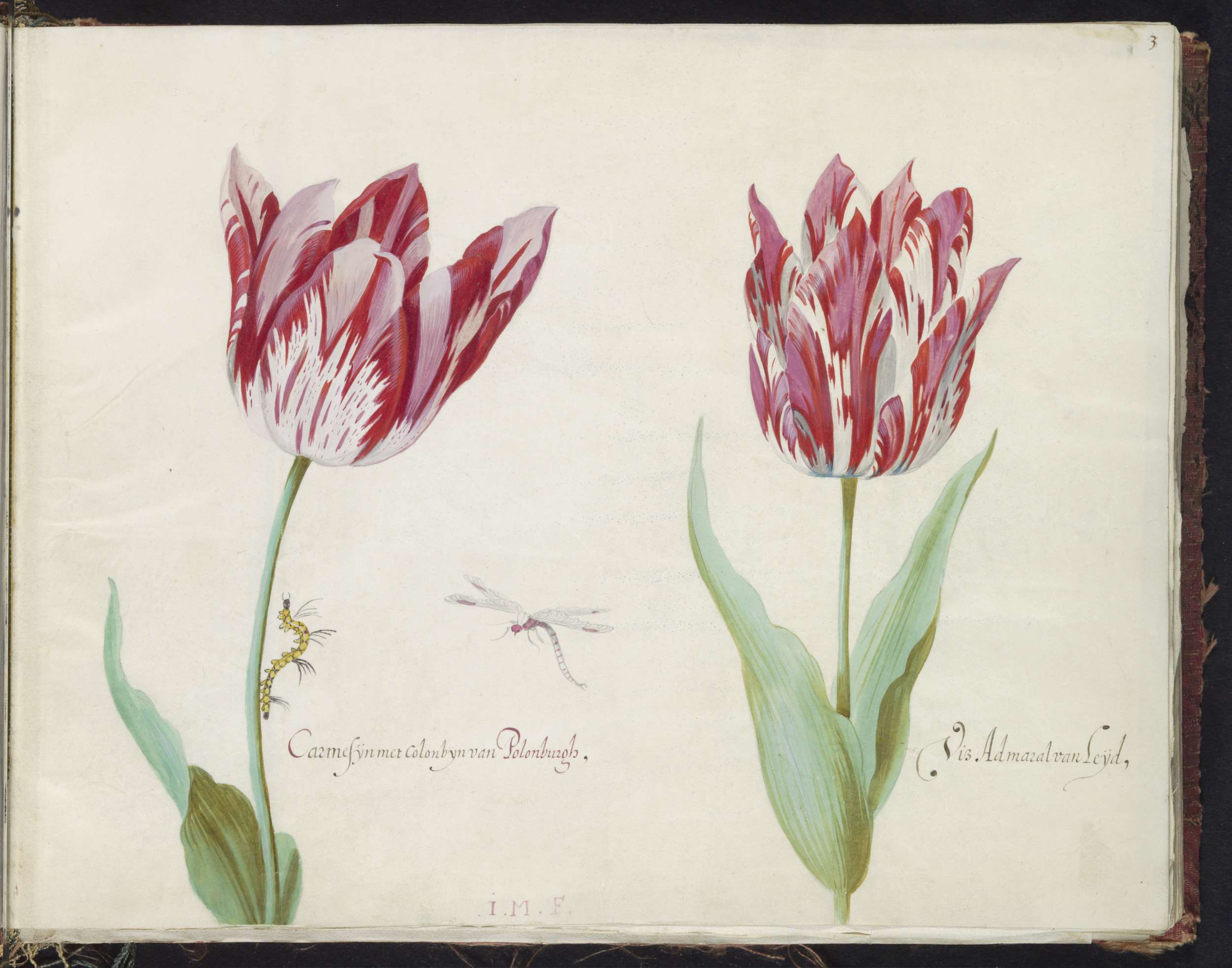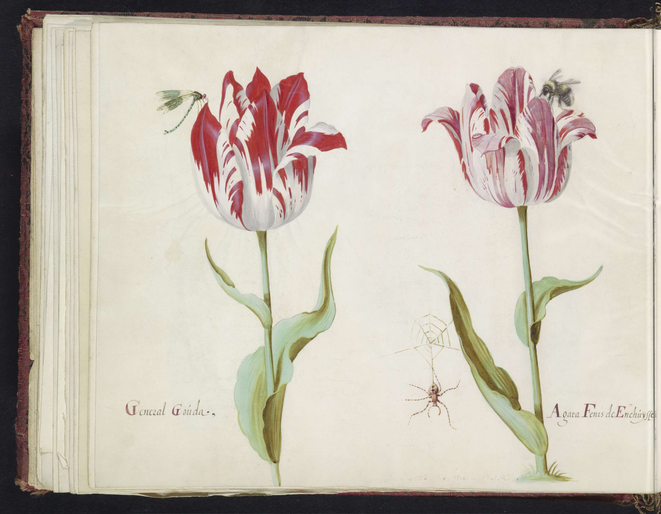 Twee tulpen met rups en waterjuffer
