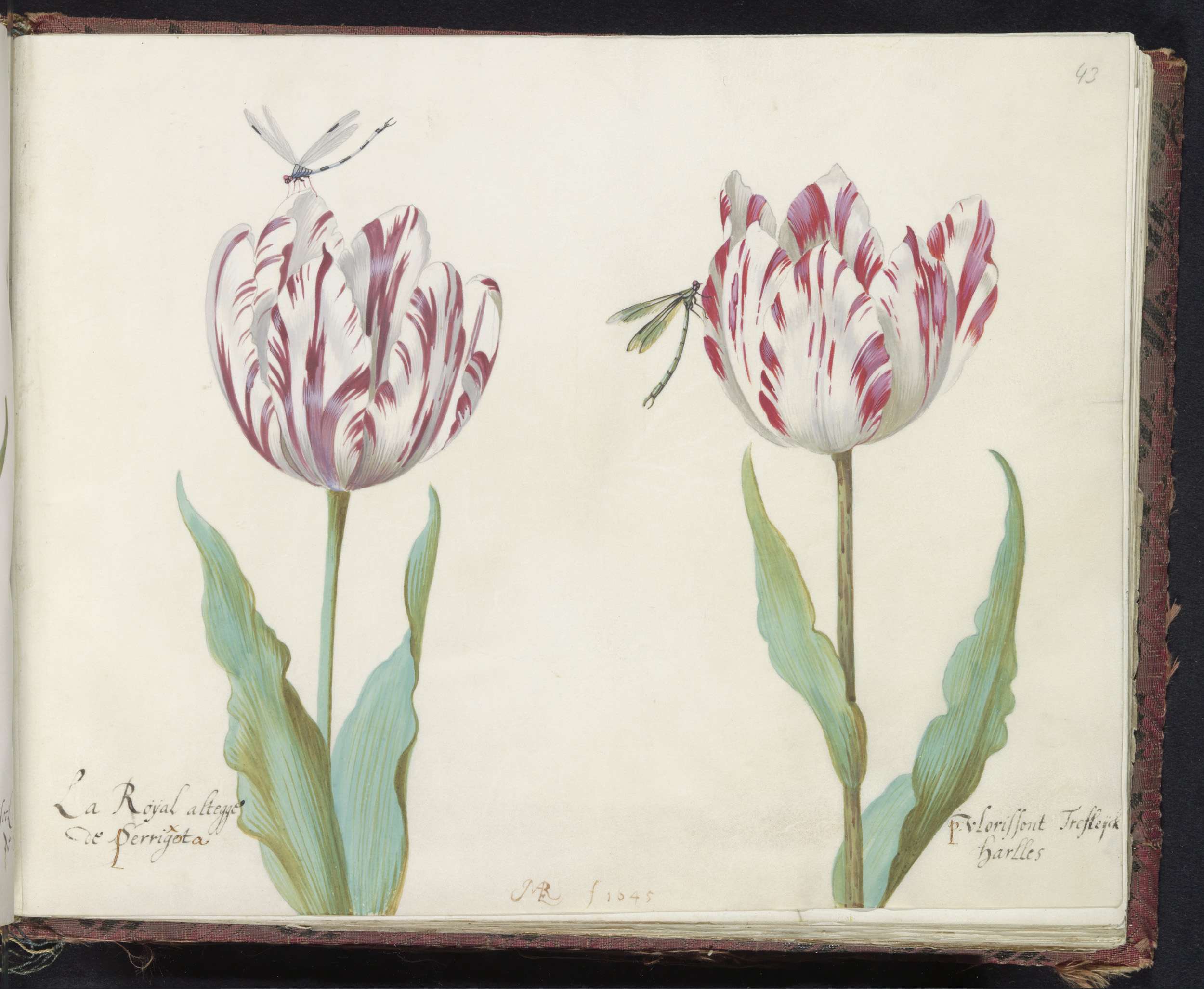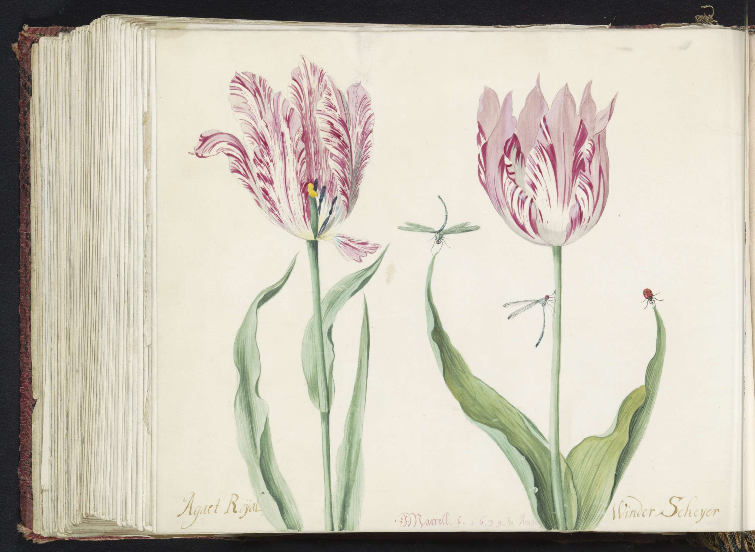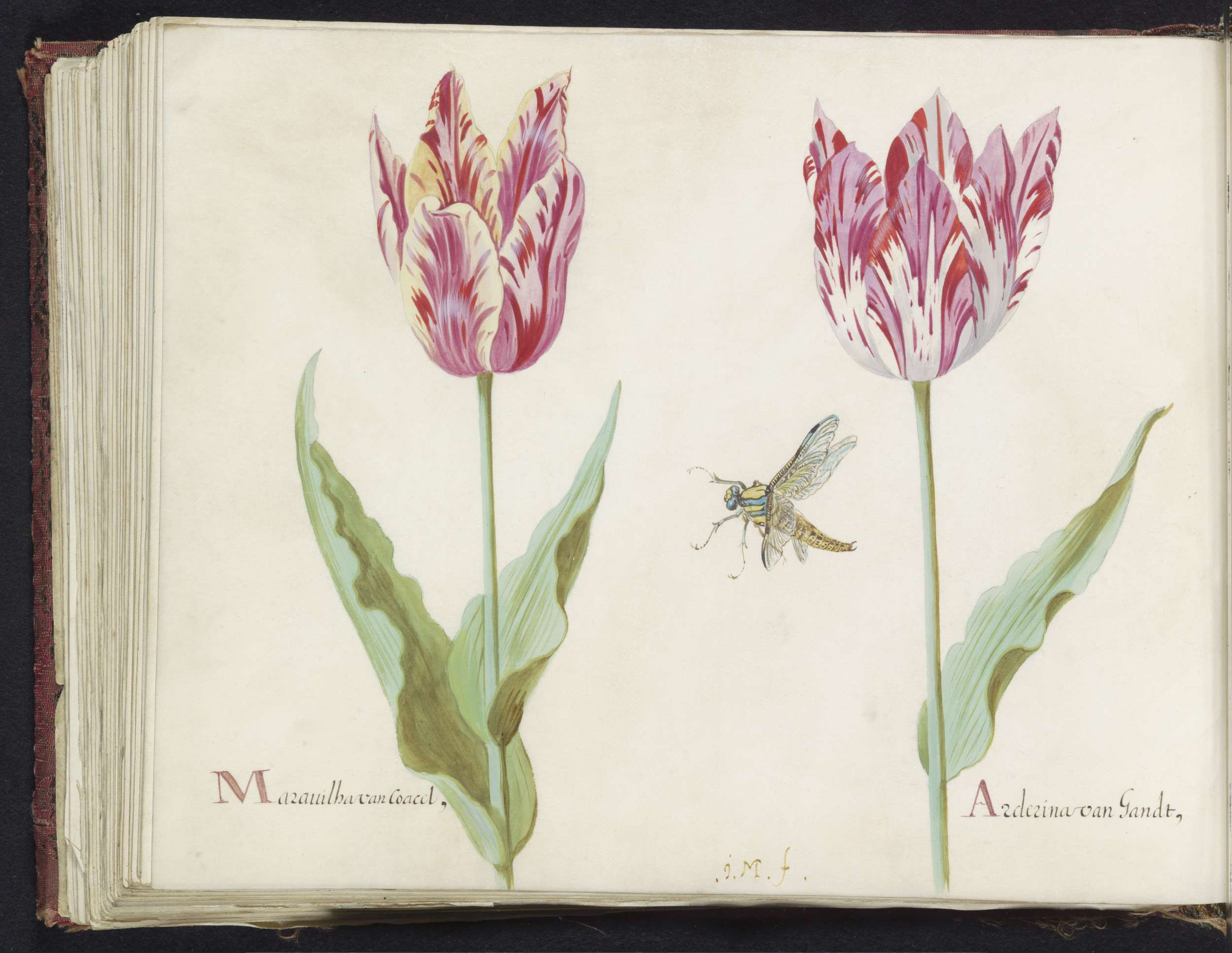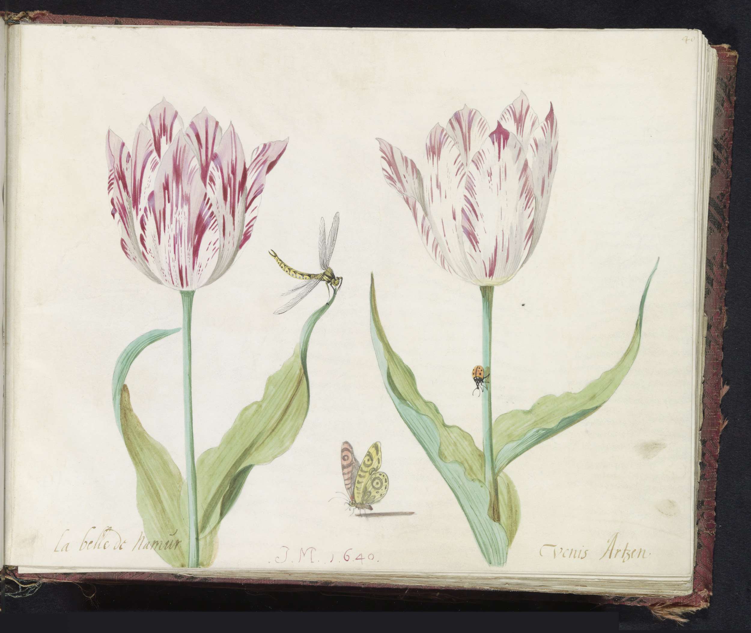 Twee tulpen met rups en waterjuffer