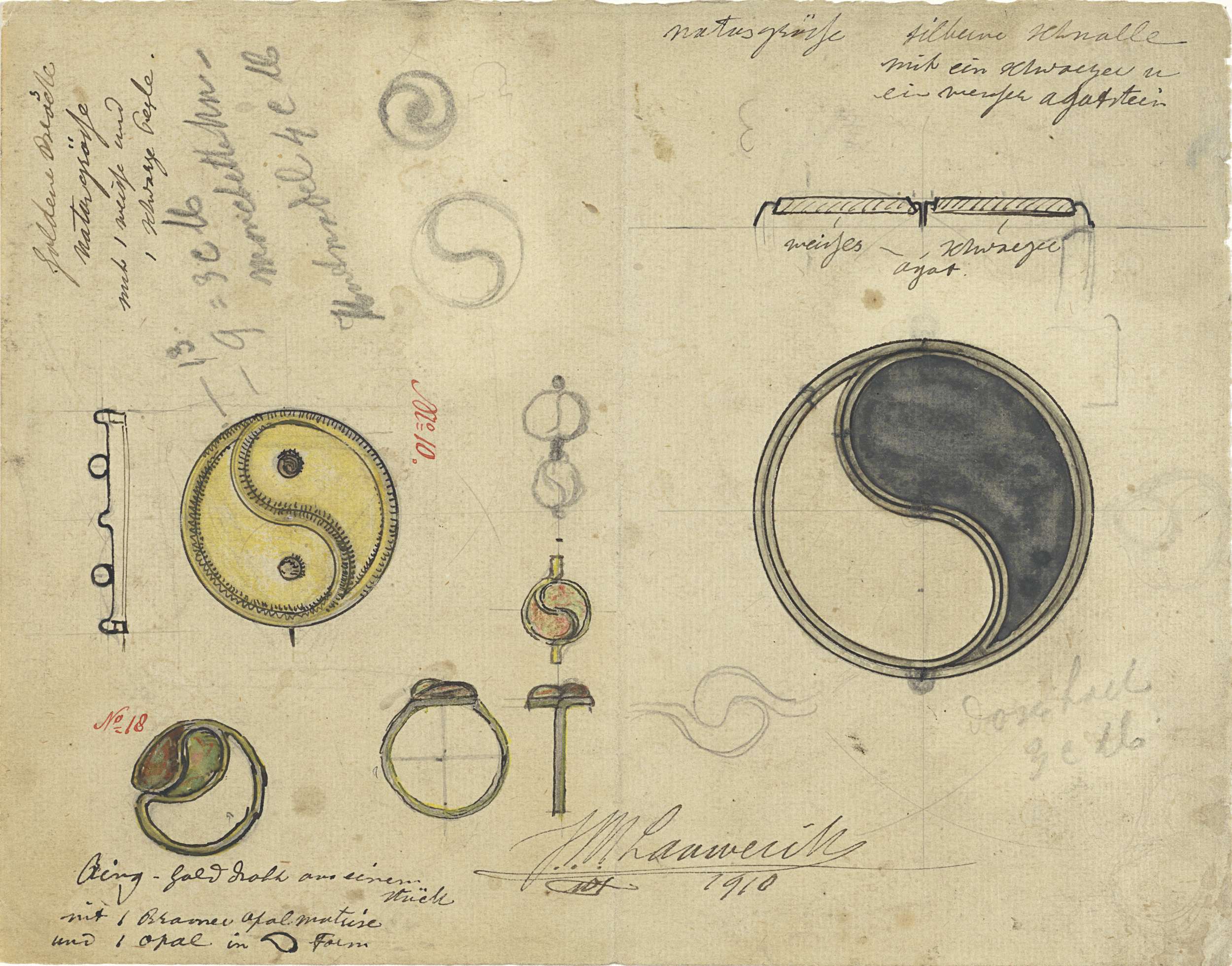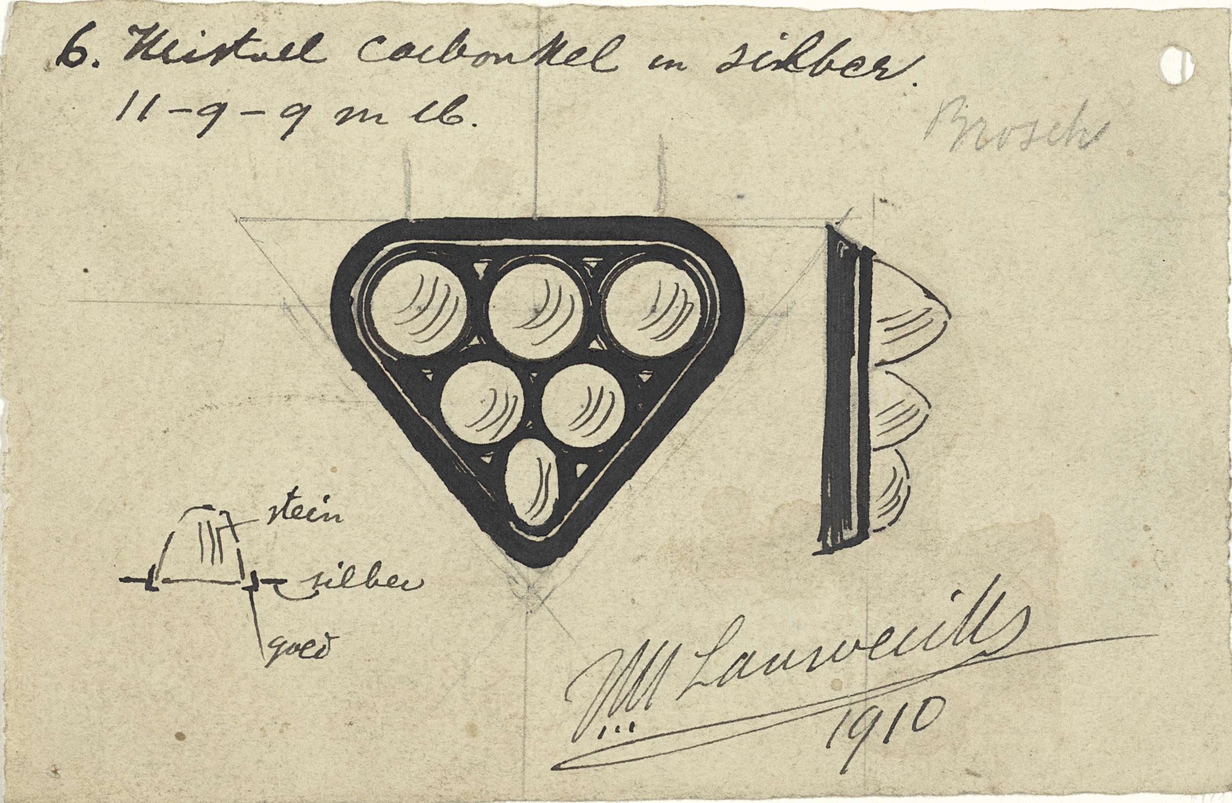 Ontwerpen voor een broche, ring en gesp