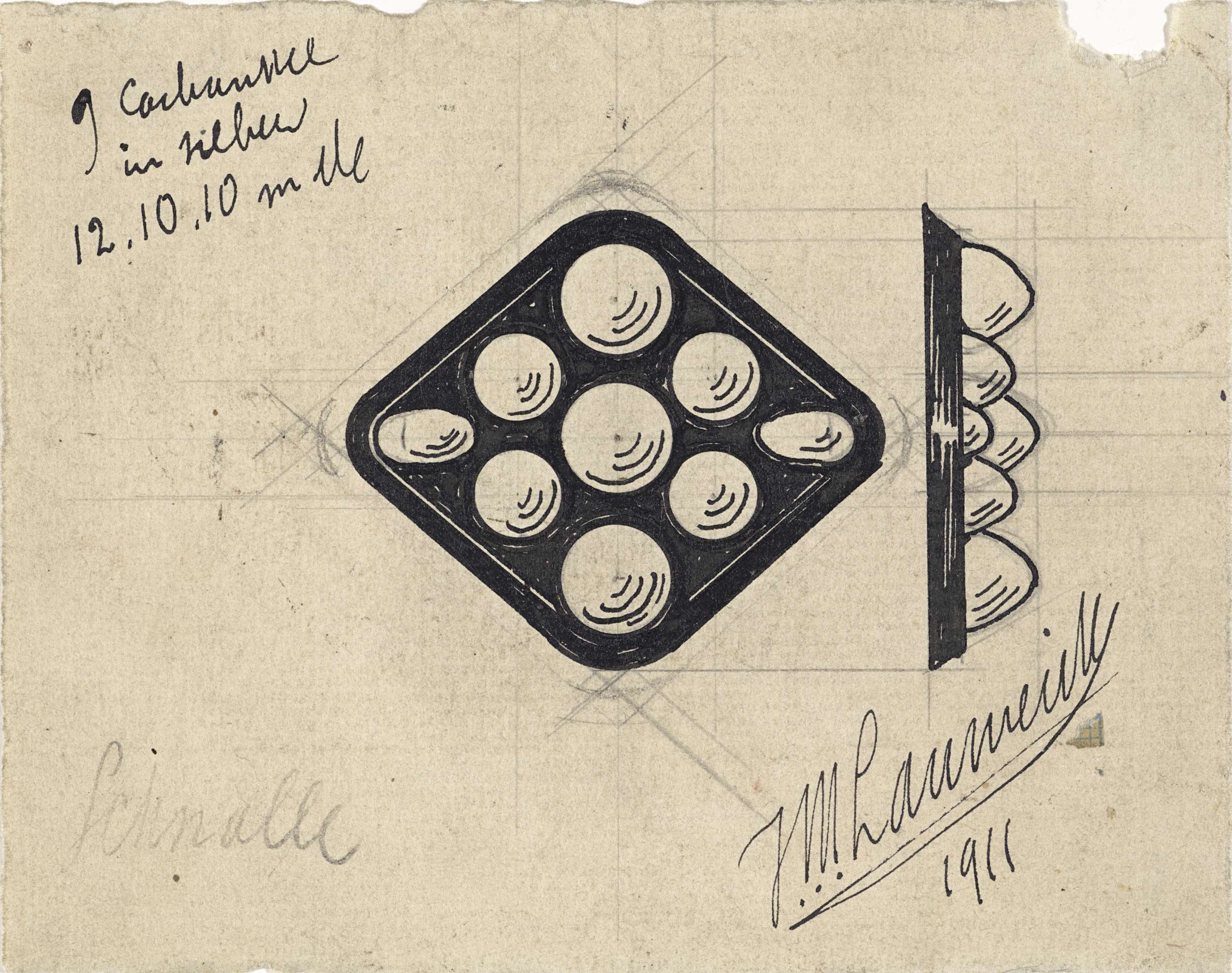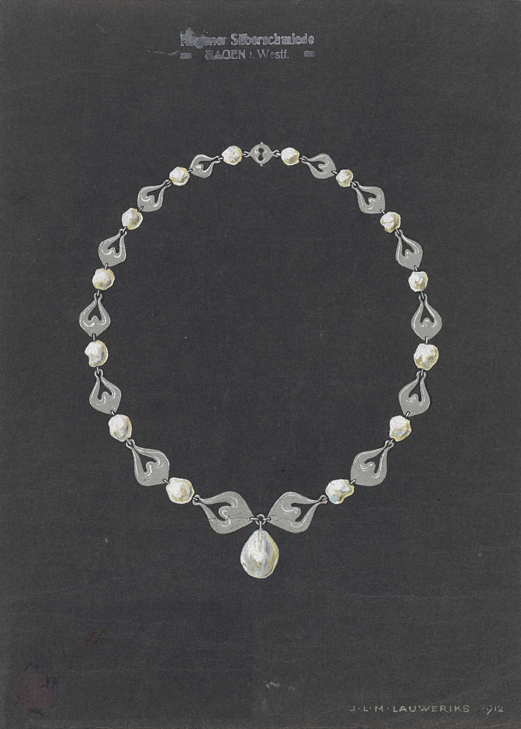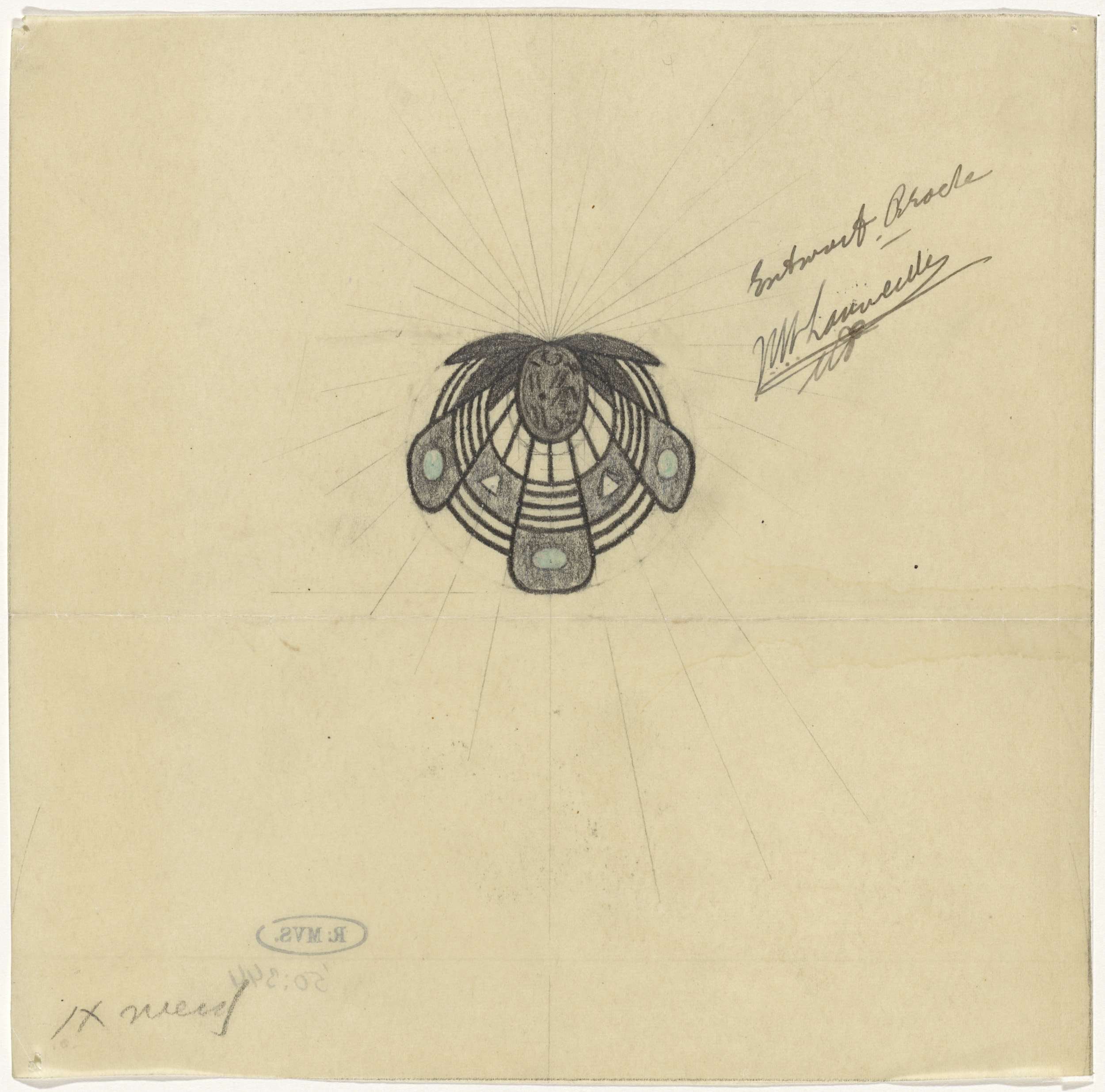 Ontwerp voor een sieraad met de initialen H.S.