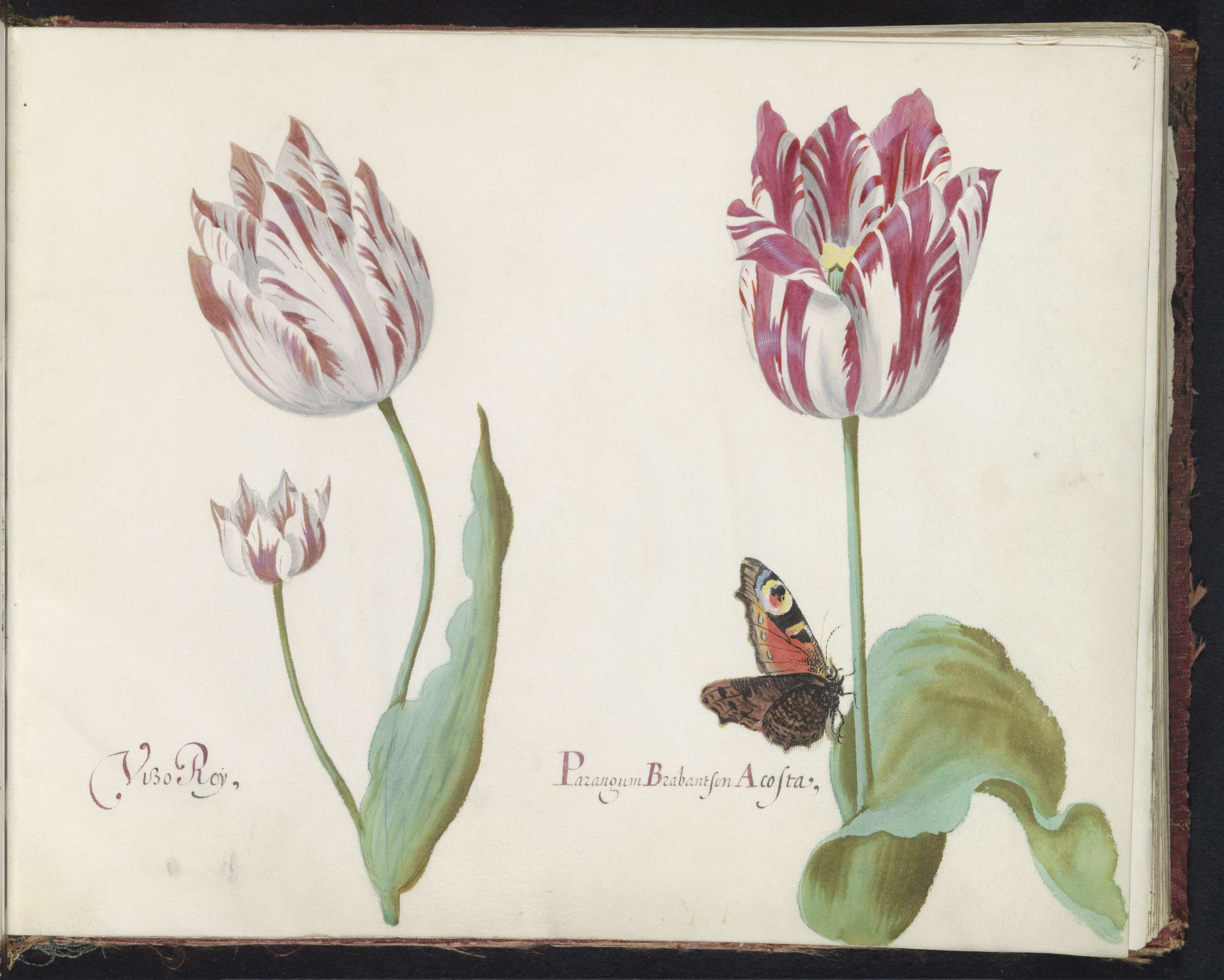 Twee tulpen met dagpauwooog