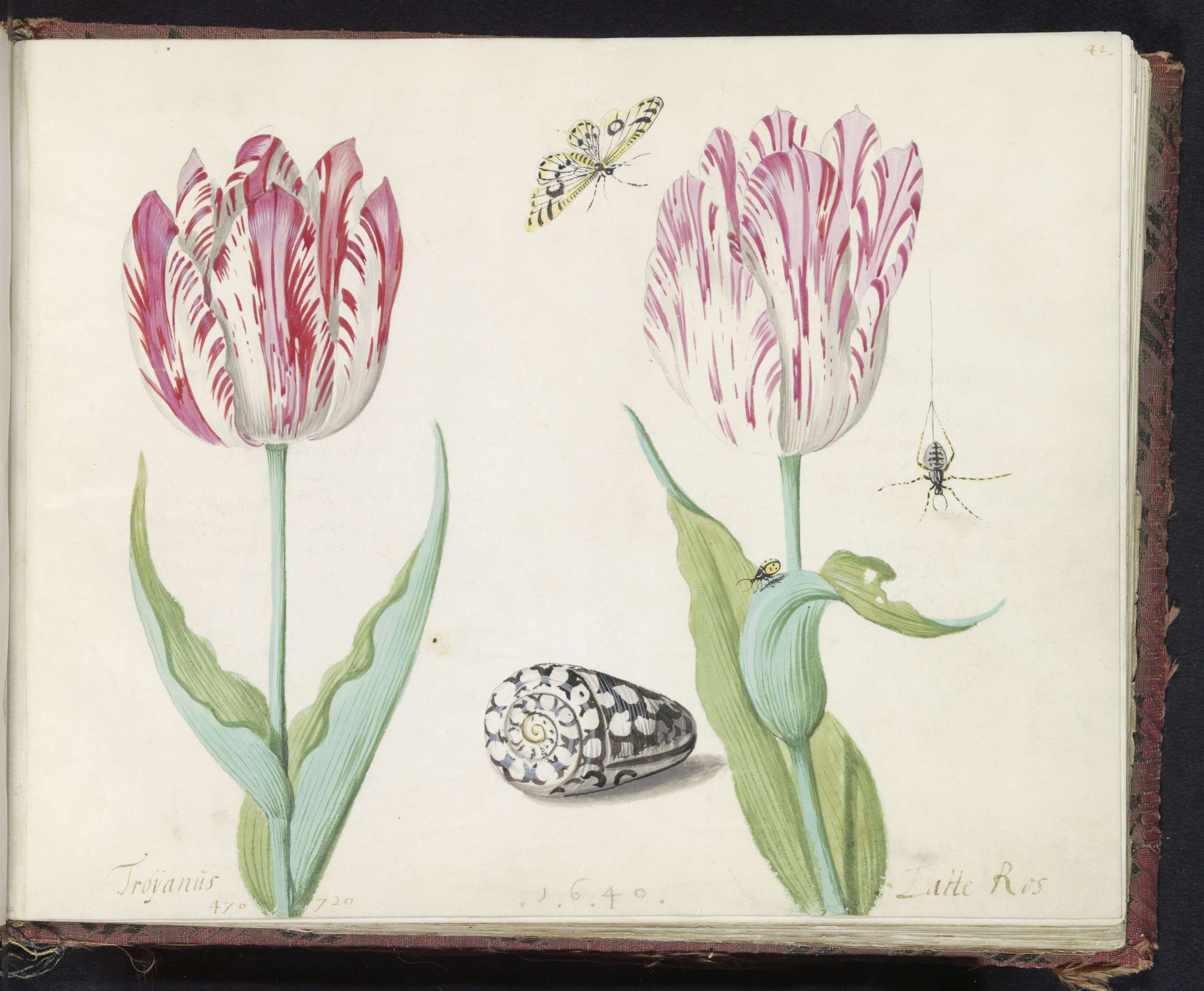 Twee tulpen met schelp, vlinder, spin en lieveheersb...