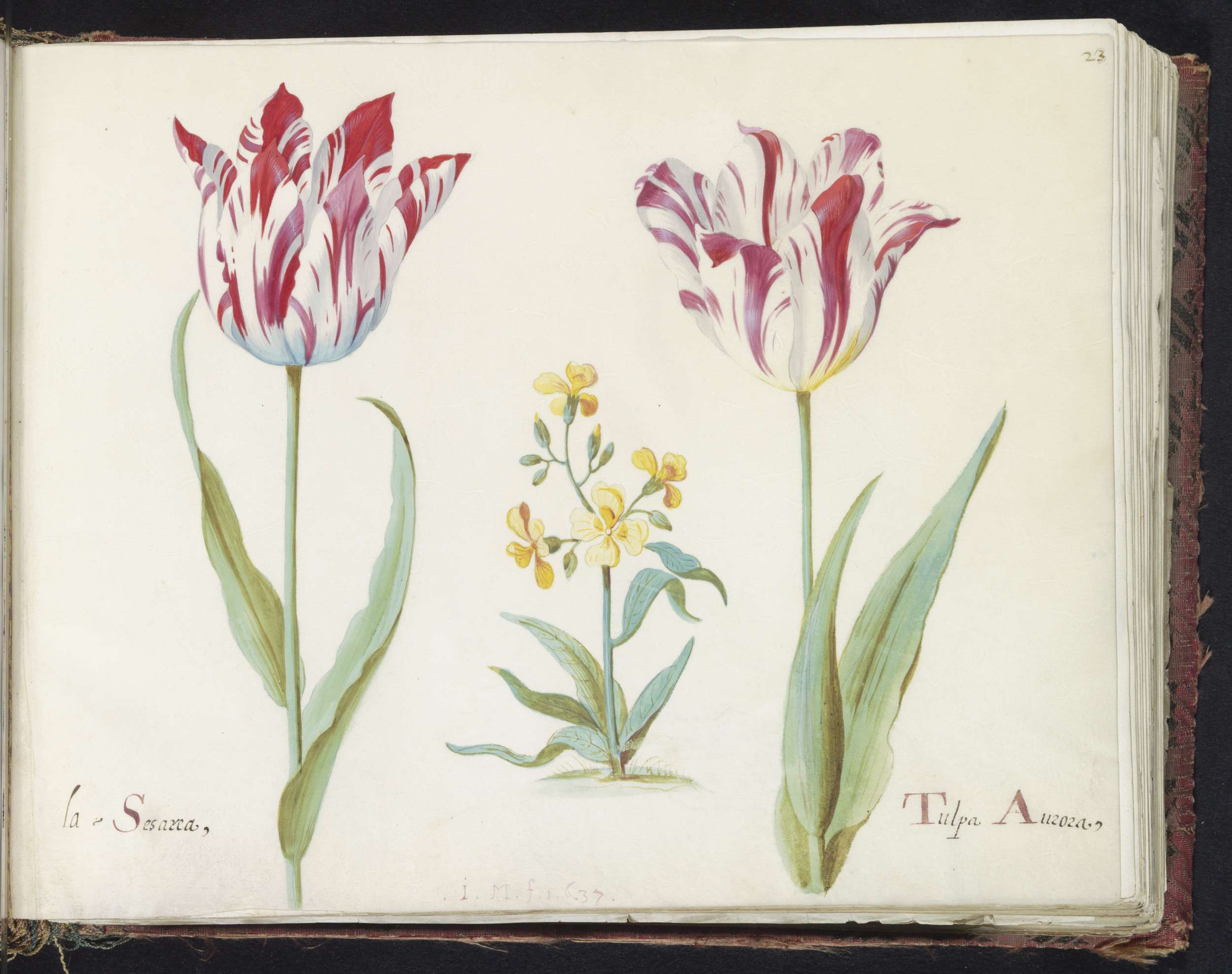 Twee tulpen met twee rupsen en atalanta