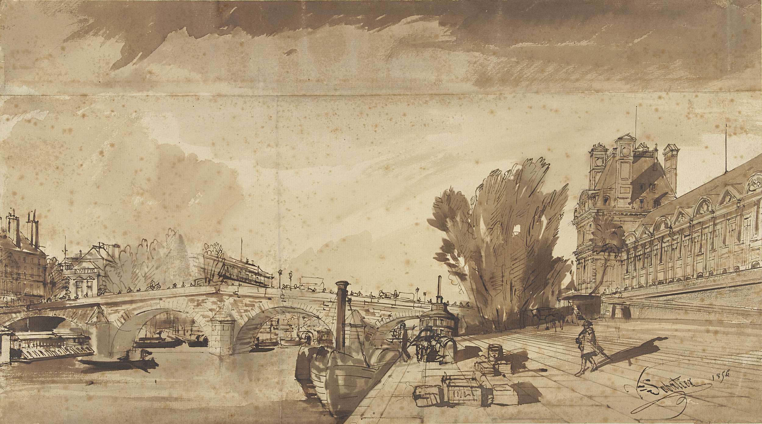 Herderin met schapen, bij een viaduct