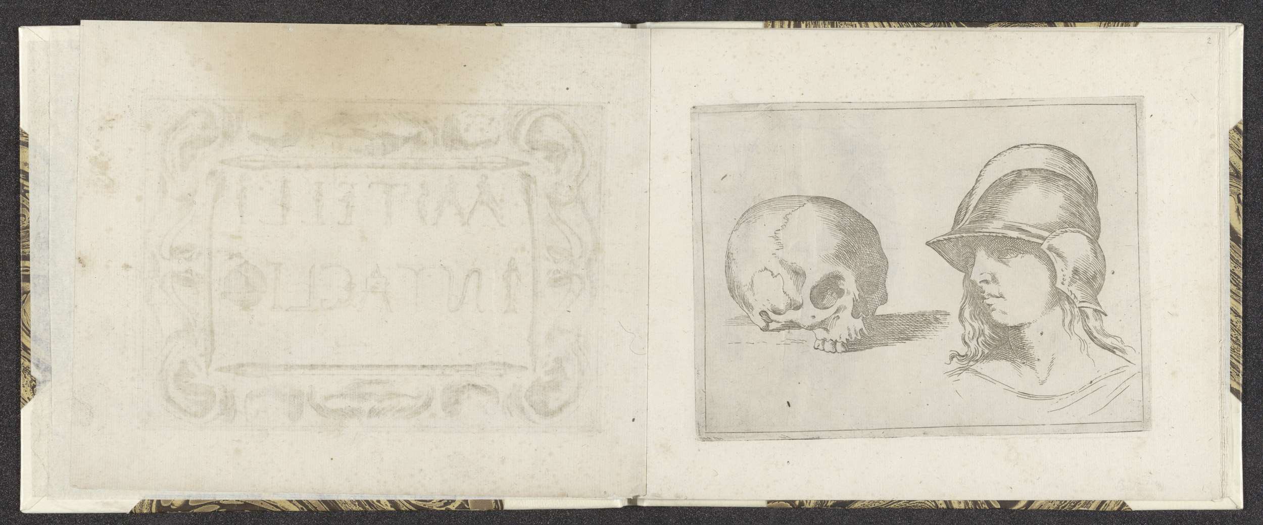 Schedel en een hoofd van een jongeling met helm