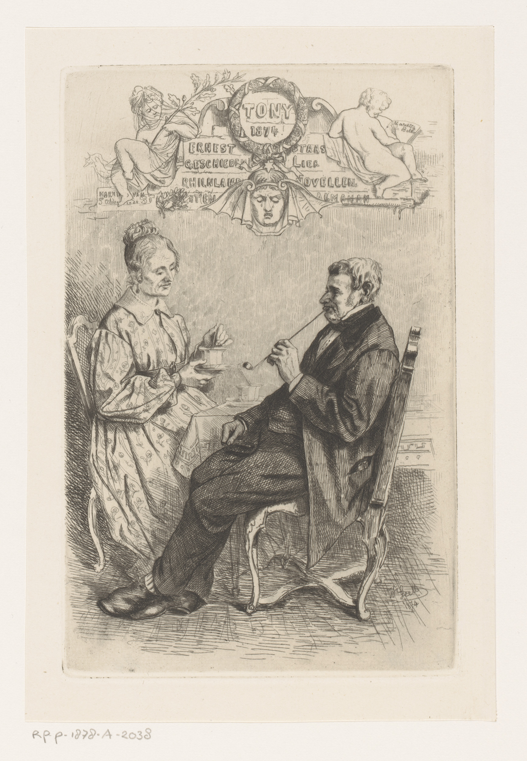 Boer en boerin als liefdespaar in deuropening