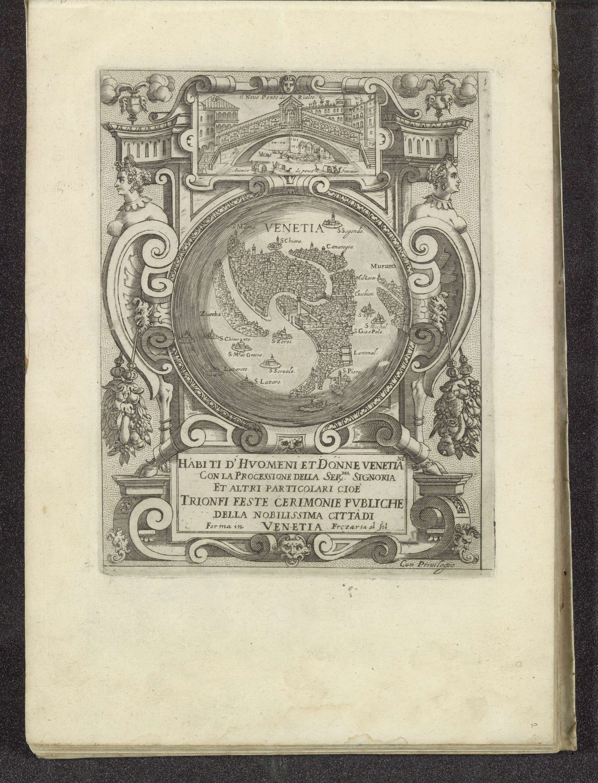 Titelprent met plattegrond van Venetië