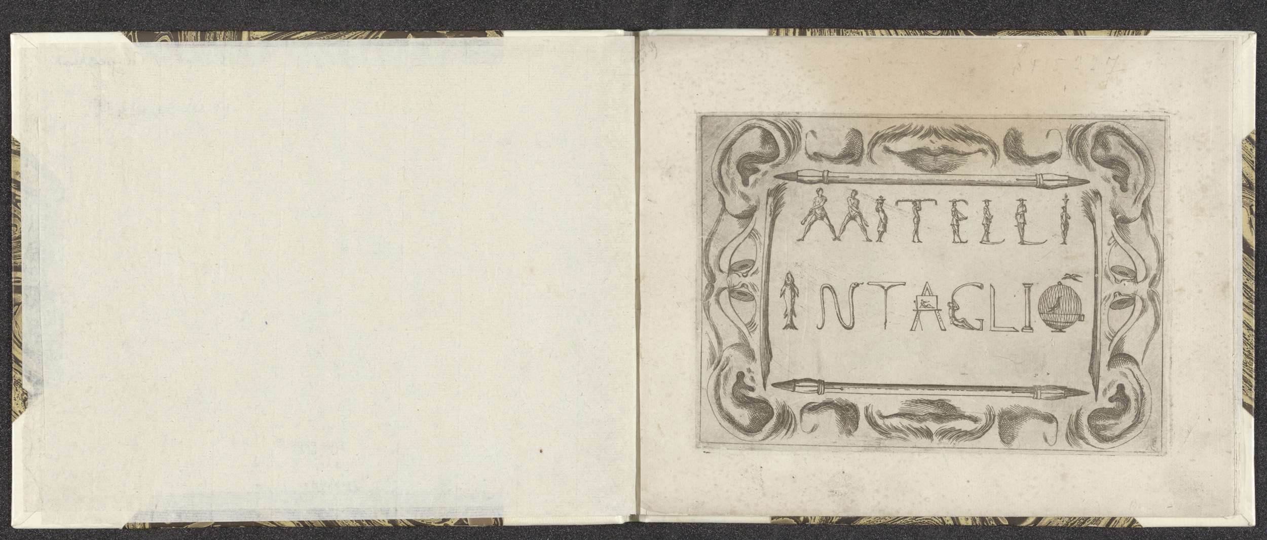 Titelprent met titel in lijst van penselen, oren, ne...