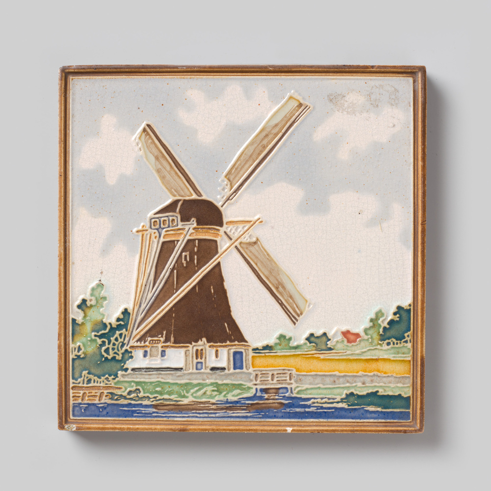Tegel in cloisonné-techniek, met voorstelling: Koren...