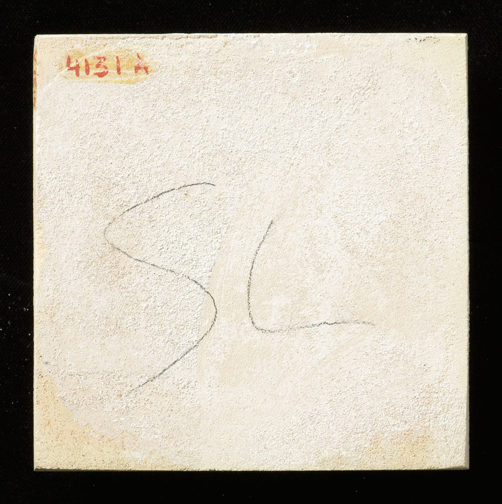 Tegel van keramiek met tinglazuur, voorstellende een...
